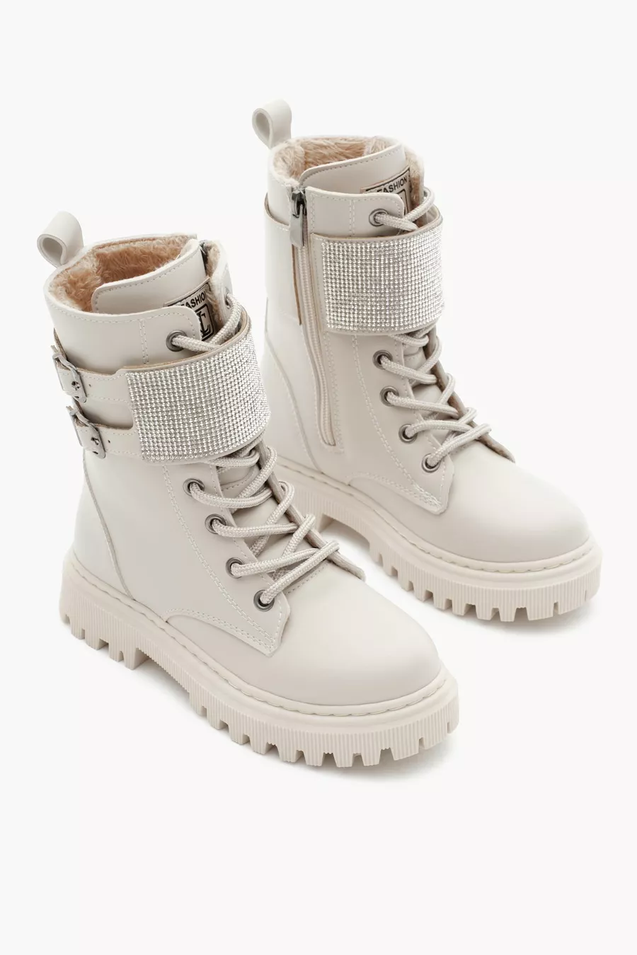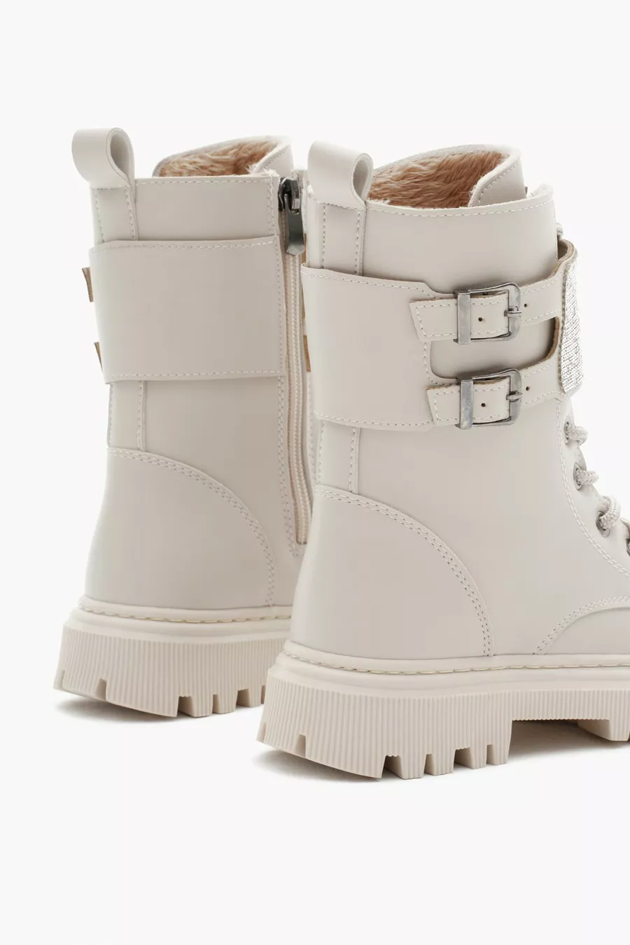 الفتيات البيج الجلد الحرارية وحيد الحجر مفصلة مزدوجة مشبك الدانتيل المتابعة والأحذية الفيلكرو بسحاب
