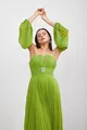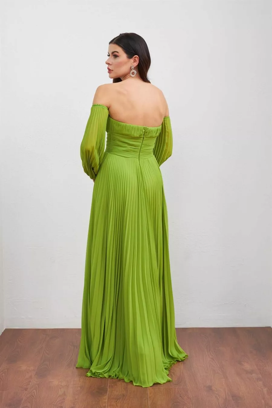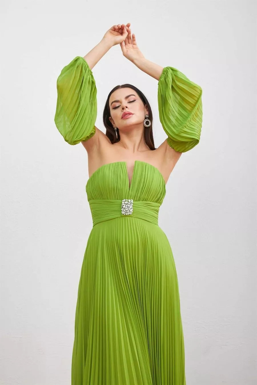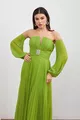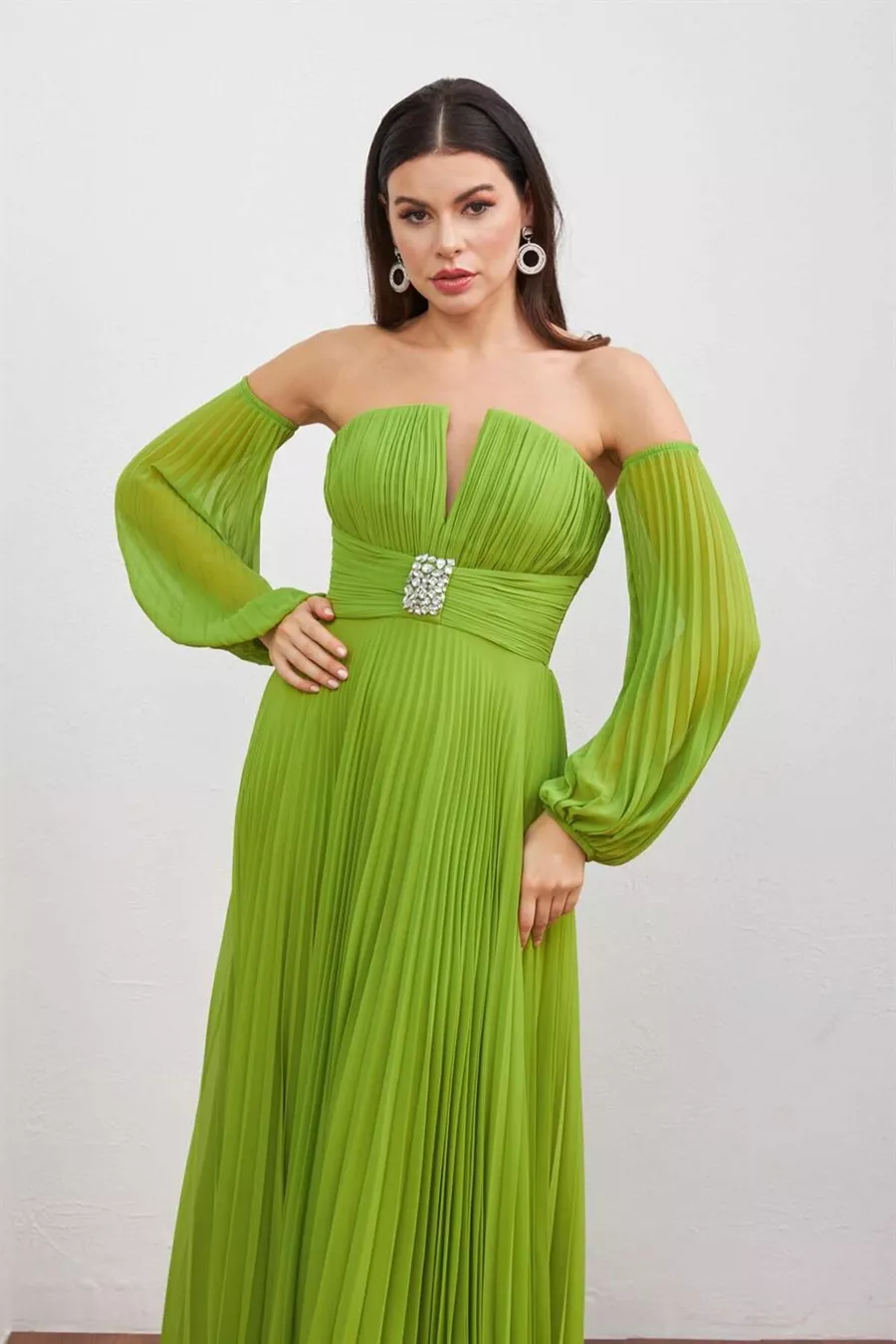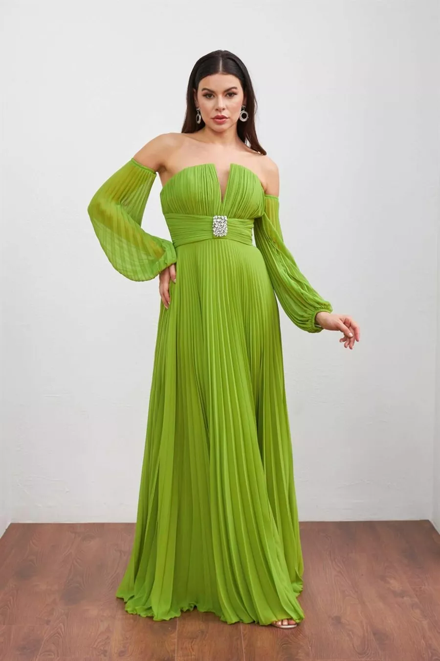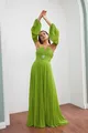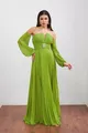 الفستق الأخضر الشيفون حزام مفصلة مساء اللباس الطويل