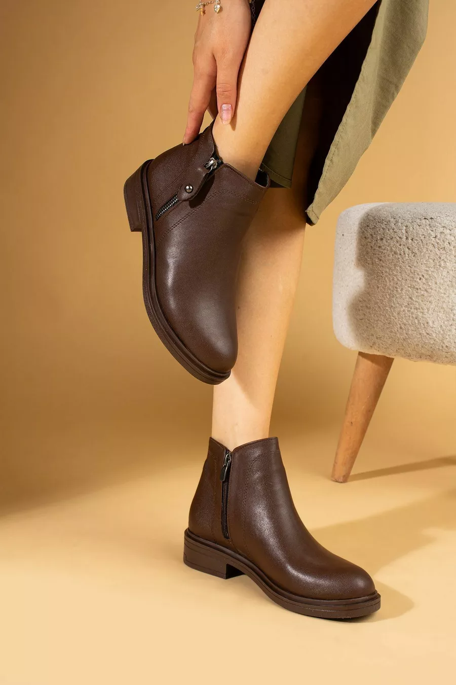المرأة القهوة سستة مفصلة قصيرة كونفورت نمط أحذية أنيقة ومريحة