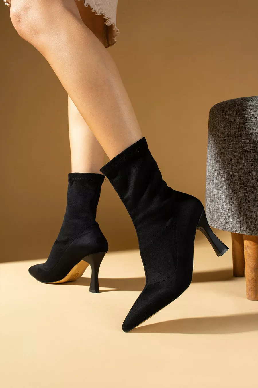 المرأة الموسم الجديد أسود من جلد الغزال الكعب وأشار اصبع القدم تمتد رقيقة أحذية عالية الكعب