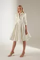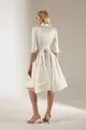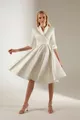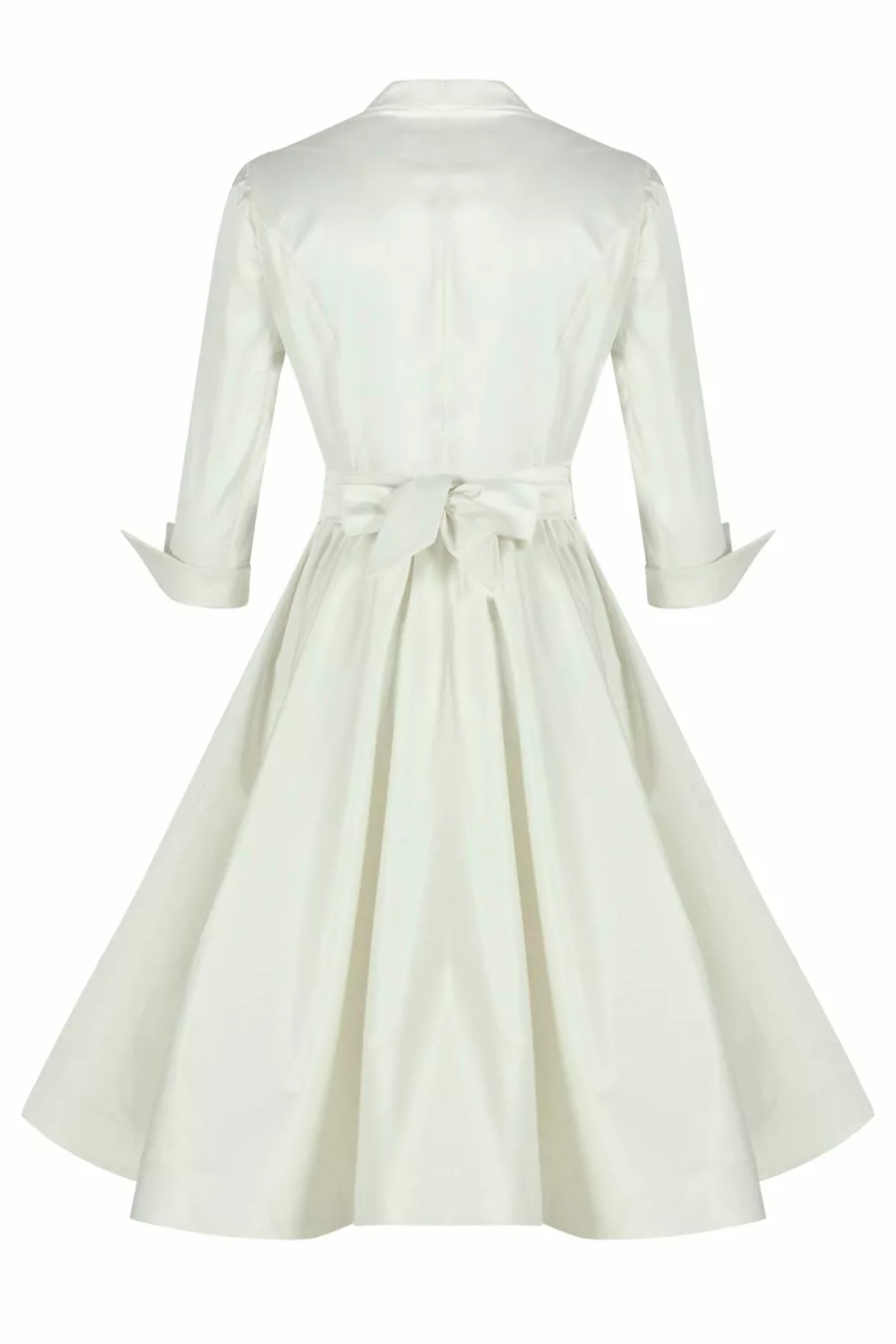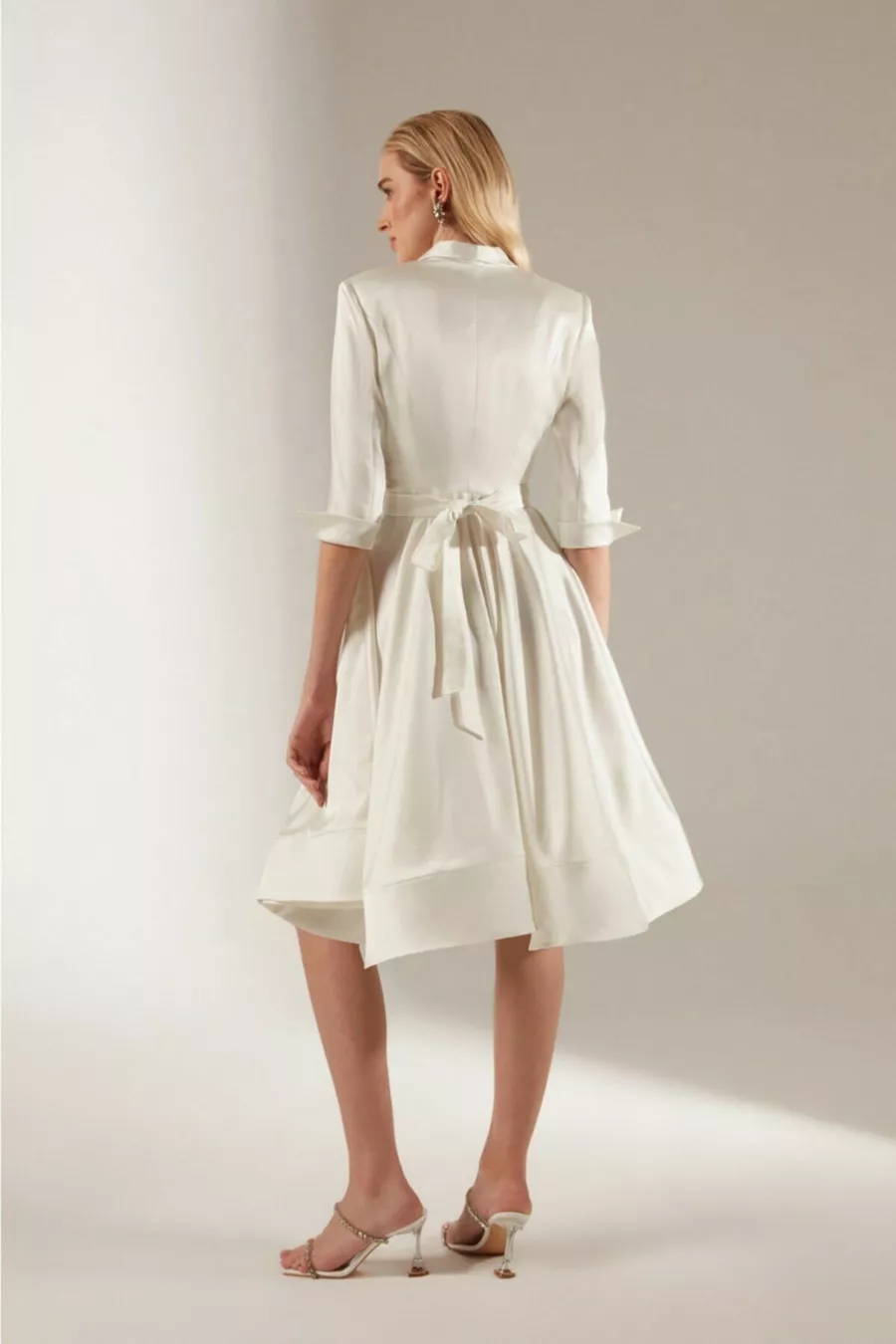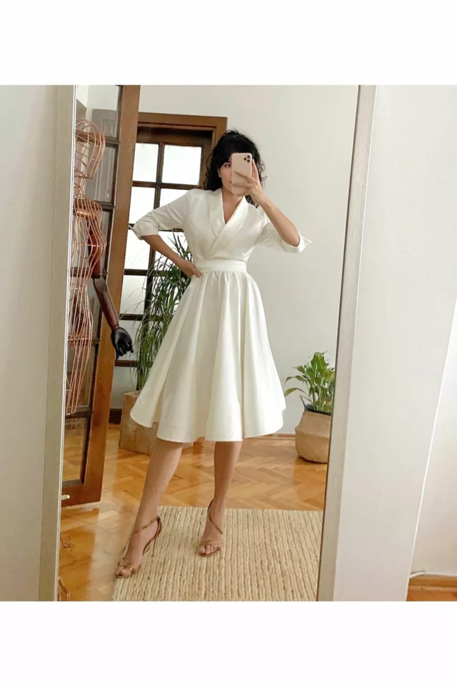المرأة انتفخ مزدوجة الصدر فستان الساتان الأبيض