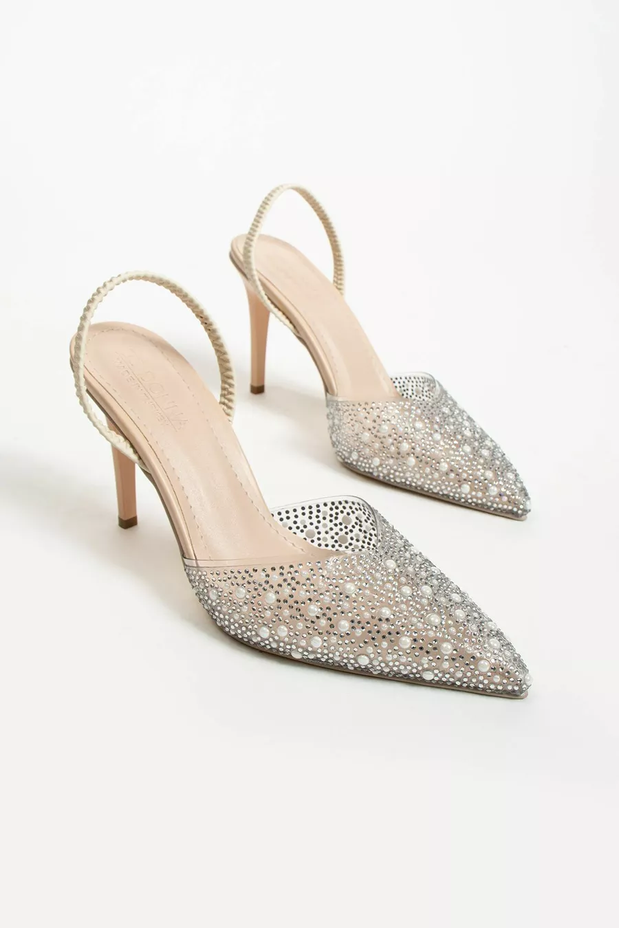 المرأة خنجر الحجر وأشار اصبع القدم مفتوحة الظهر مساء اللباس الكعب لالا البيج