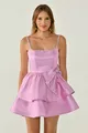 المرأة صغيرة الحجم منقوشة الشيفون النسيج مع حبل شماعات الوردي مساء اللباس والتخرج اللباس -PINK