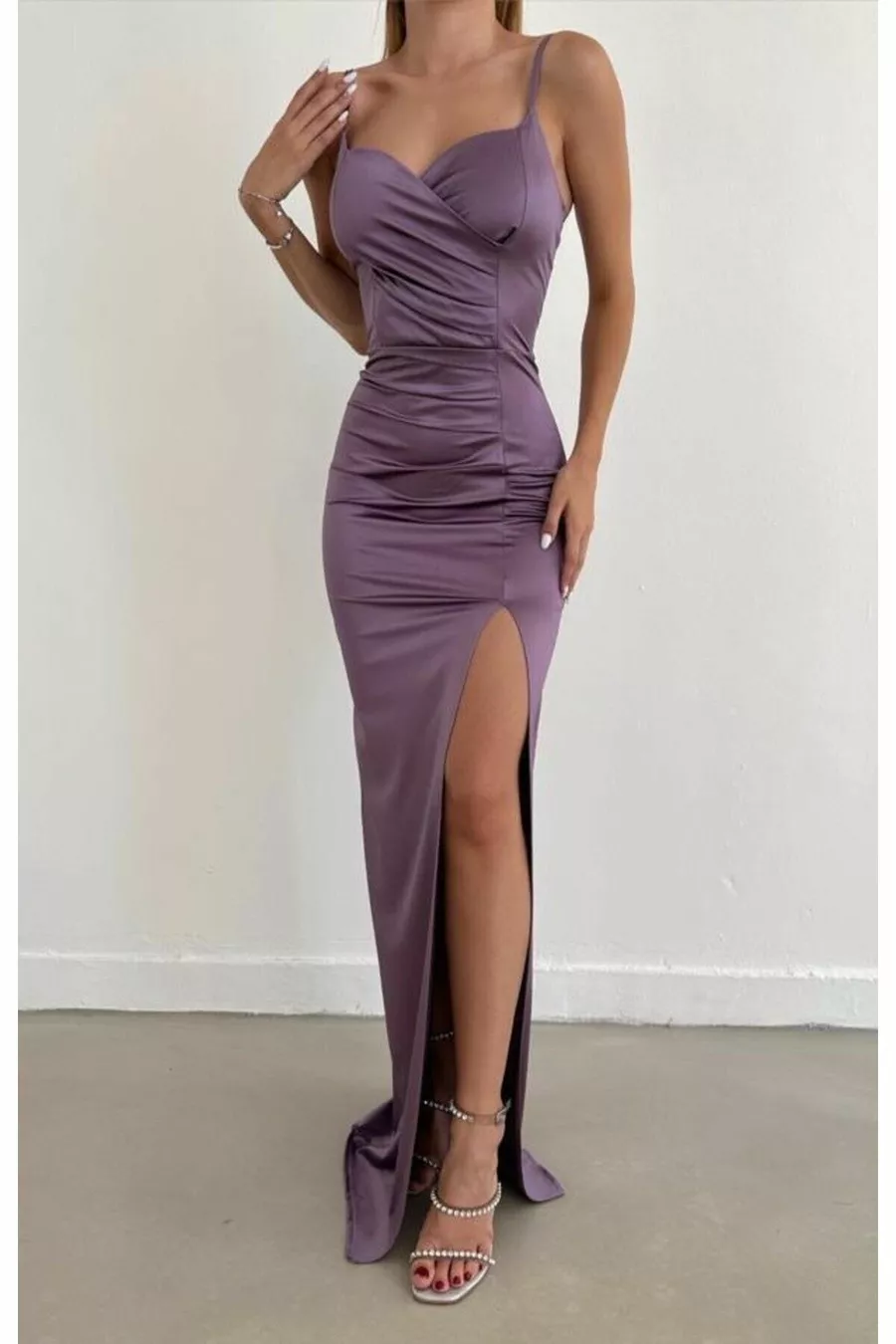 المرأة طويلة شق مساء اللباس الخطوبة الحناء الزفاف مساء اللباس أرجواني ضيق صالح