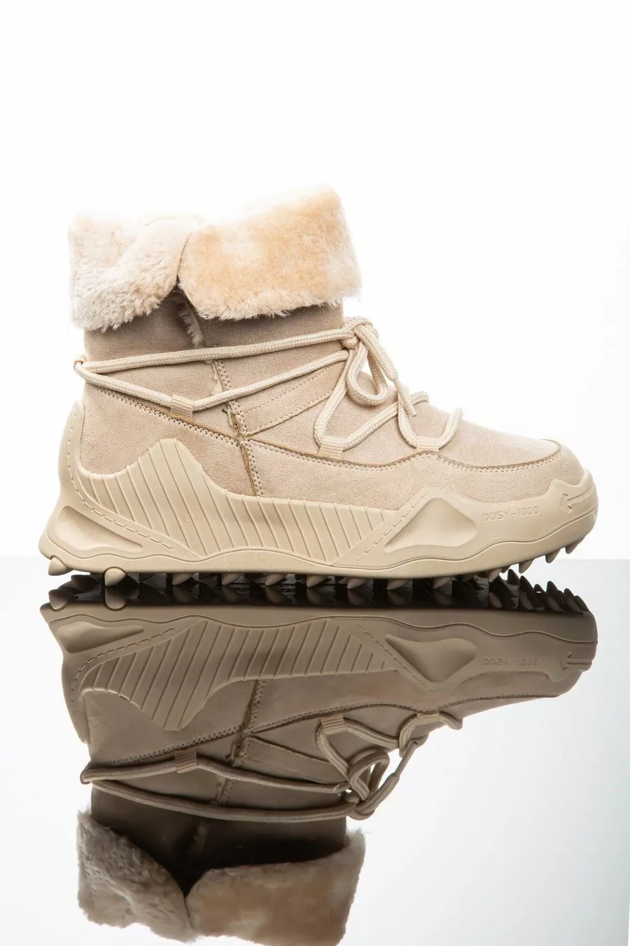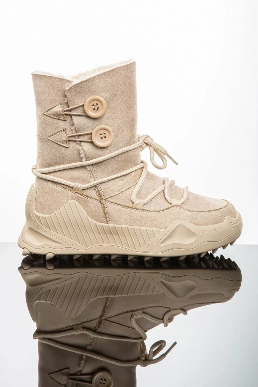 المرأة عارضة Nubuck الجلود الثلج الجوارب Bootie البريدية عدم الانزلاق الوحيد مع الفراء داخل أزرار والأربطة