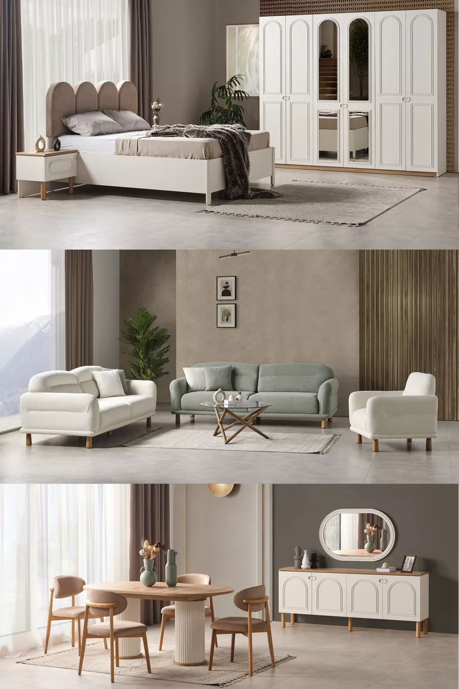 اللون: أبيض مدة الضمان: سنتان مقاس السرير/القاعدة: 160 × 200 وظيفة السرير: مع قاعدة تخزين وظيفة الخزانة: مغلقة مادة جسم الخزانة: MDF عدد الأبواب: 6 محتويات الطقم: سرير مع قاعدة تخزين + 2 منضدة سرير جانبية + تسريحة + خزانة الطراز: مودرن الموضوع / الطراز: مودرن المنشأ: تركيا