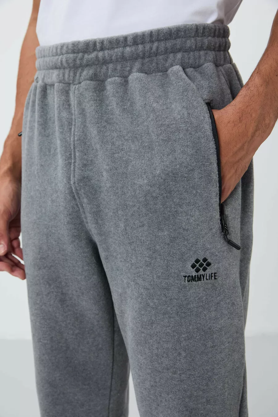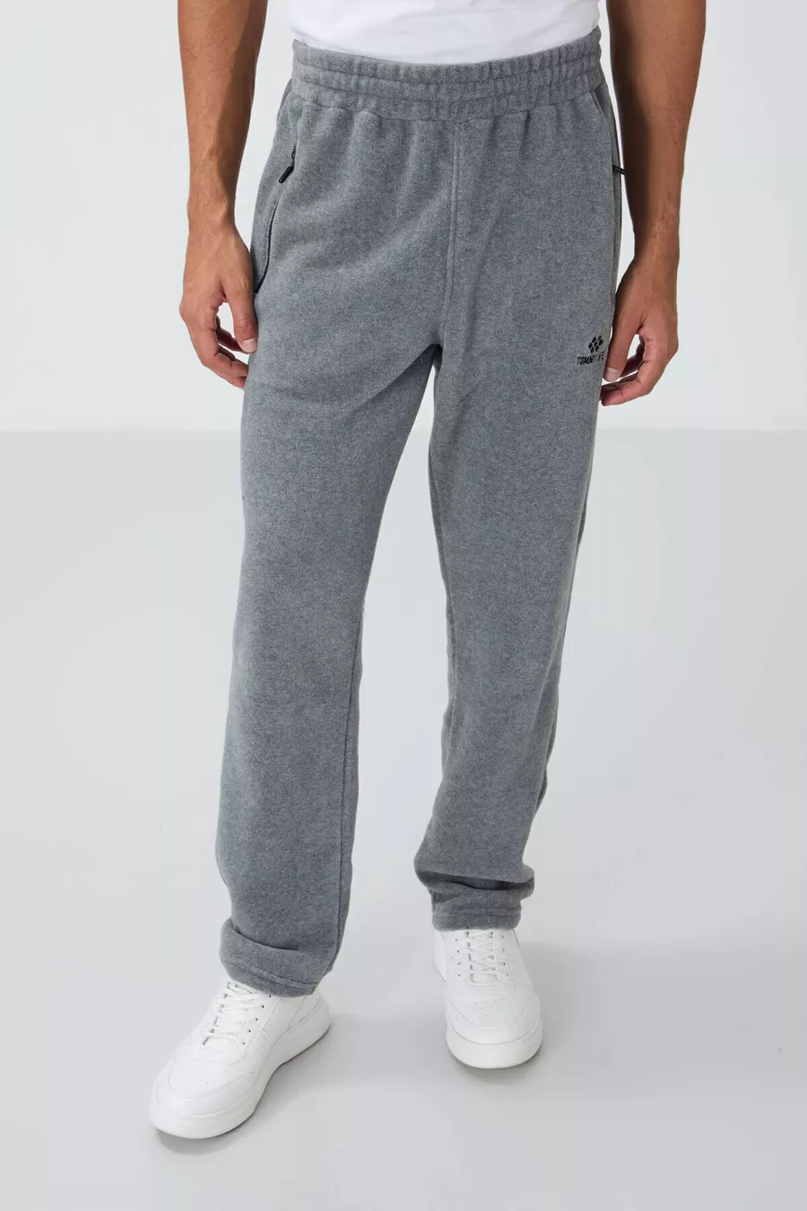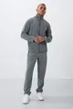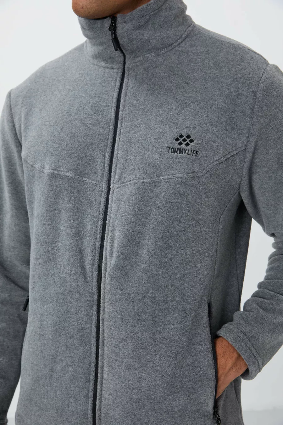 بدلة رجالية من البولار بلون رمادي ممزوج، بياقة عالية، سحاب، جيوب، مقاس قياسي -