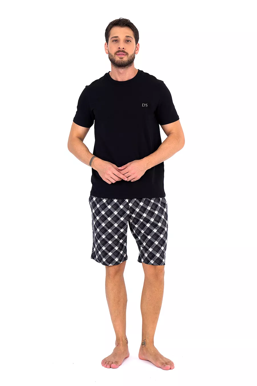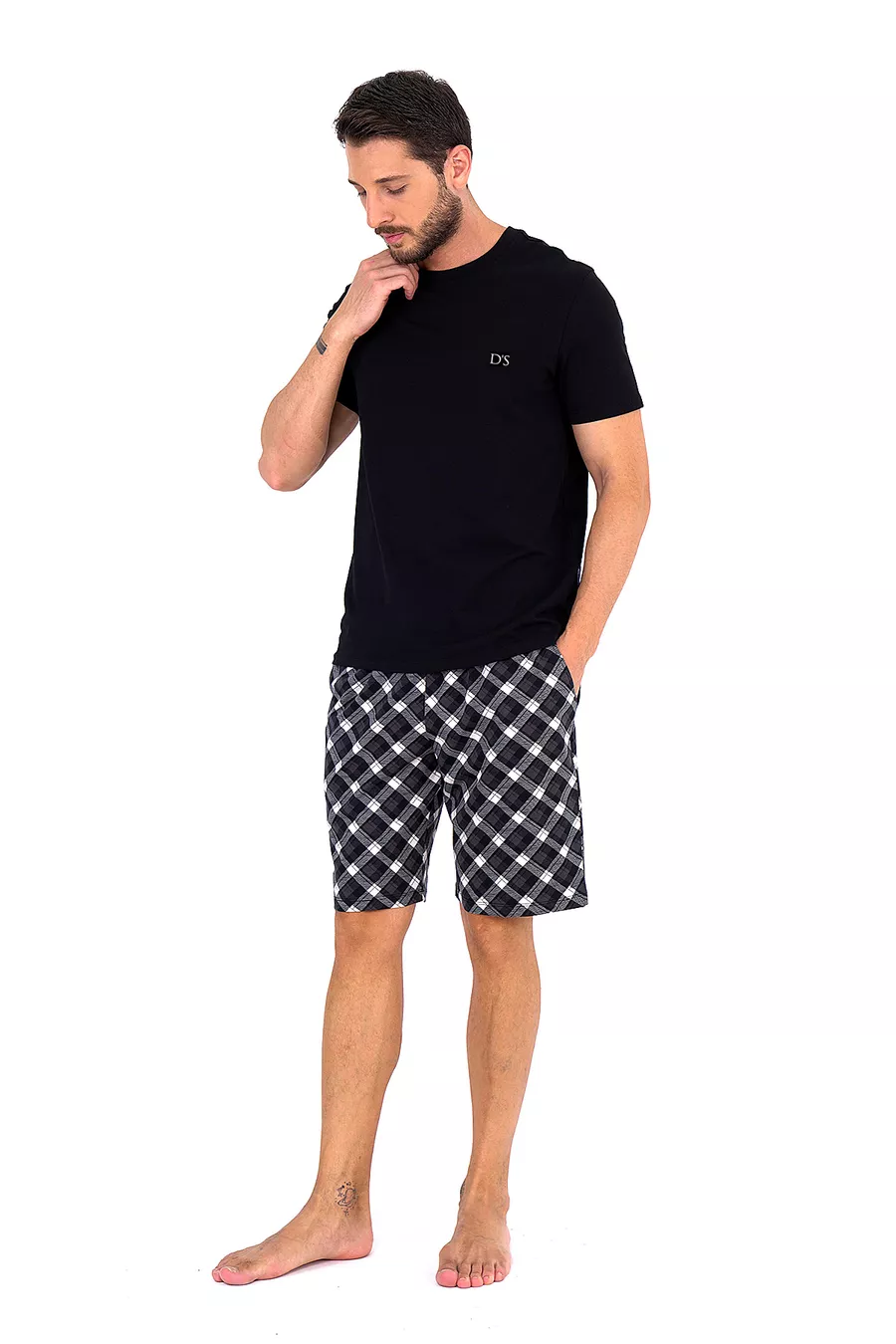 بدلة شورت بنقشة مربعات من Ds Damat باللون الأسود