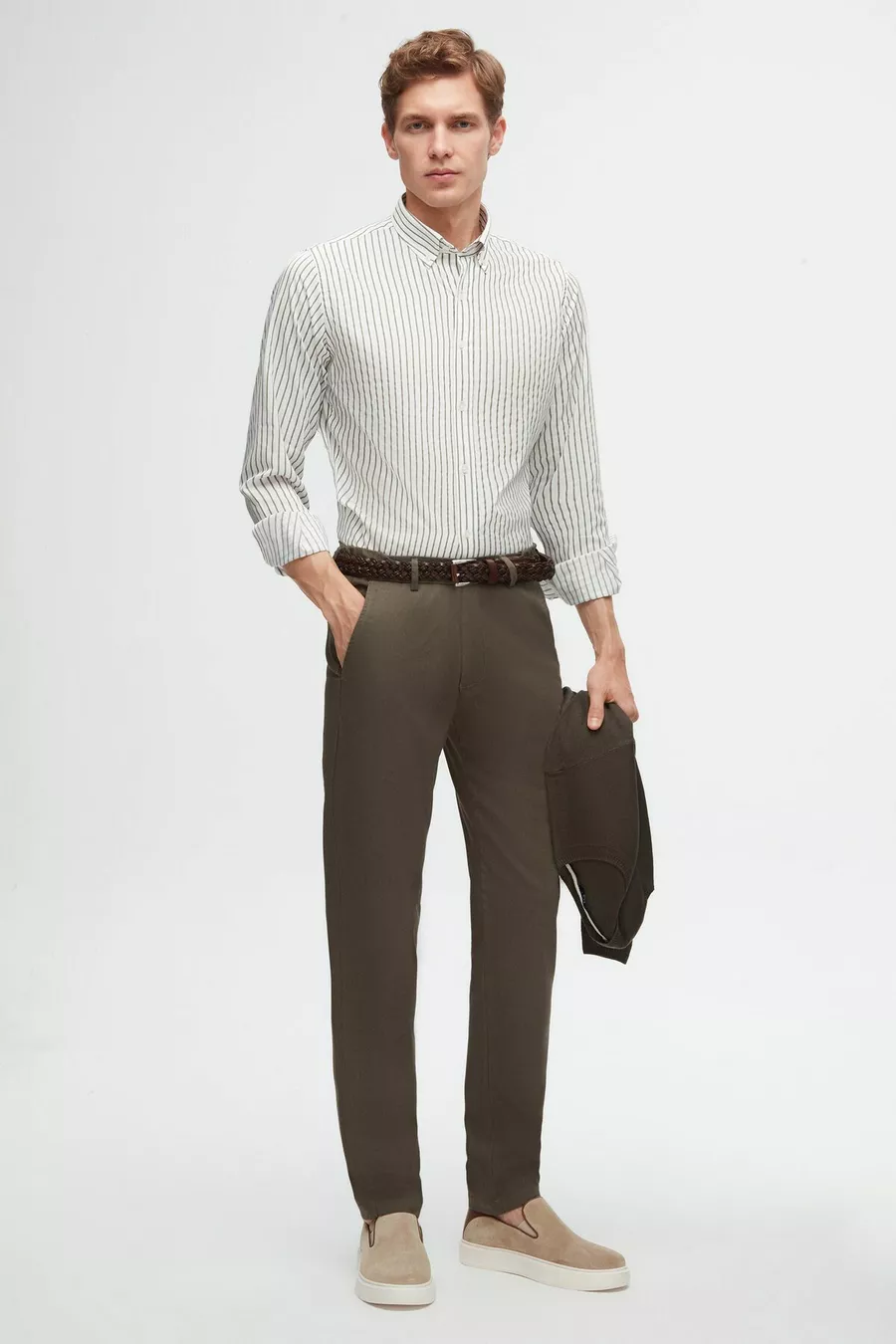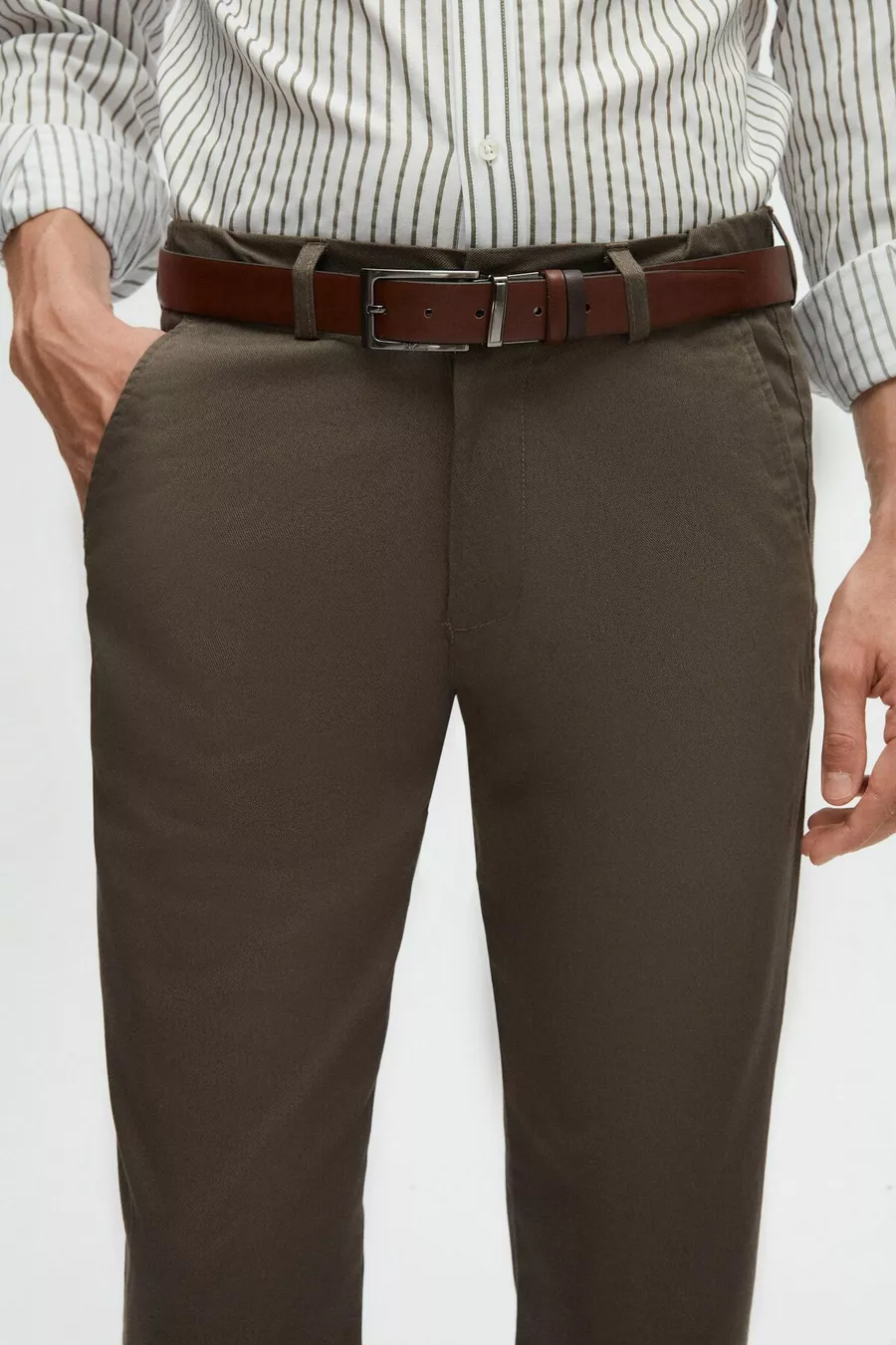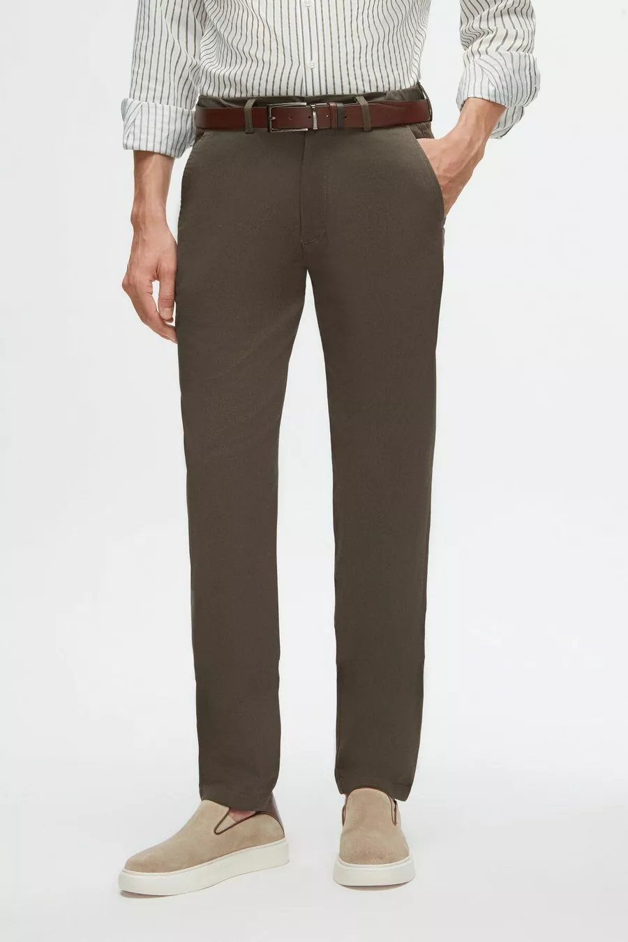 المادة: نسيج نوع القماش: منسوج نوع الساق: ساق مستقيمة الخصر: خصر عادي النمط: محاك اللون: زيتي الجيب: تشينو تفاصيل المنتج: مطاطي الحالة الباطنة: بدون بطانة الطول: طويل القصّة: ضيق البيئة: كاجوال/يومي القَصّة: ضيقة ميزة إضافية: مرن نوع الحياكة: حياكة عادية تقنية الطباعة/التطريز: بدون طباعة الحزام/حالة الخصر: مع حزام تفاصيل الاستدامة: لا مكون المادة: 97% قطن، 3% إيلاستان تعليمات الغسيل: النوع 2 الموسم: صيف المنشأ: تركيا حالة الصندوق: بدون صندوق