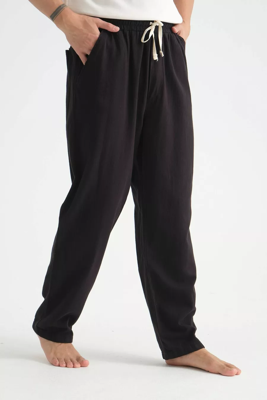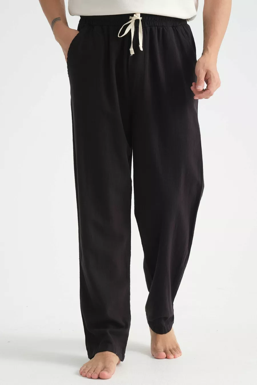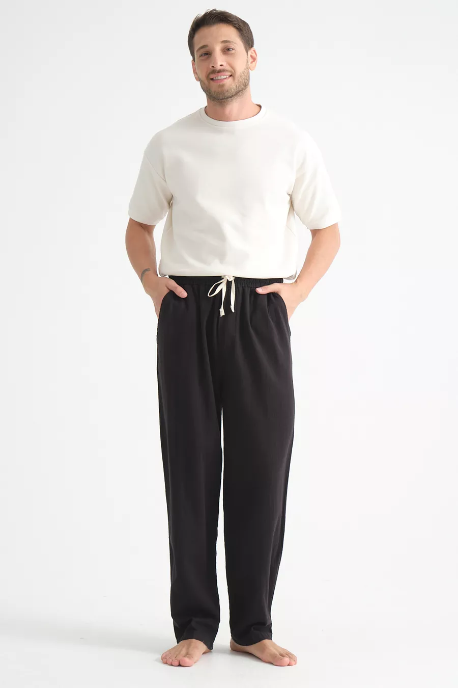 بنطال رجالي مريح من مزيج الكتان واسع الساق لموسم جديد
