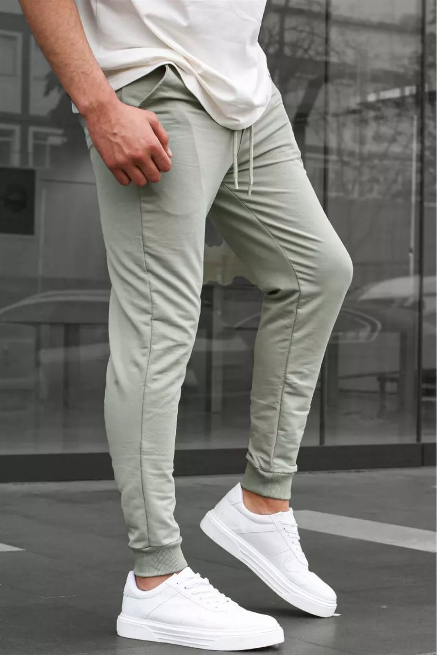 بنطال رياضي رجالي بخصر مطاطي باللون الأخضر الفاتح