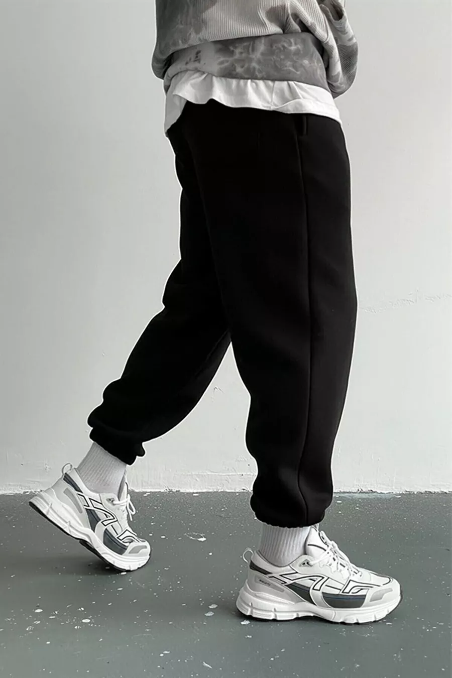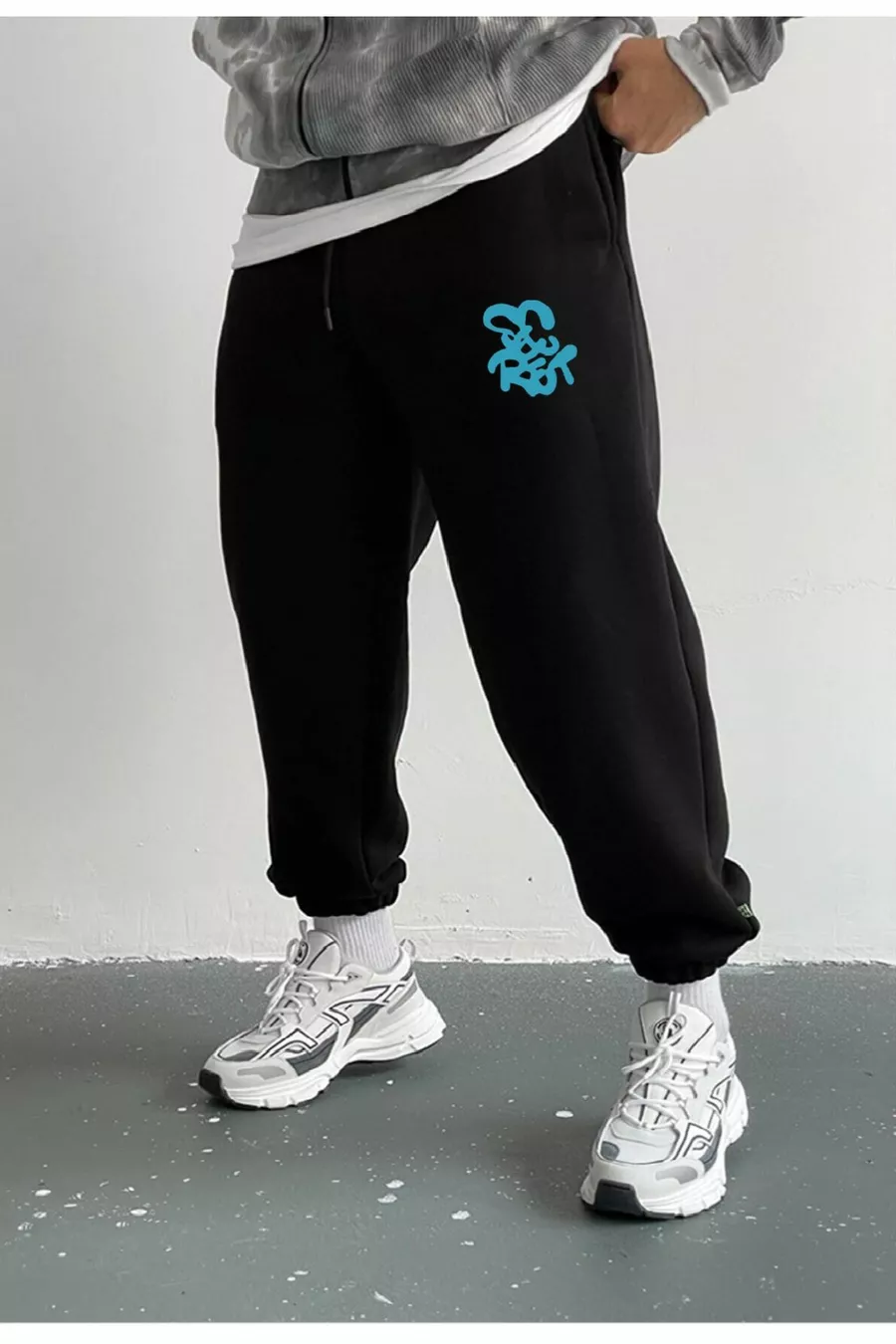 بنطال رياضي مبطن بشعار سري باللون الأسود للجنسين