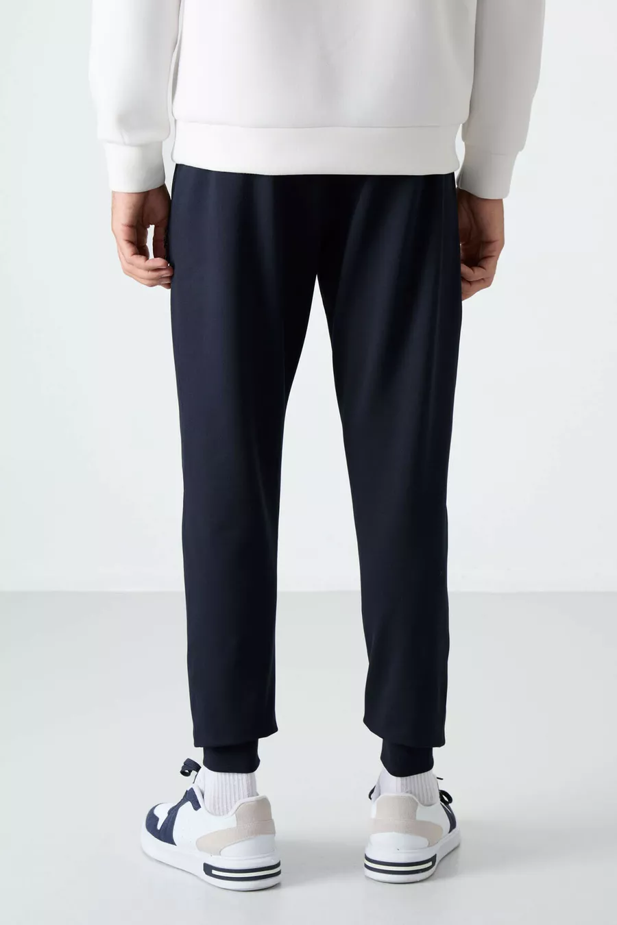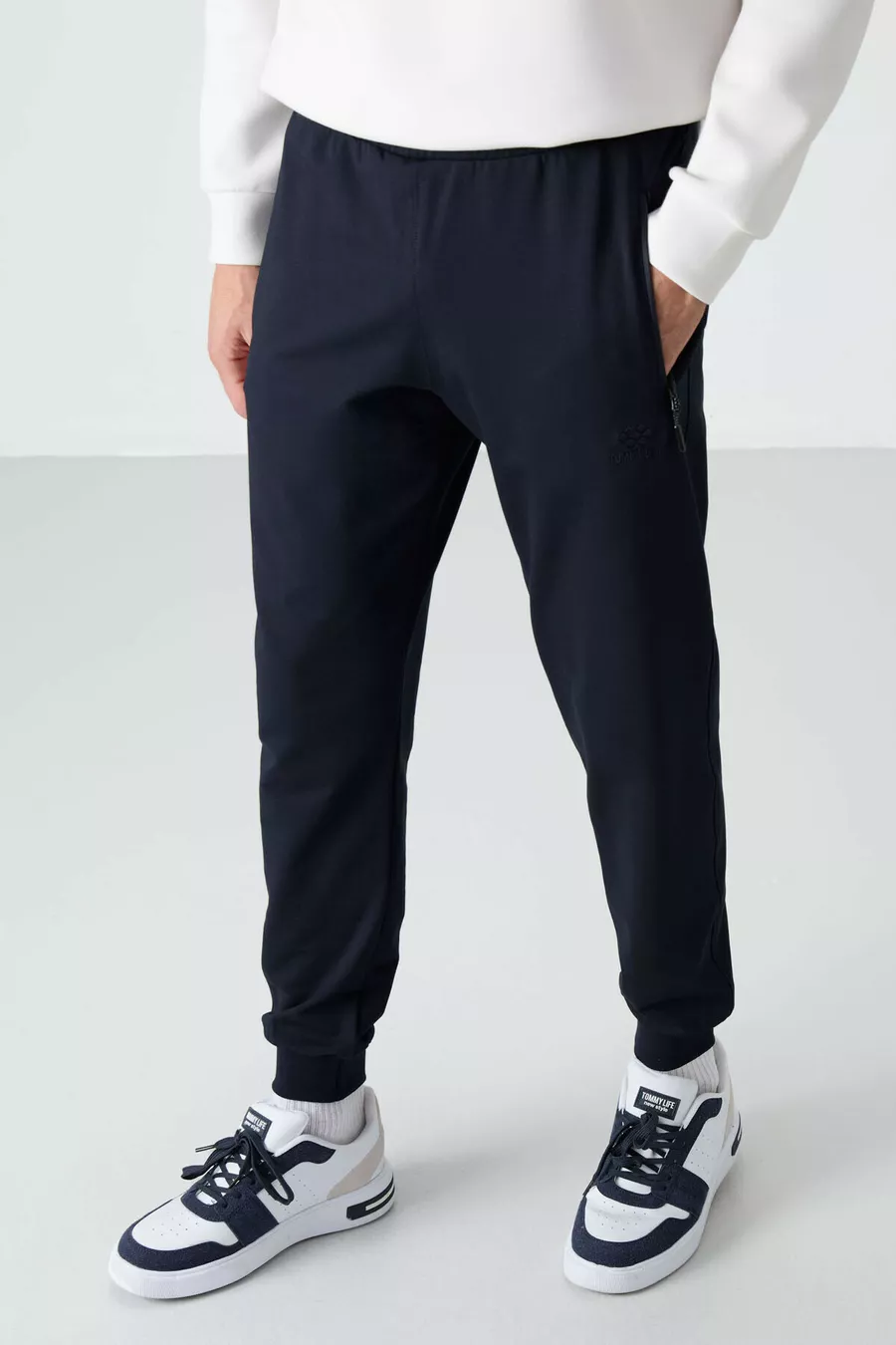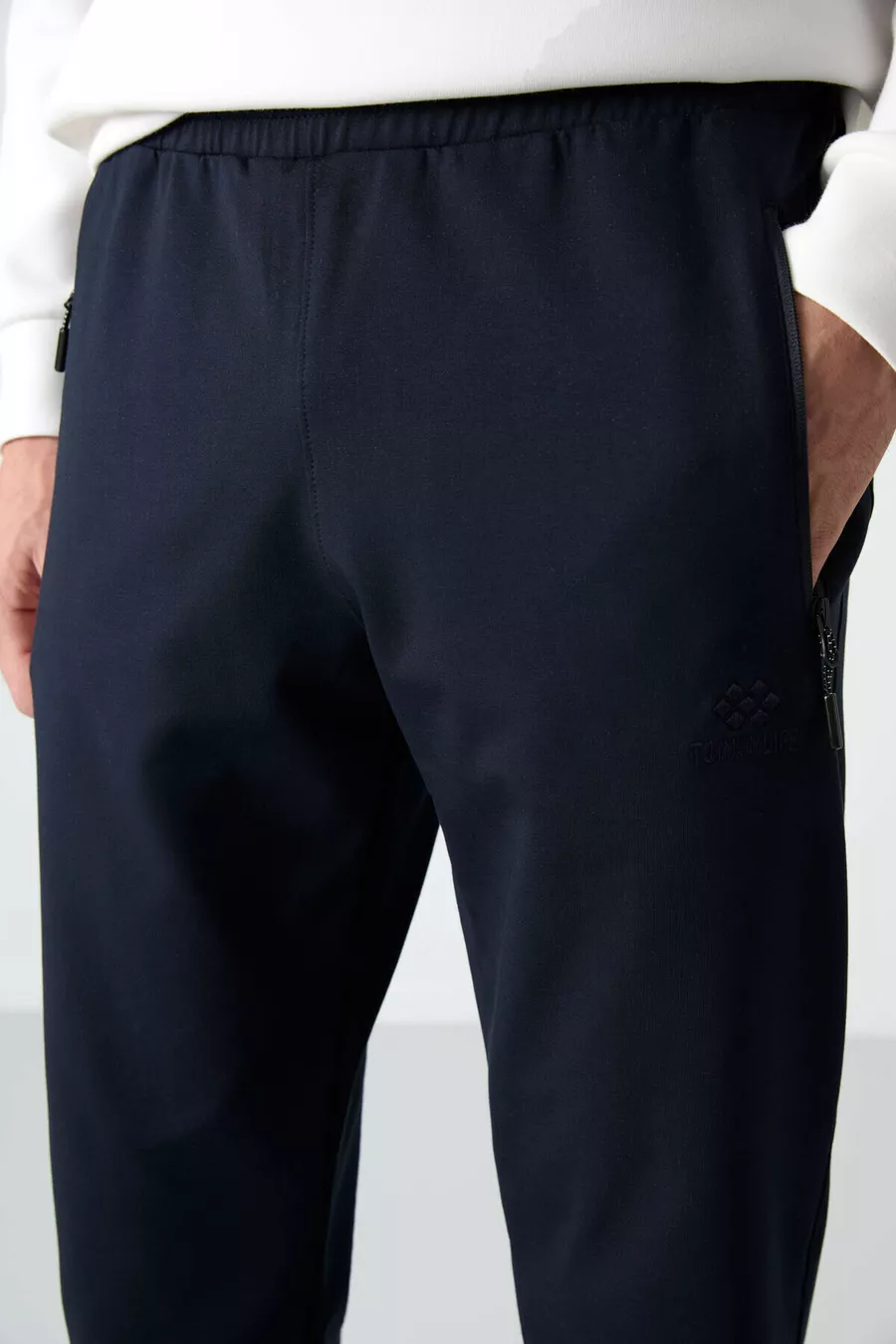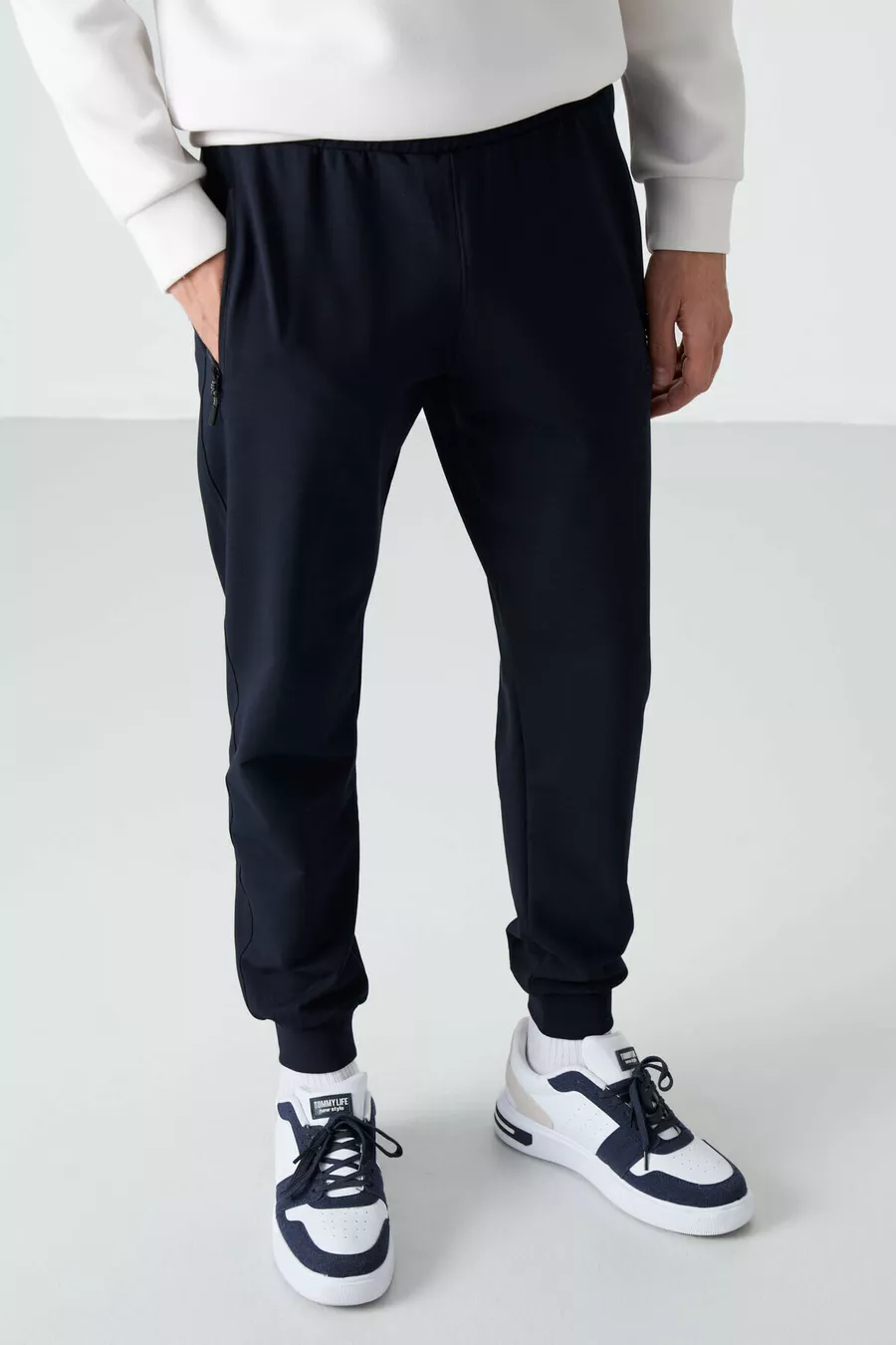بنطال رياضي للجنس الذكور بتصميم عادي وجيوب بسوستة باللون الأزرق الداكن -