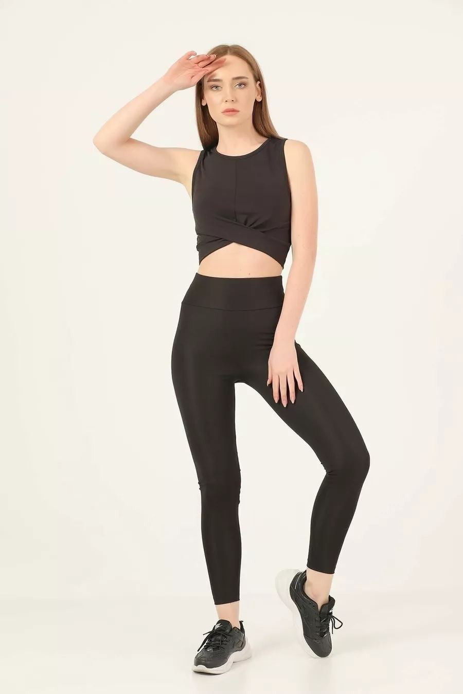 بنطال رياضي ضيق من قماش الغواص أسود بحزام عالٍ وعريض