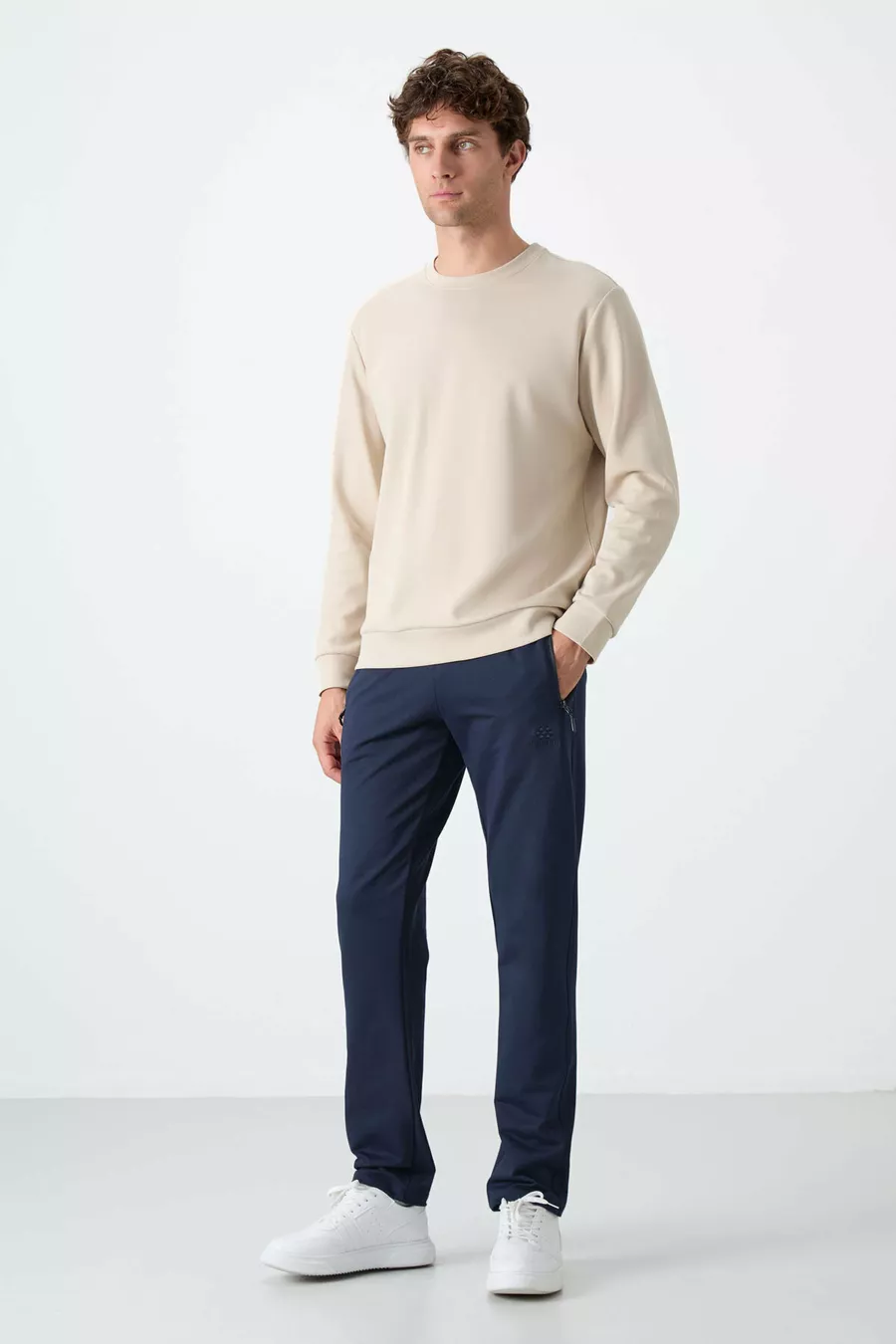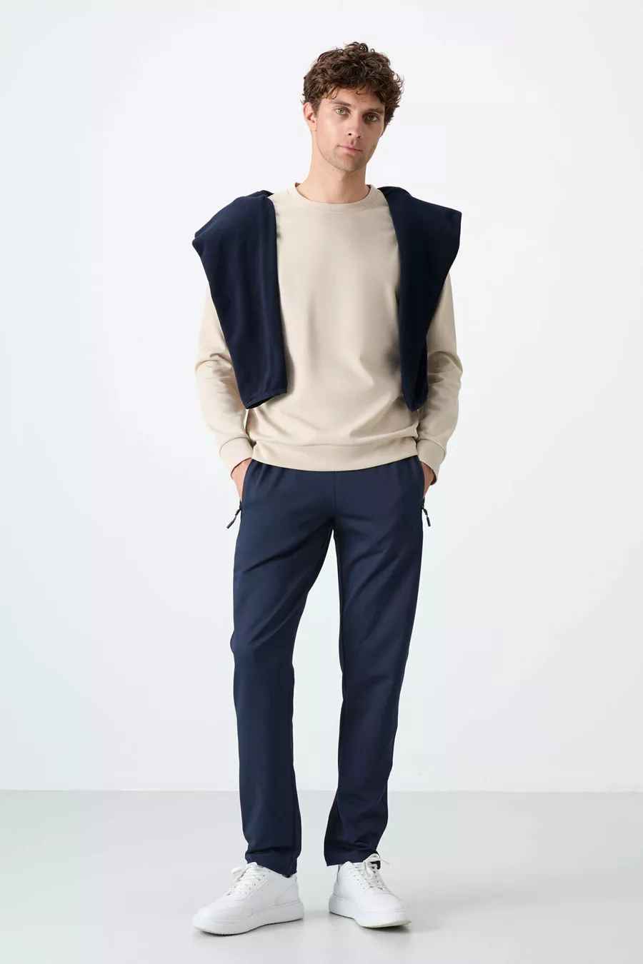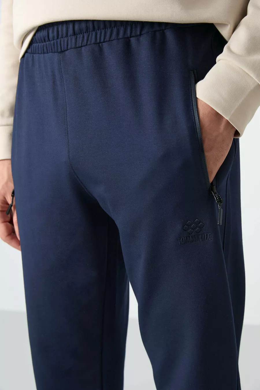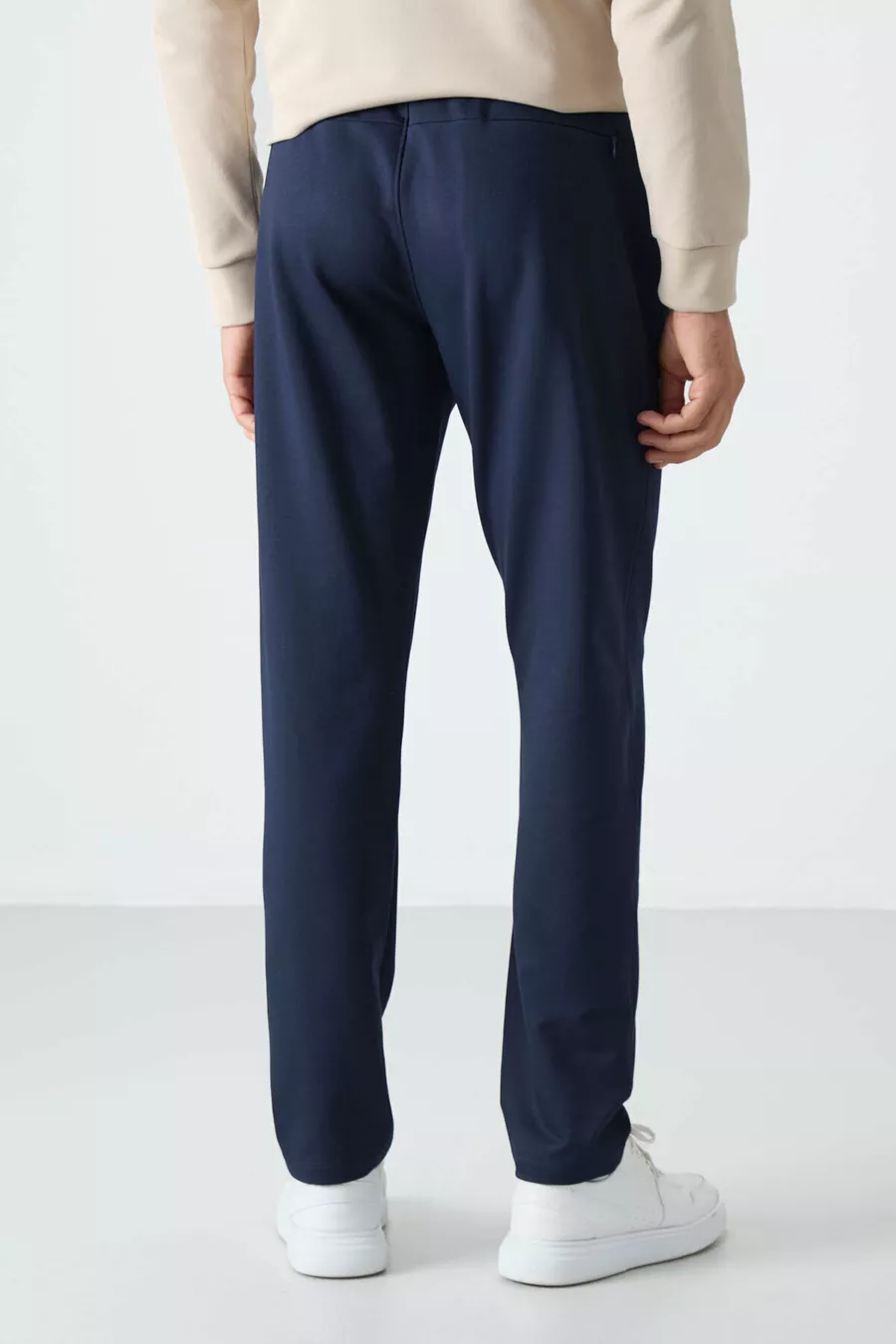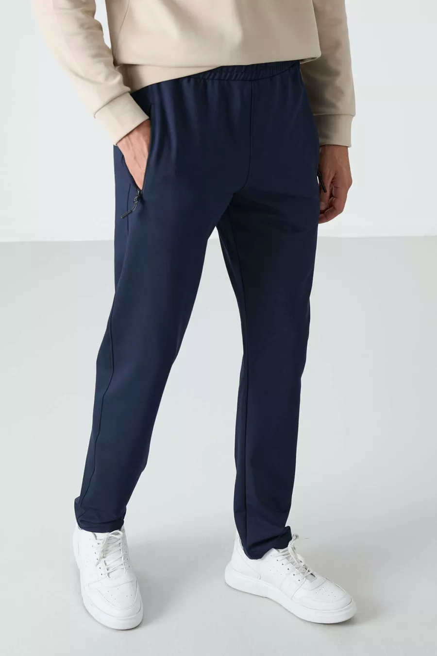 بنطال رياضي رجالي بقصة ضيقة وجيوب ثلاثة وسحاب باللون النيلي -