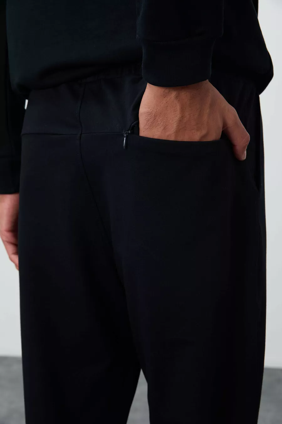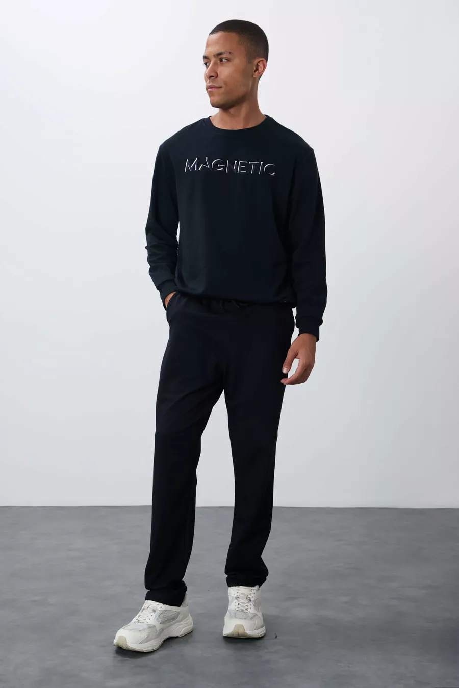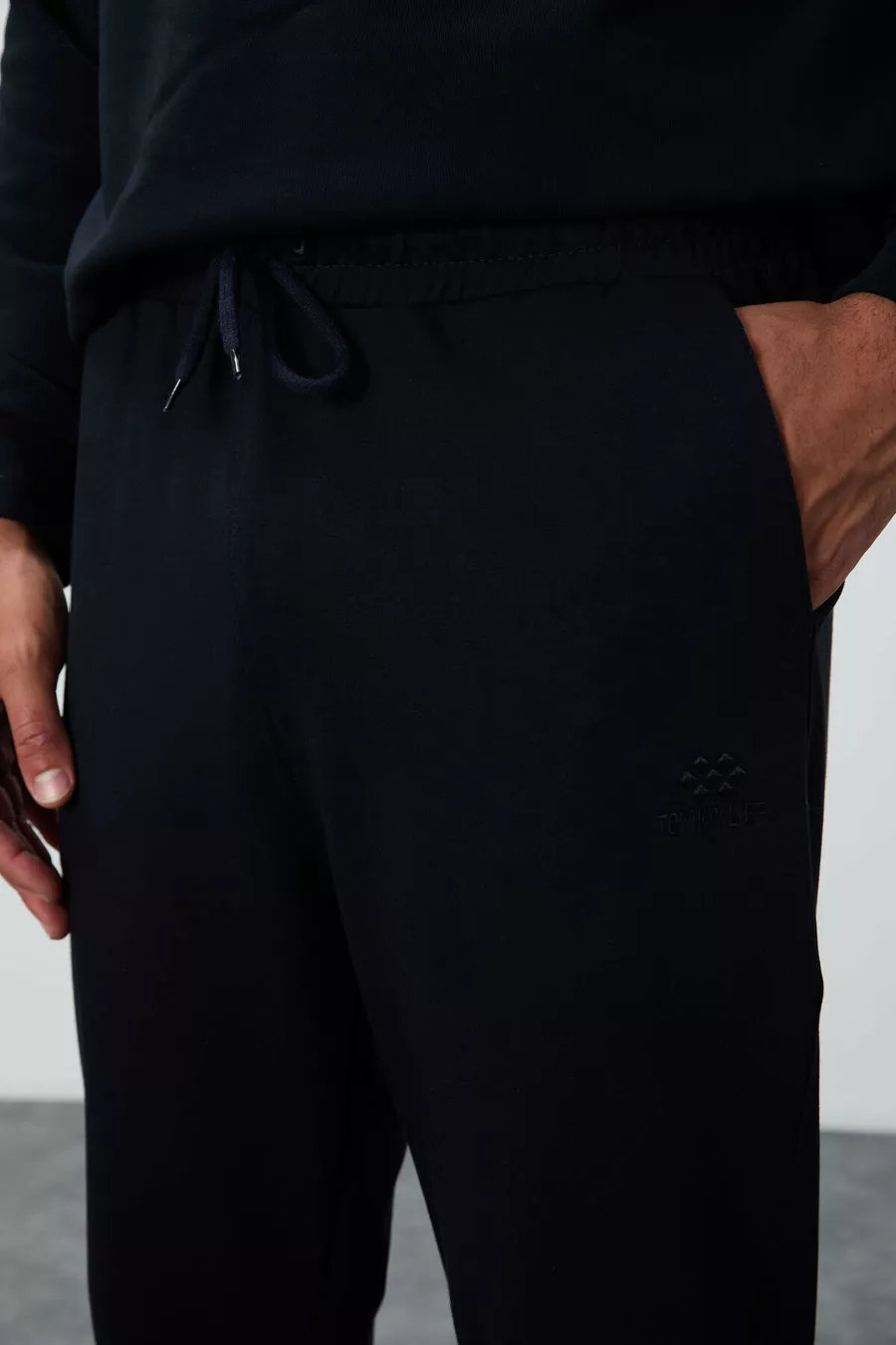 بنطال رياضي رجالي كلاسيكي بحلقات وجيوب بلون أزرق داكن - الموديل