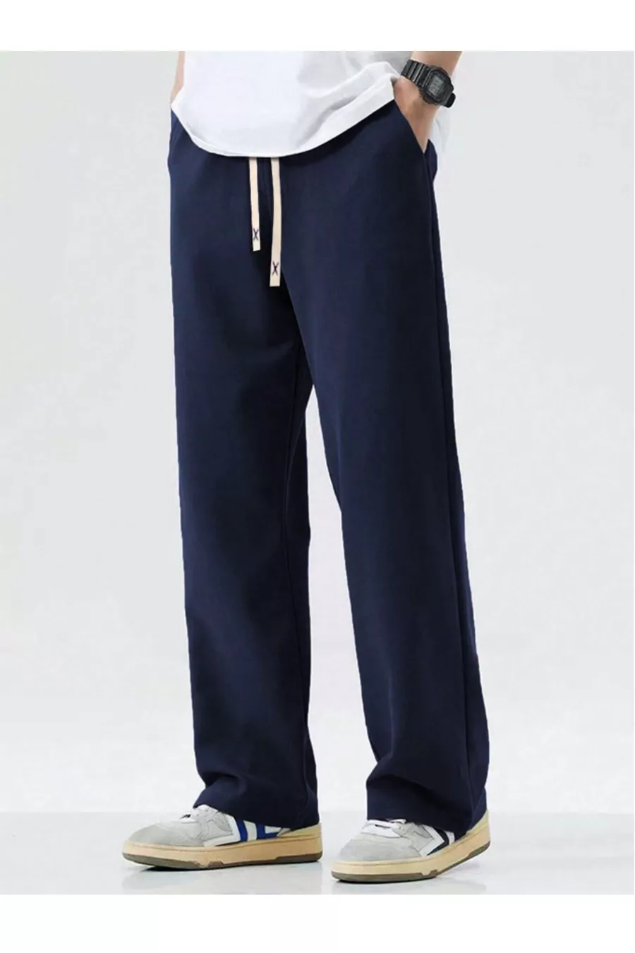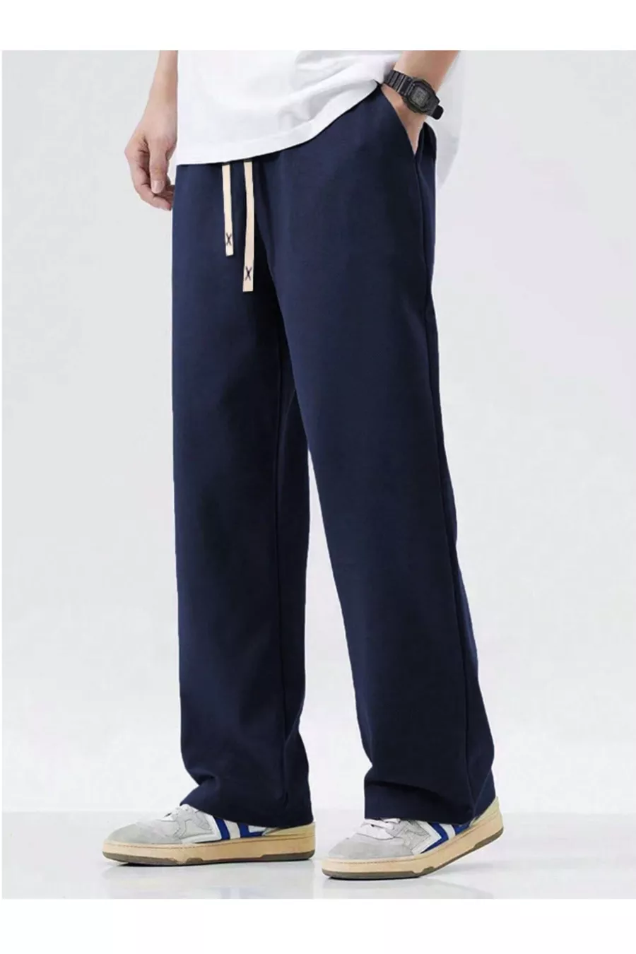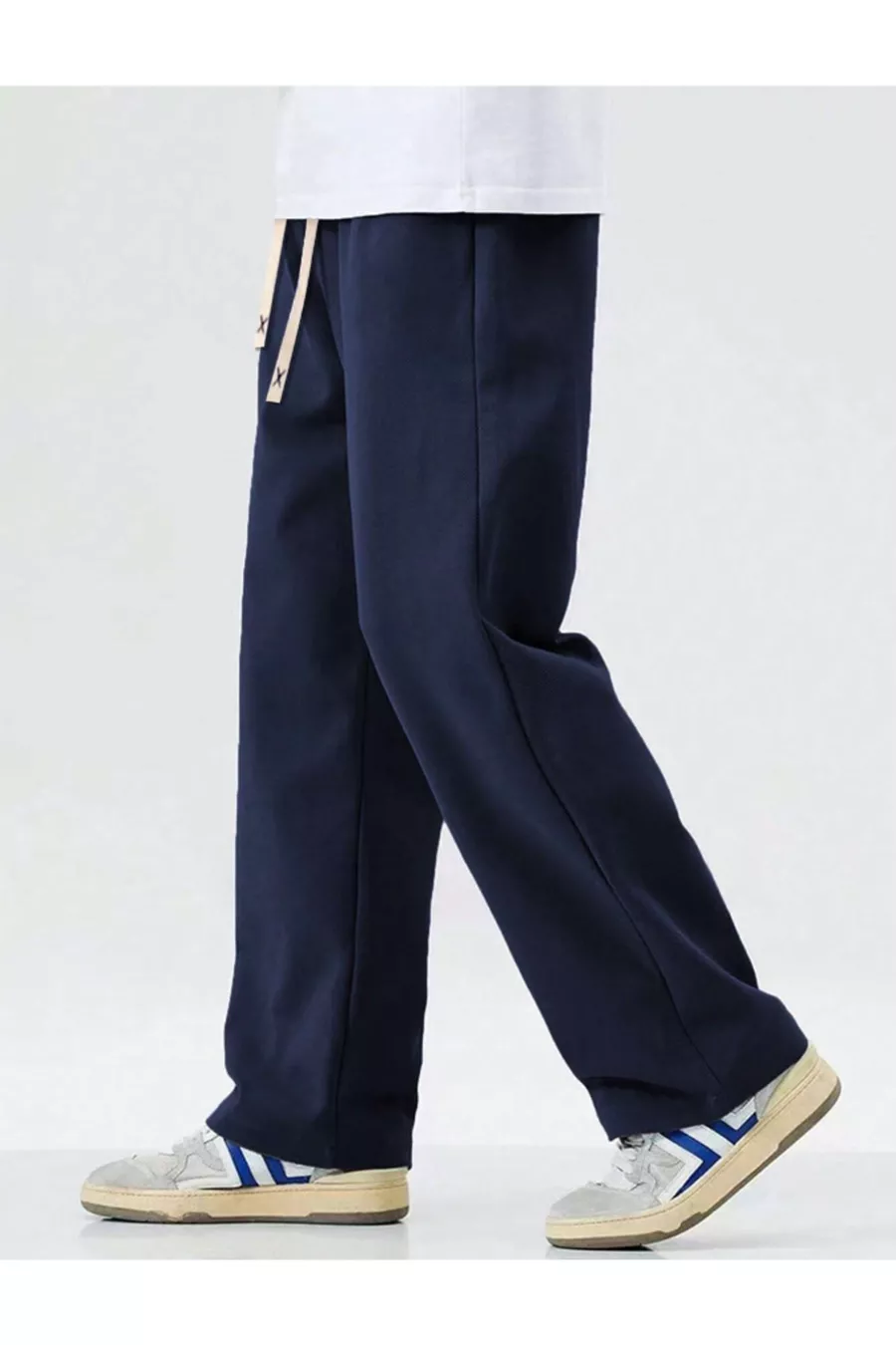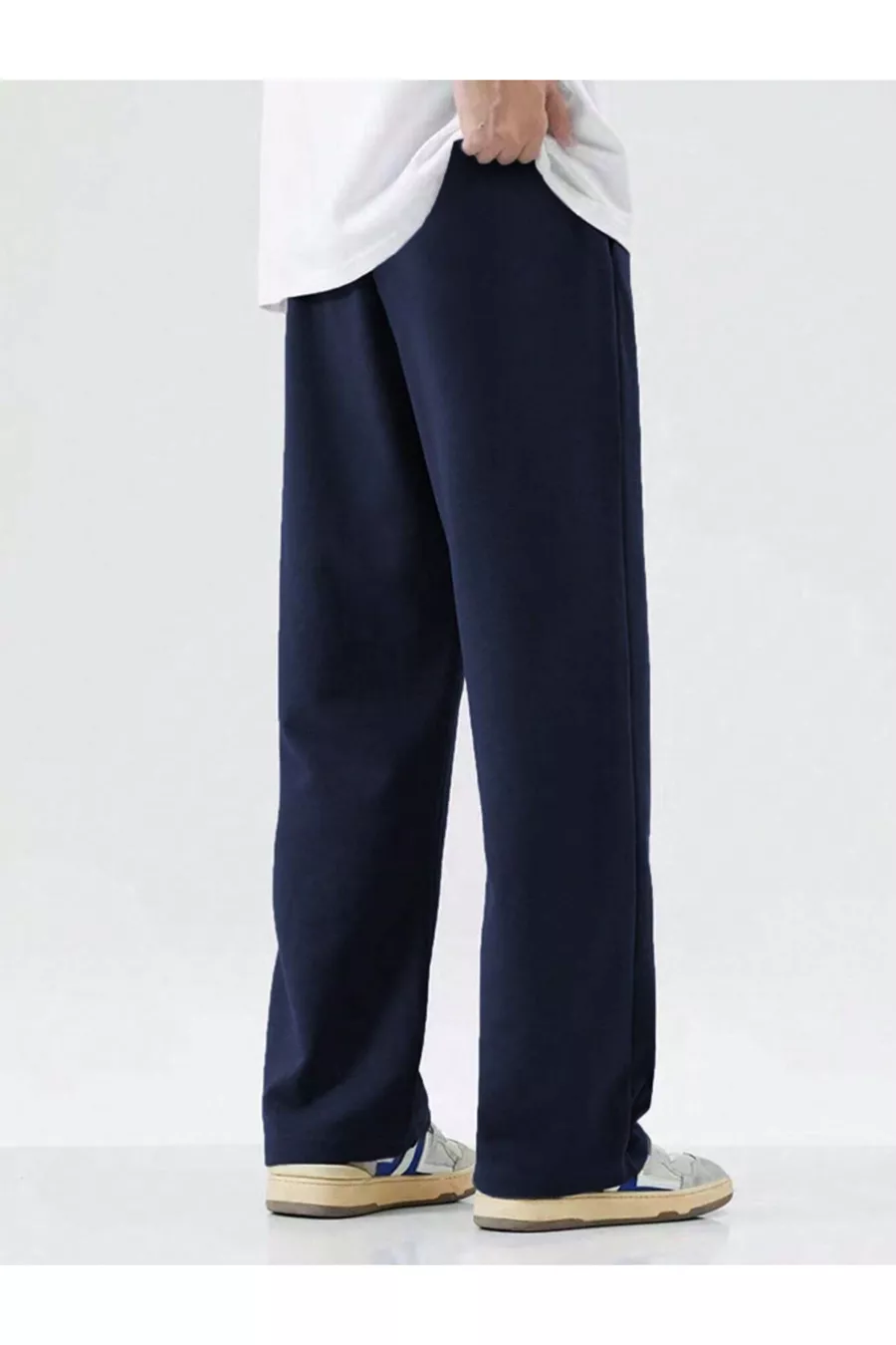 بنطال رياضي واسع القصة بلون كحلي مع أرجل مستقيمة وراحة في اللبس