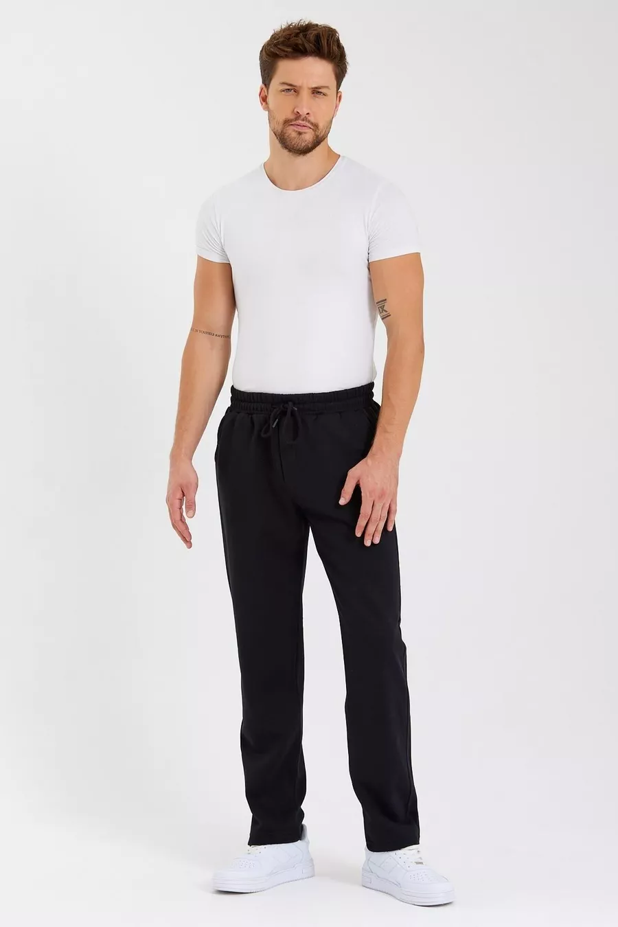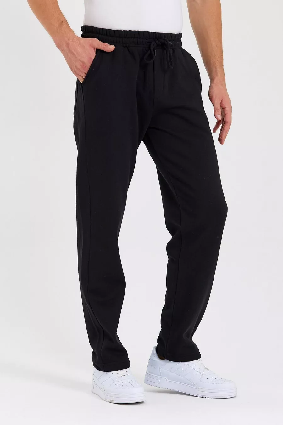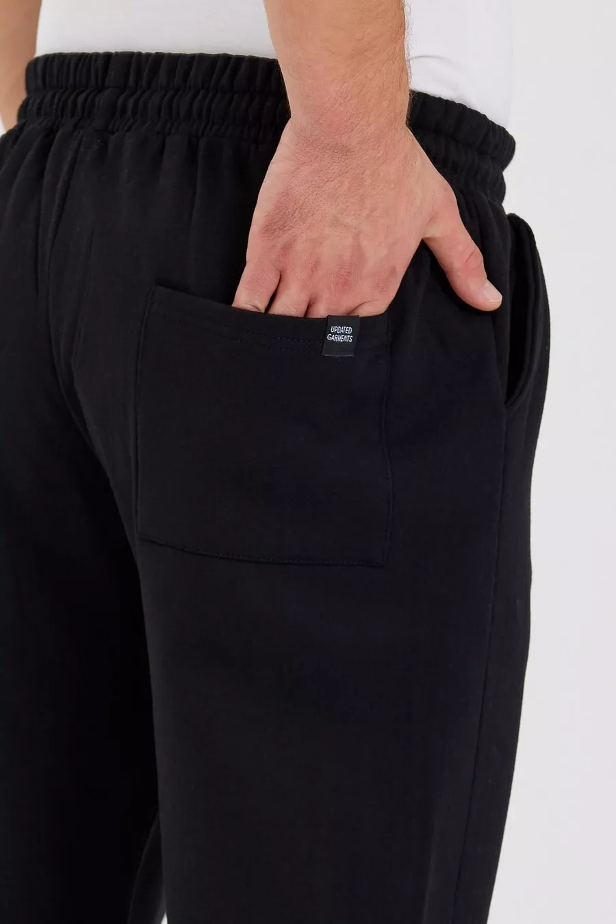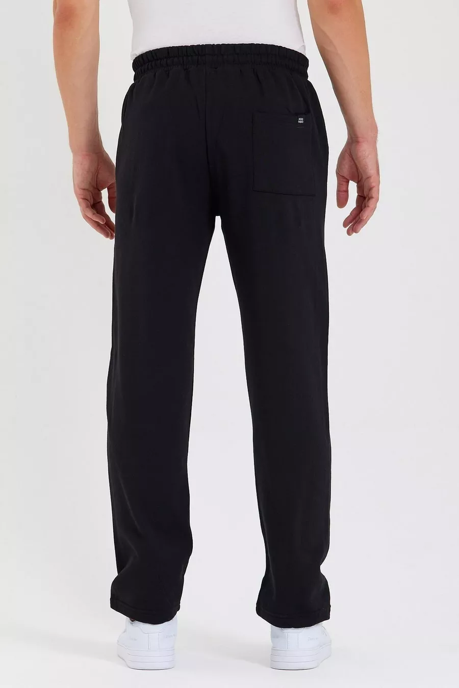 بنطال رياضي رجالي قطن داخلي بساق مستقيمة مع تفاصيل ملصق وجيب خلفي أسود