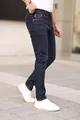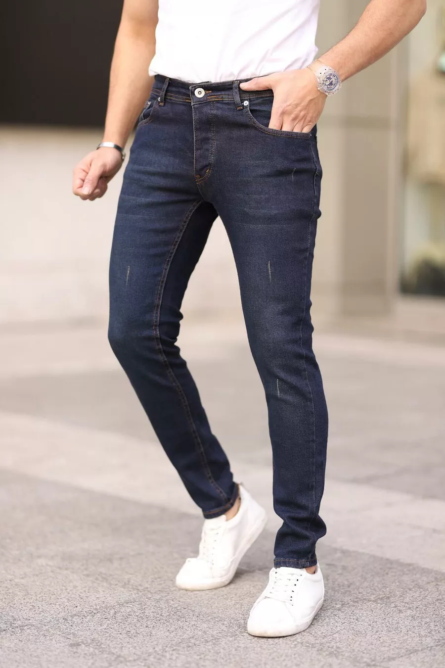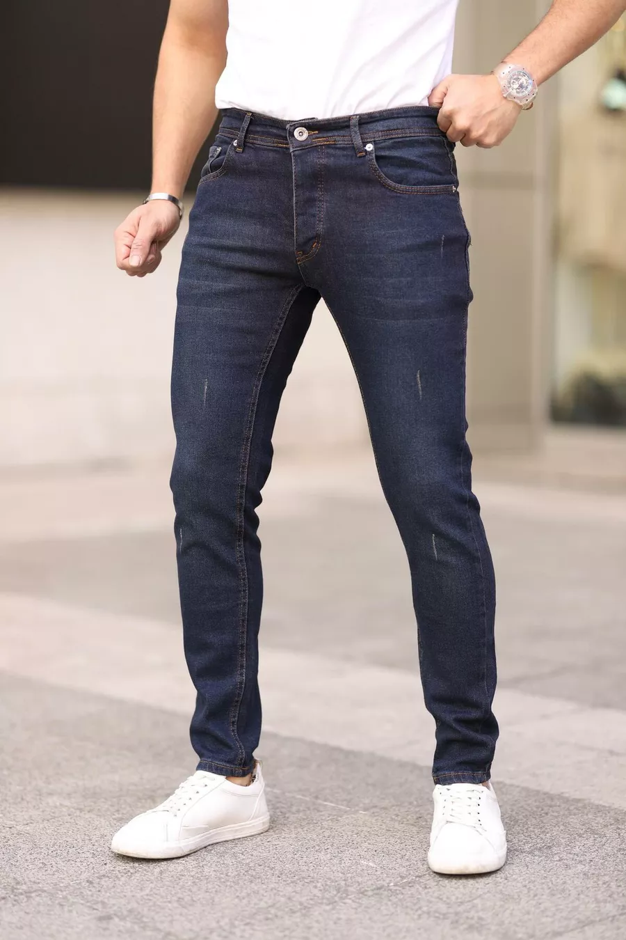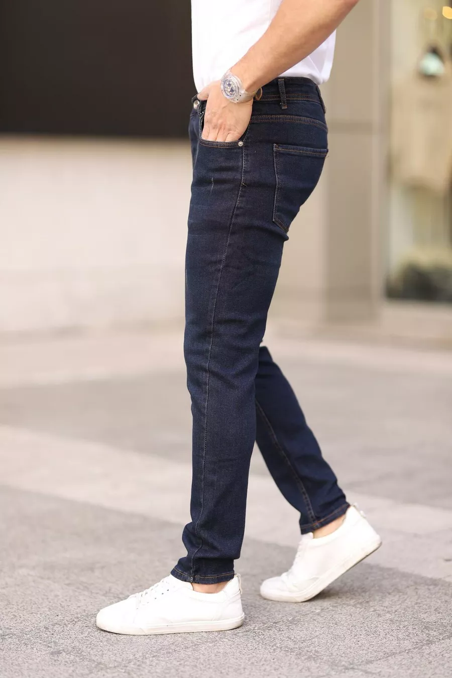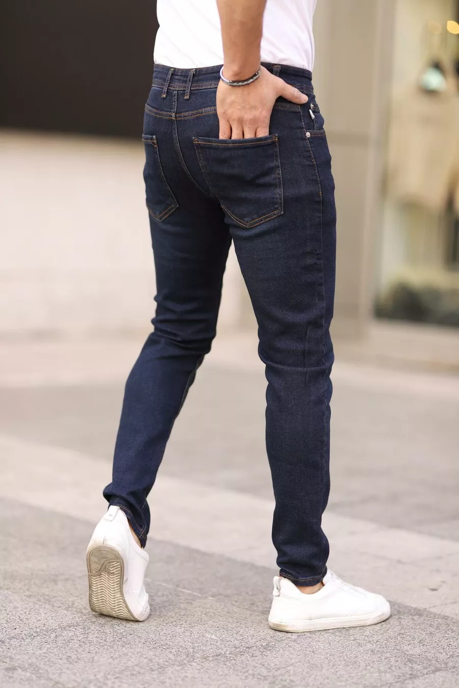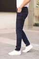بنطلون رجالي بقصة ضيقة مع ليكرا باللون البني الغامق وتفاصيل الأزرار