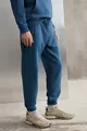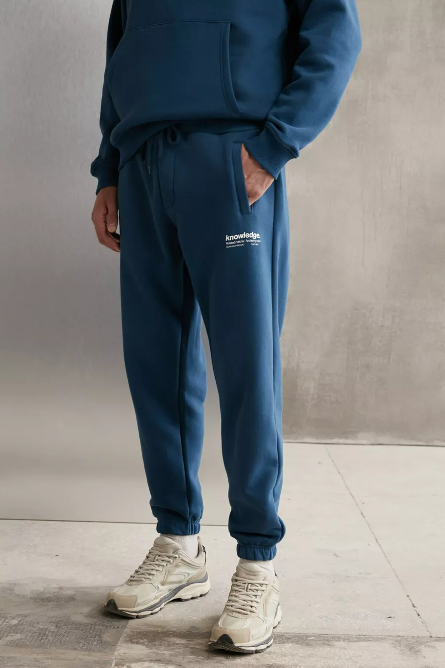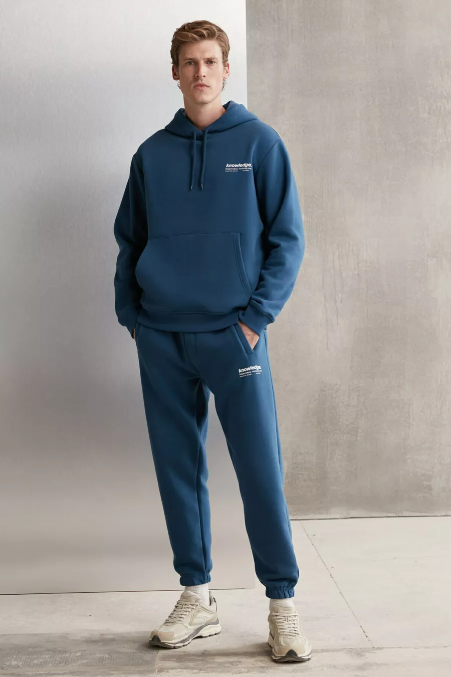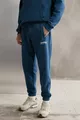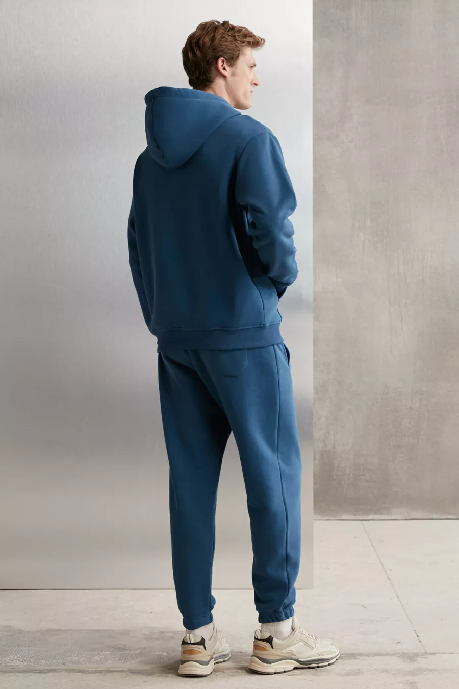 بنطلون رياضي رجالي أزرق من القطن العضوي، ناعم جدًا، بسحاب مطاطي، بقصة ضيقة عند الكاحل وثلاث جيوب