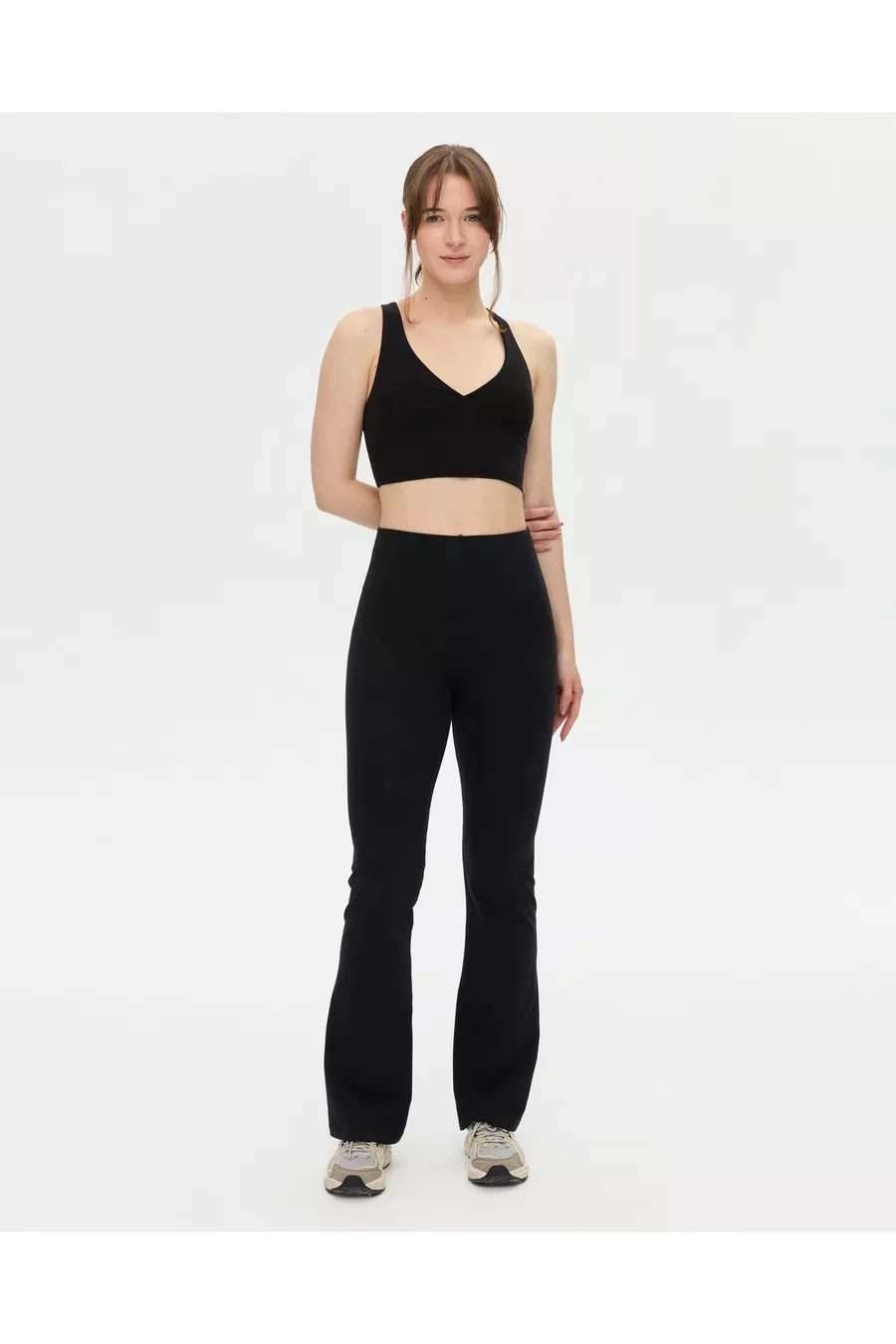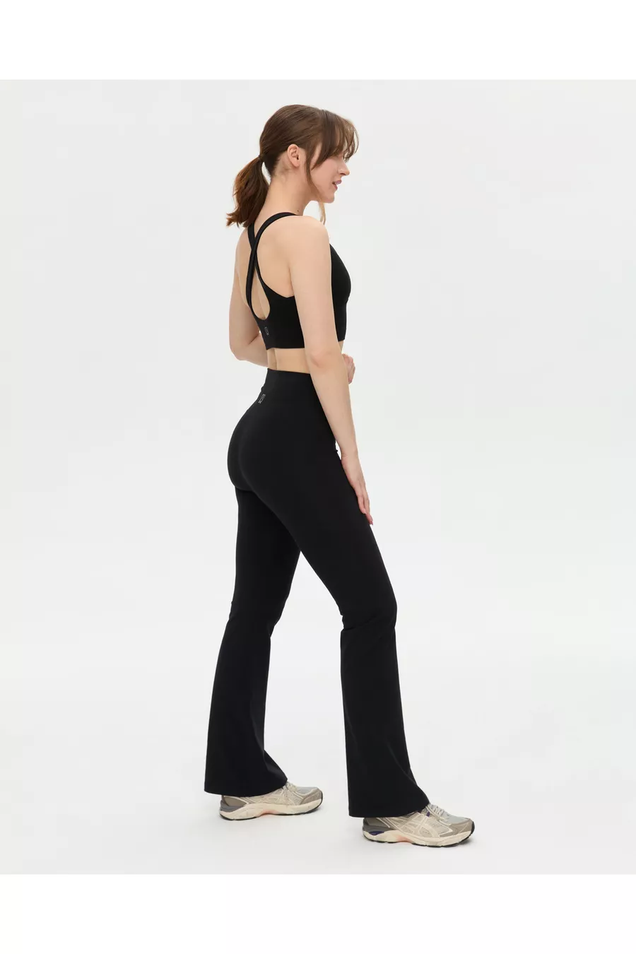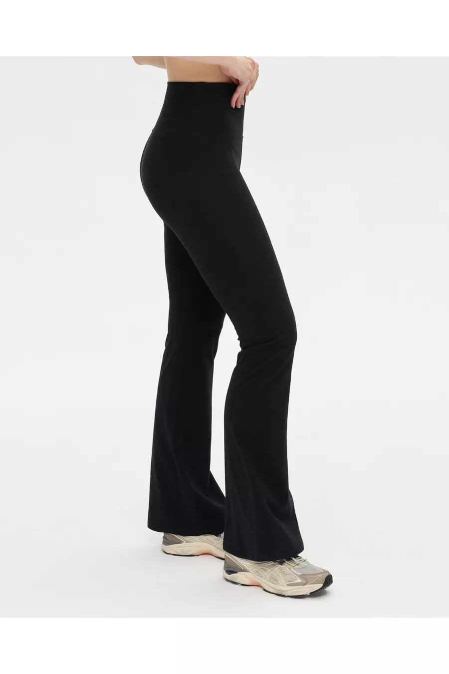 بنطلون ضيق بقصة إسبانية من القطن العضوي الأسود بخصر عالٍ