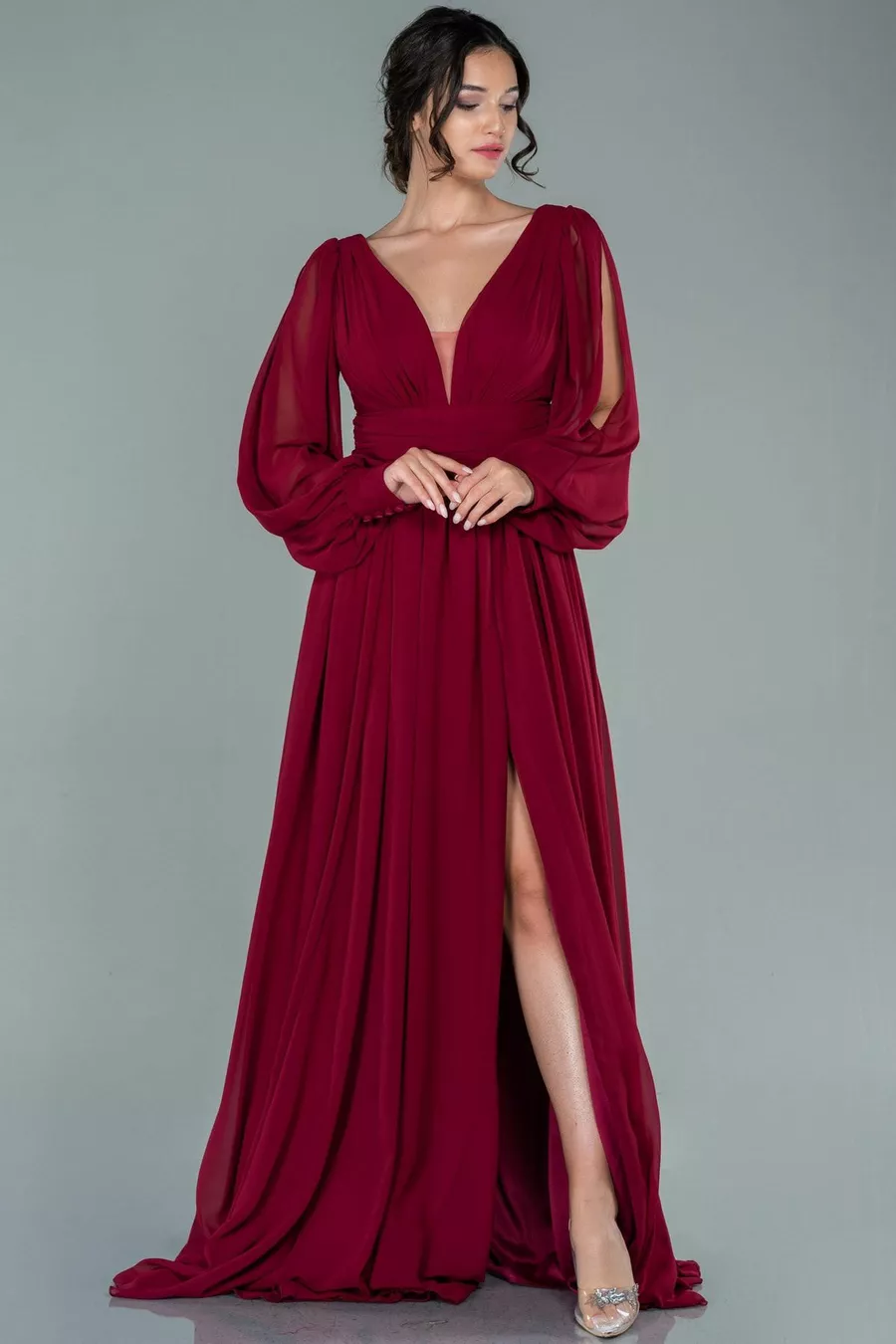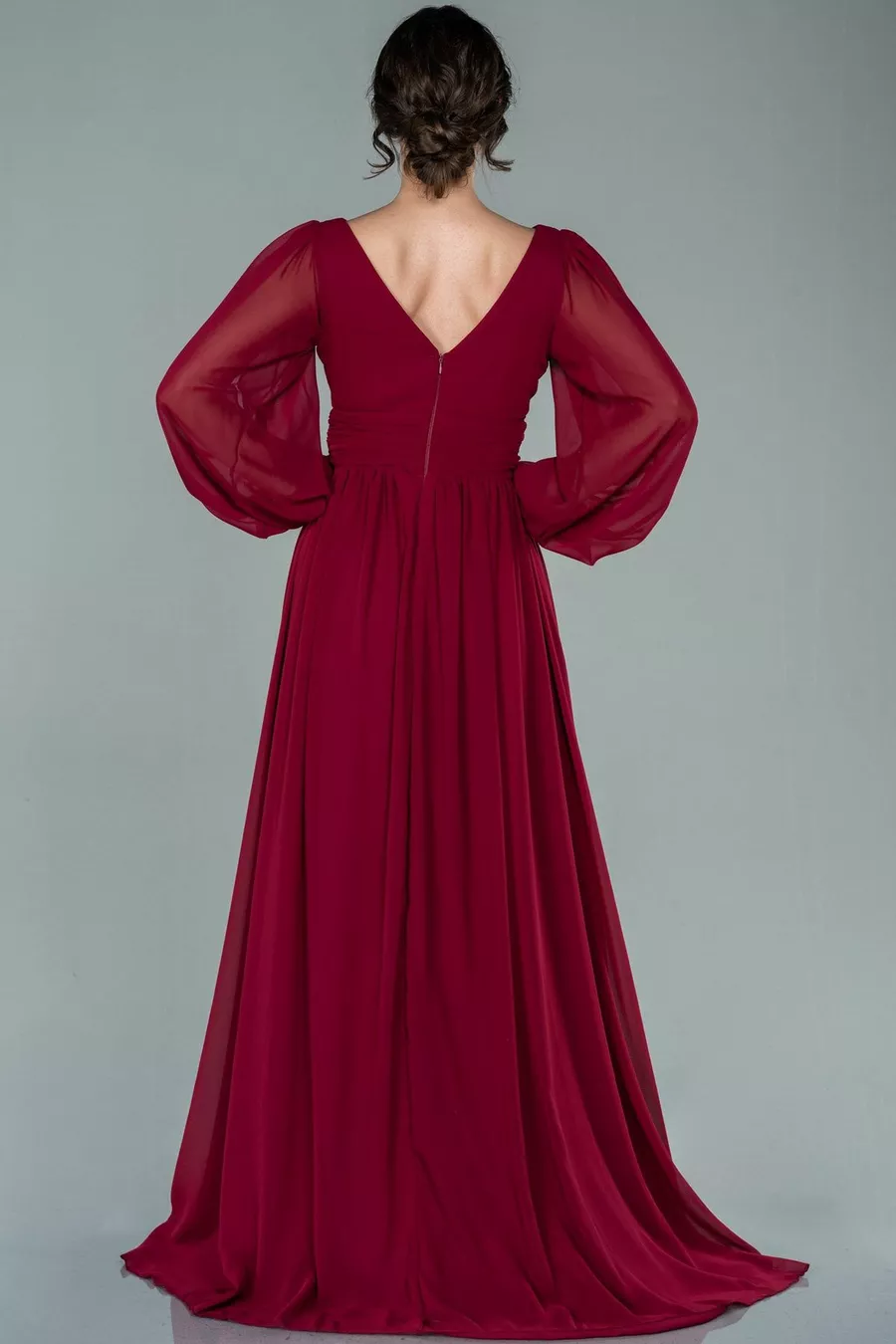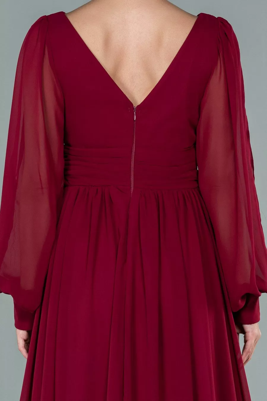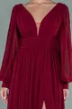بورجوندي كم طويل الساق منخفضة قطع الشيفون مساء اللباس