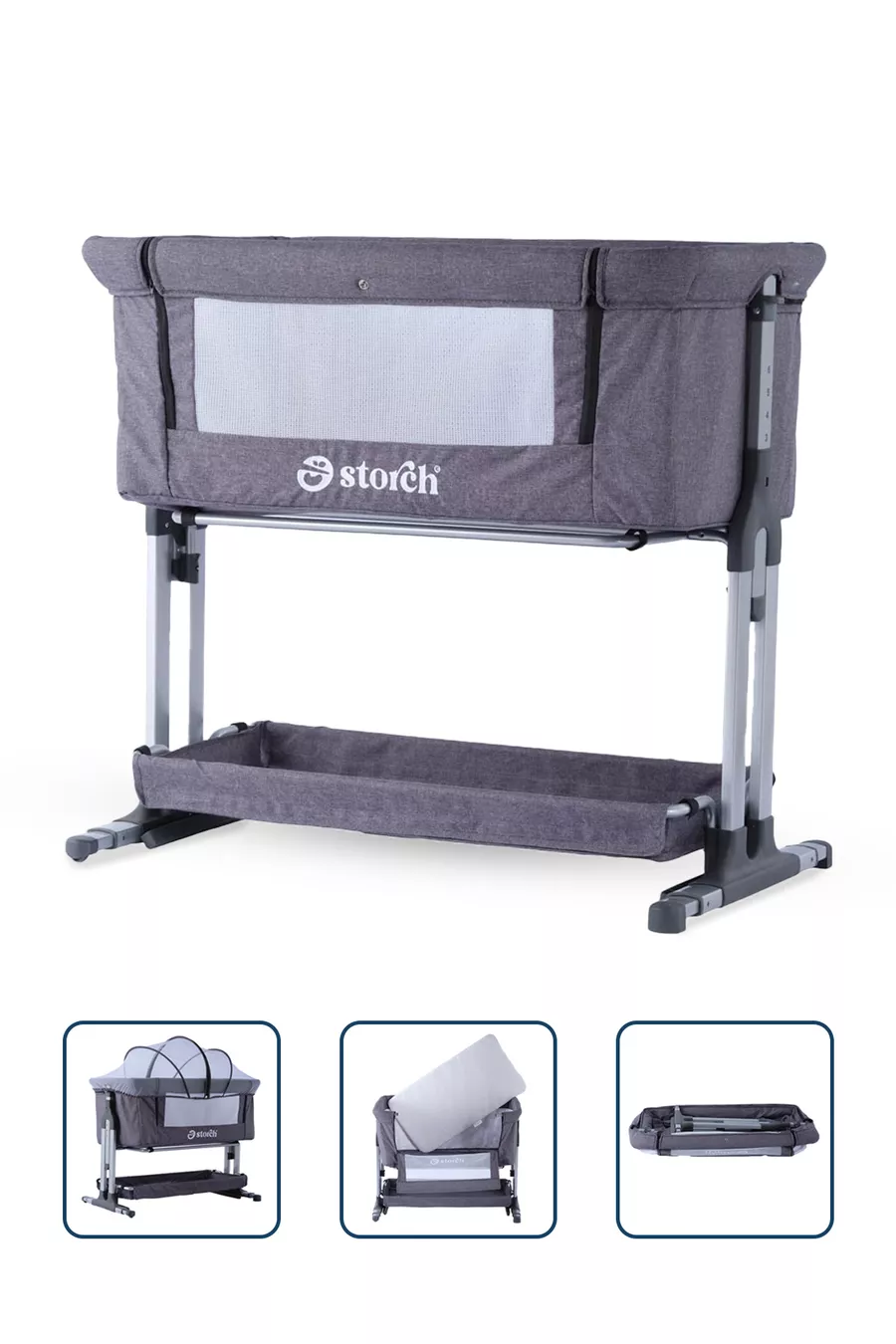 المادة: النسيج اللون: رمادي سعة التحميل: 0 - 13 كغ مدة الضمان: سنتان الوظيفة: ثابت نوع الاستخدام: بجانب الأم وظيفة التأرجح: موجودة العرض: 100 سم أبعاد السرير الداخلي: 50 × 90 العمق: 100 سم الارتفاع: 100 سم المنشأ: الصين الميزة: قابل للتأرجح