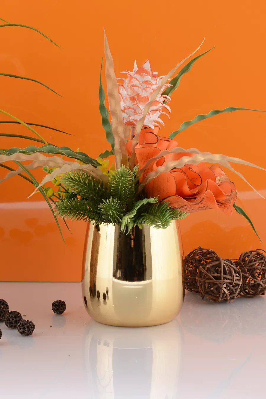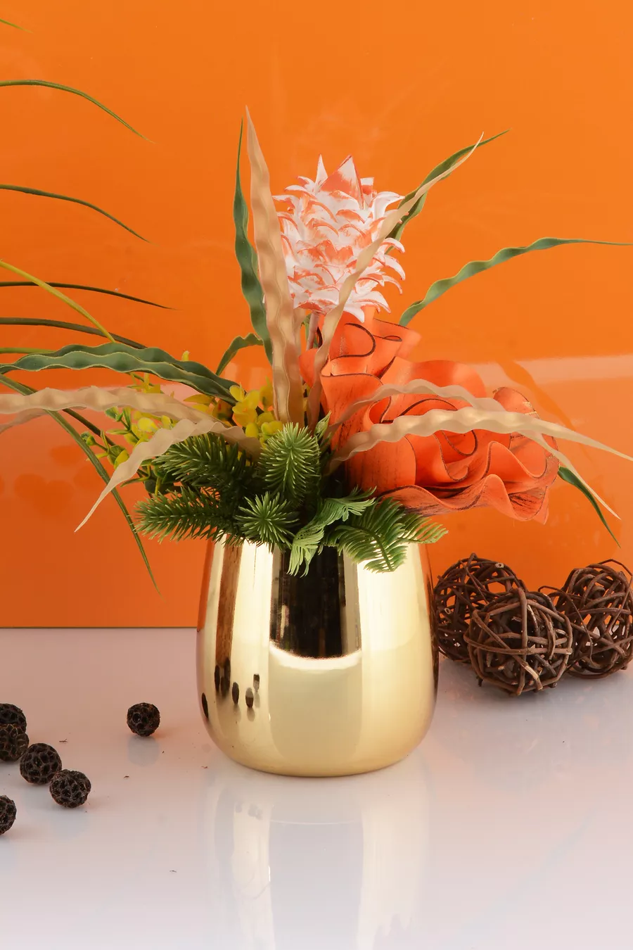 ترتيب ASLI Gold، مزهرية معدنية للزهور - بدون زهور