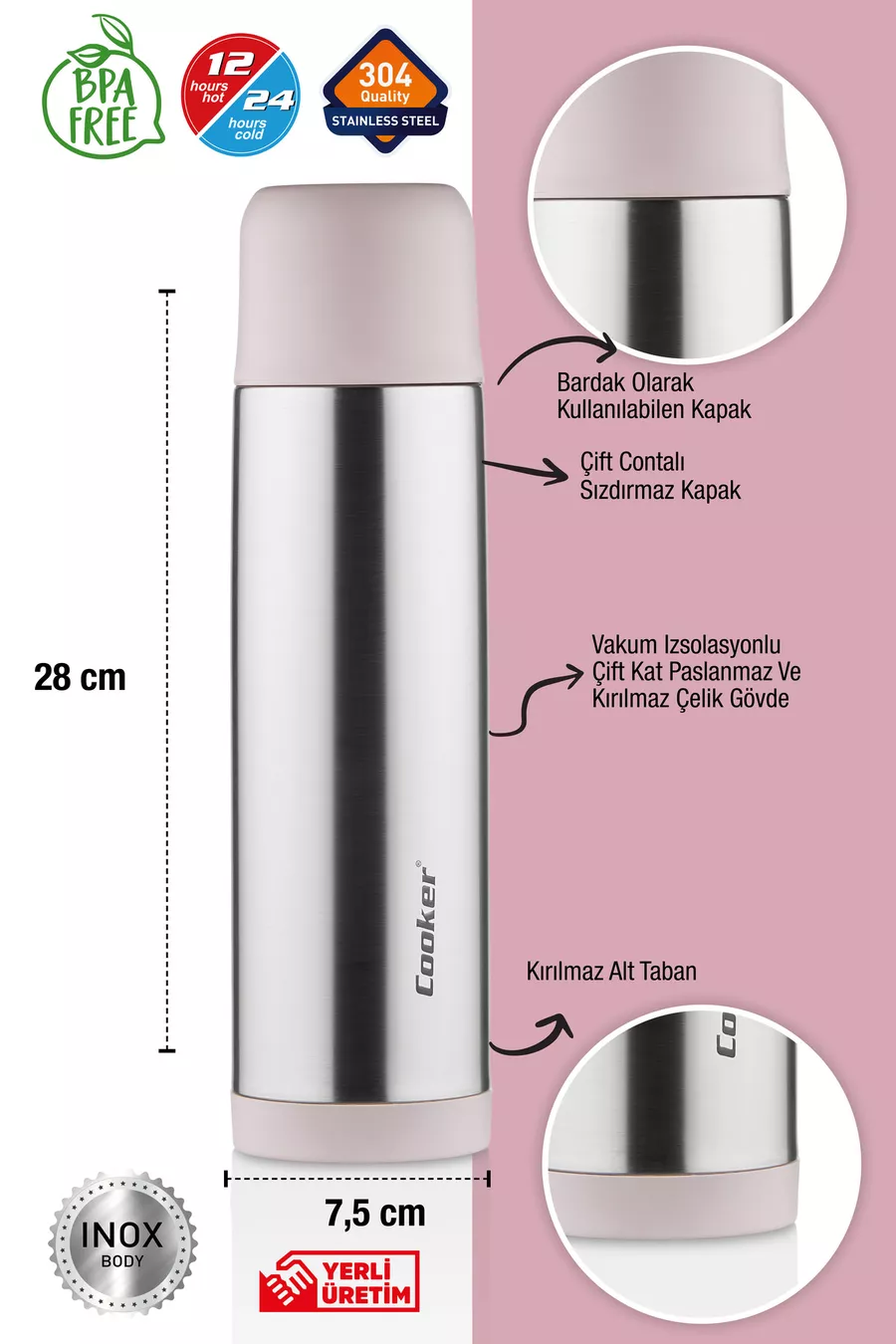 مدة العزل: 24 ساعة السعة: 0.75 لتر المادة: فولاذ مقاوم للصدأ اللون: وردي الطراز: مشروبات المنشأ: تركيا