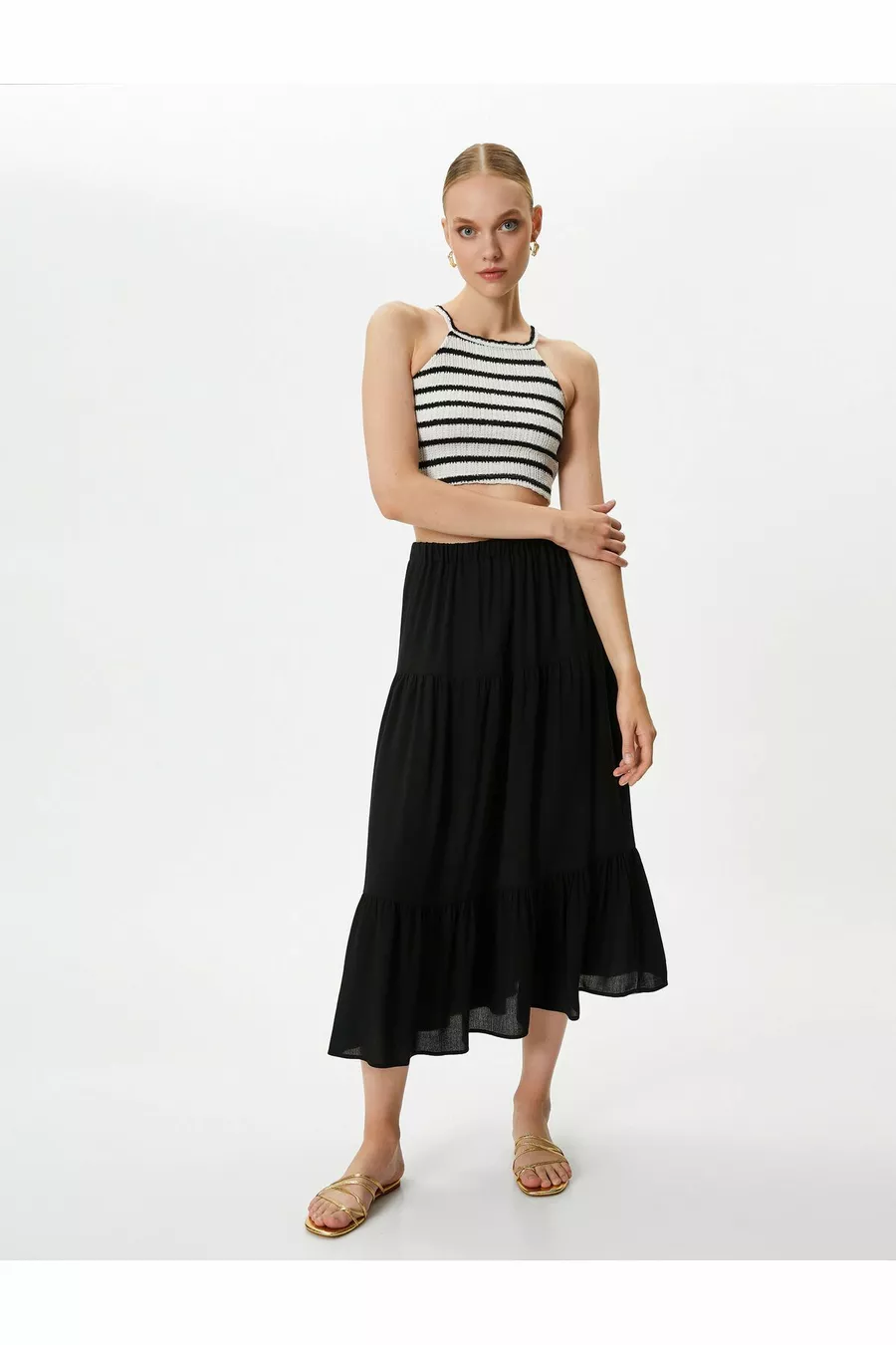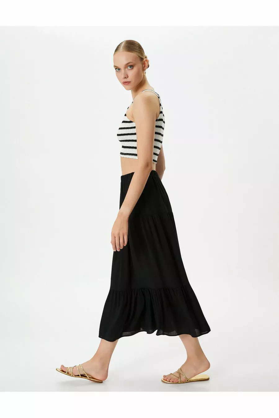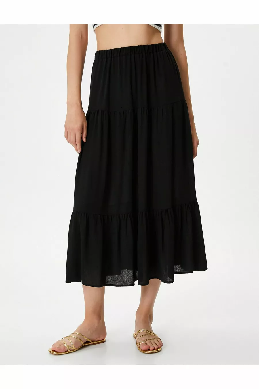 تنورة ميدي منتفخة الخصر مطاط فسكوزي