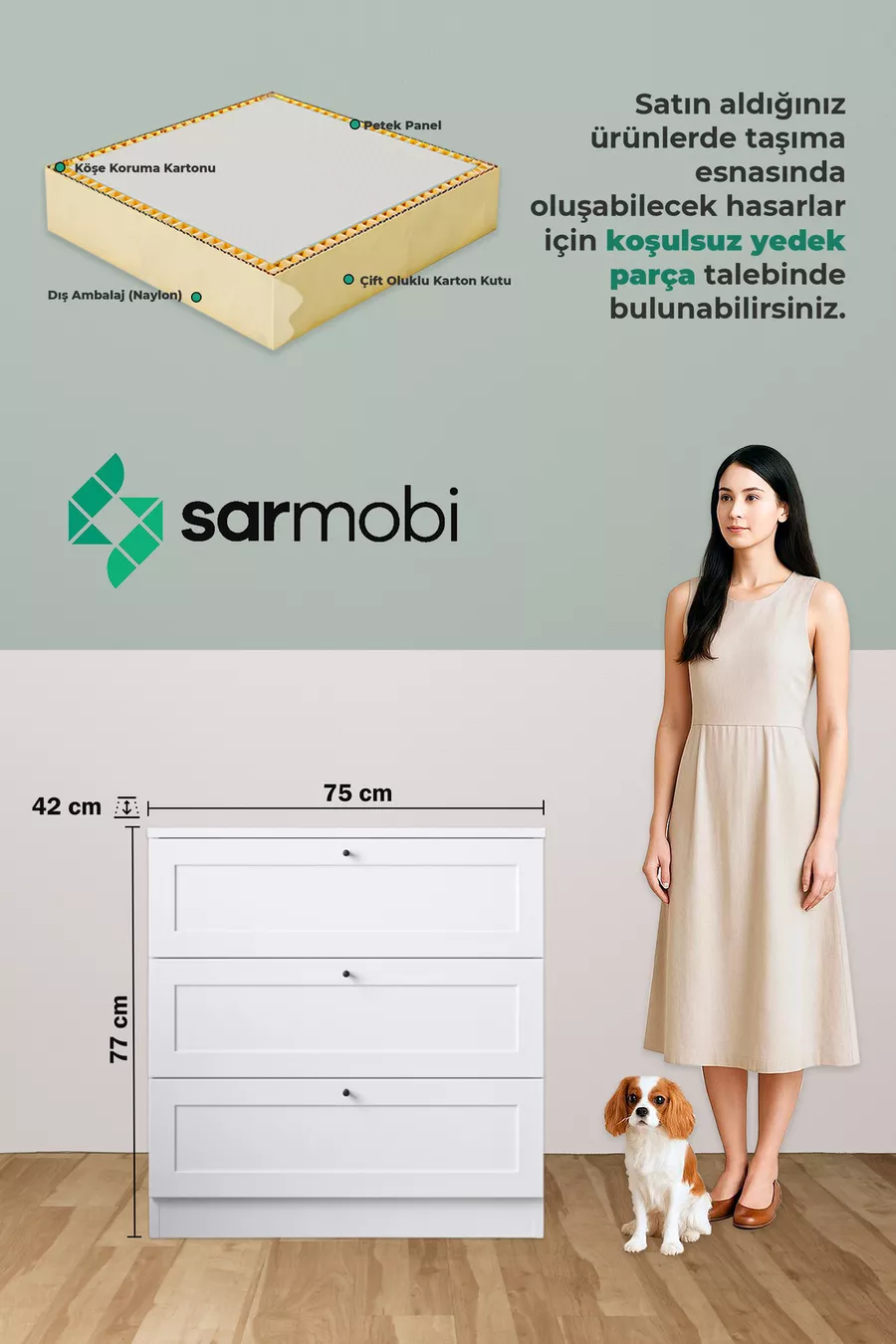 اللون: أبيض مدة الضمان: سنتان المادة: سونتالام الارتفاع: 77 سم العرض: 75 سم العمق: 42 سم عدد الأدراج: 3 ميزة المنتج: يحتوي على أدراج النمط: ريفي الموضوع / النمط: ريفي المنشأ: تركيا الميزة: يحتوي على أدراج