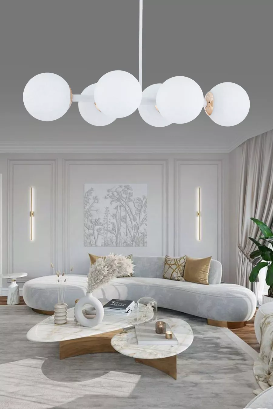 المواد: معدن النموذج: حديث نوع المقبس: E27 عدد رؤوس المصابيح: 6 اللون: أبيض الحجم/الأبعاد: 51 × 60 الارتفاع: 51 - 60 سم مجال الاستخدام: صالون / غرفة المعيشة المنشأ: الصين الخاصية: مقاوم للبقع
