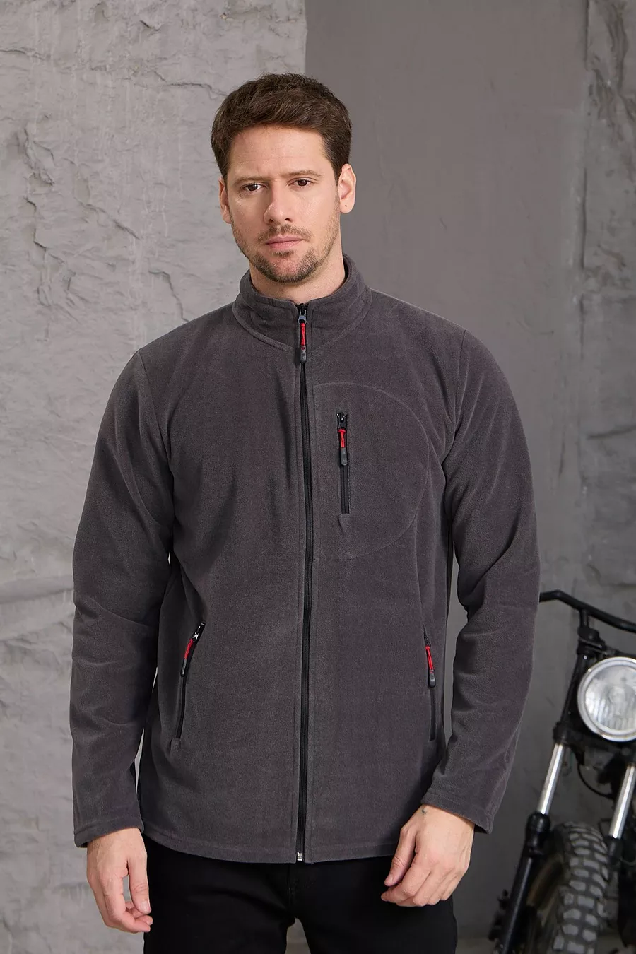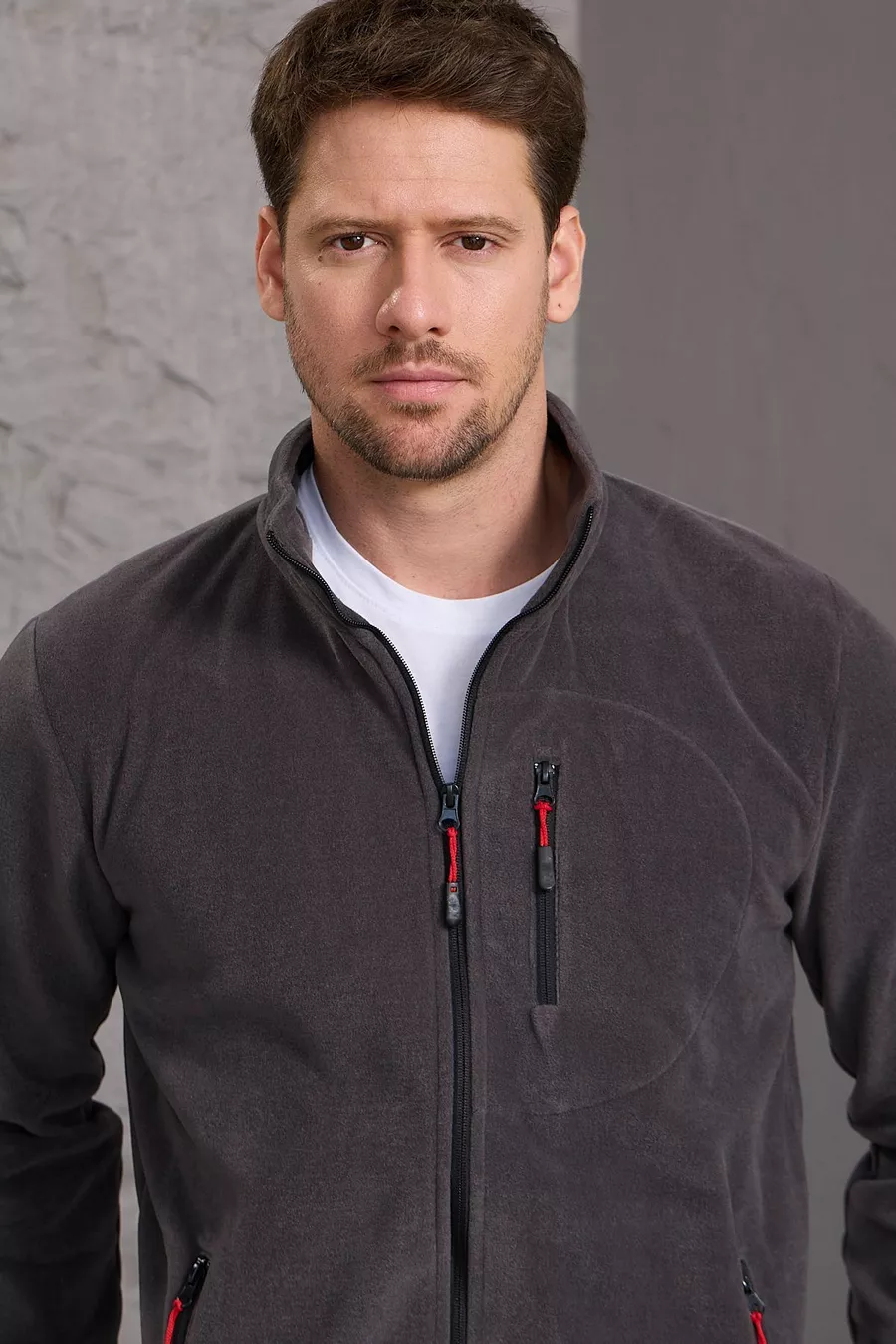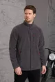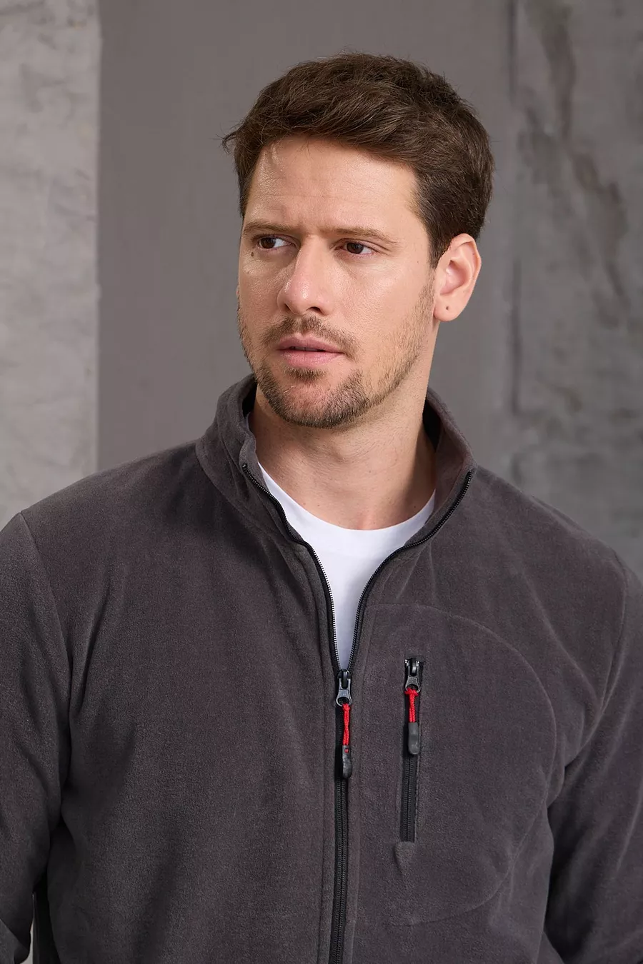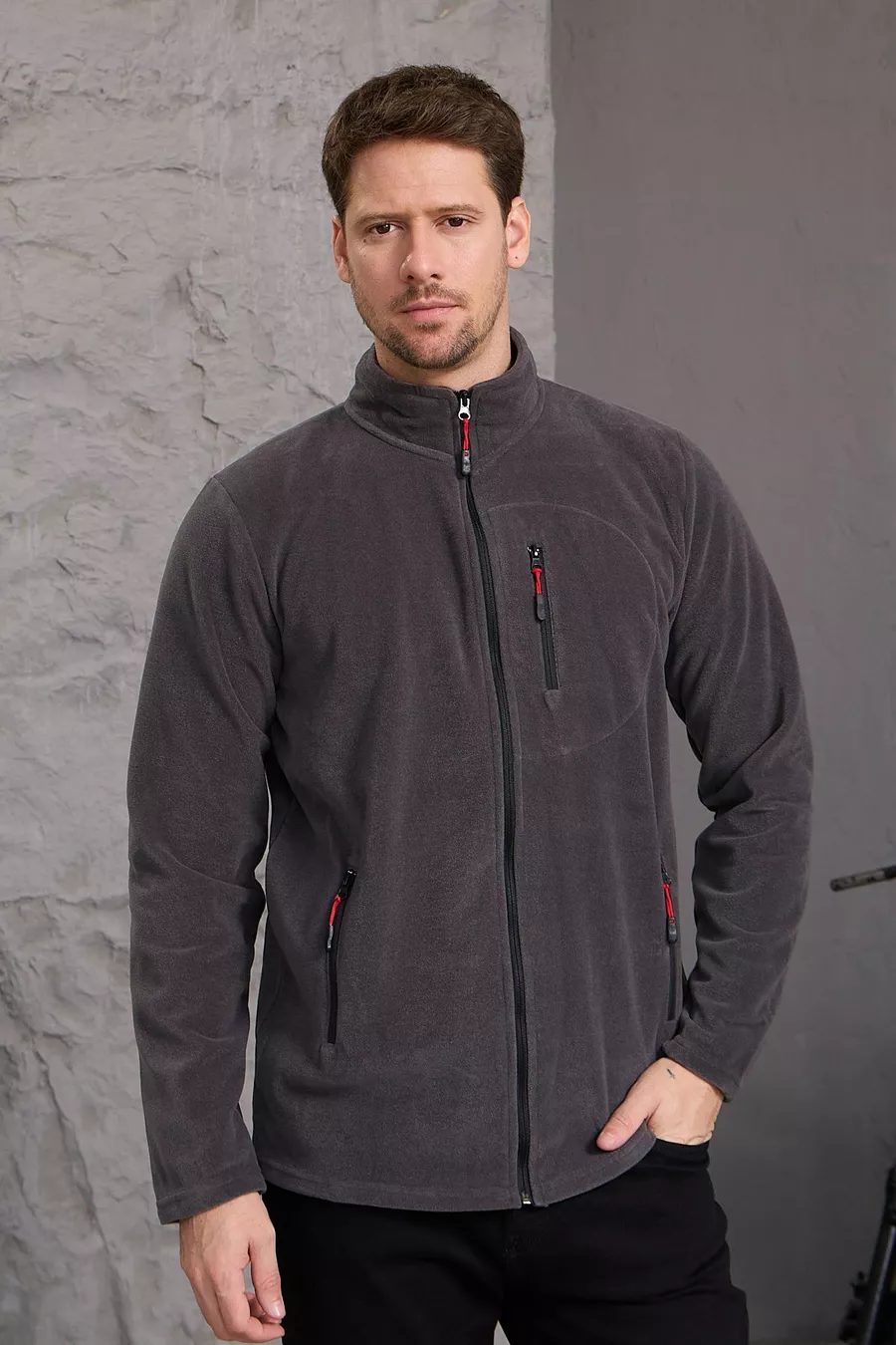 جاكيت بقلنسوة رجالي شتوي سميك بسحاب كامل من قماش قطني مبطن بالفرو باللون الرمادي الداكن