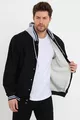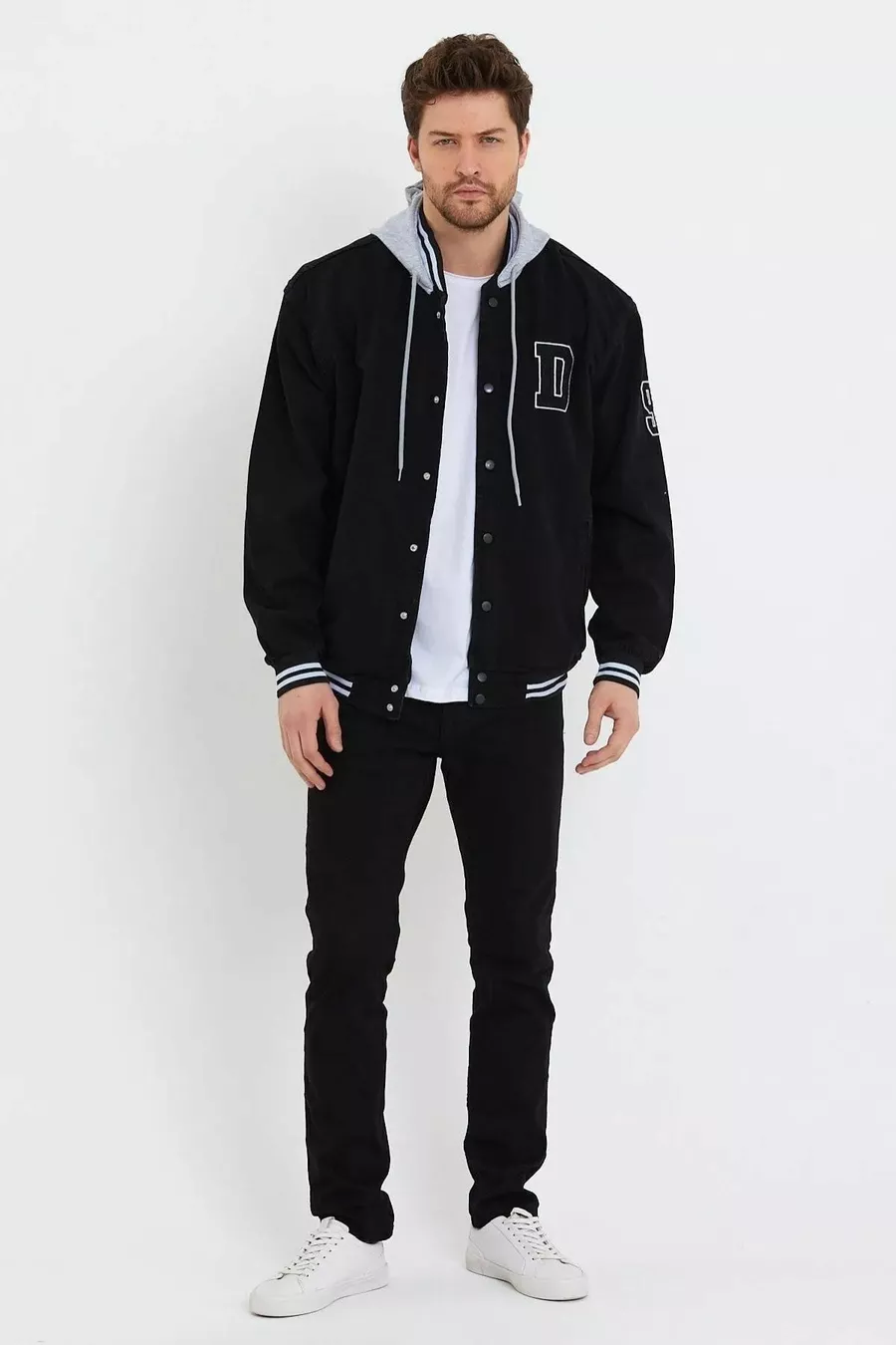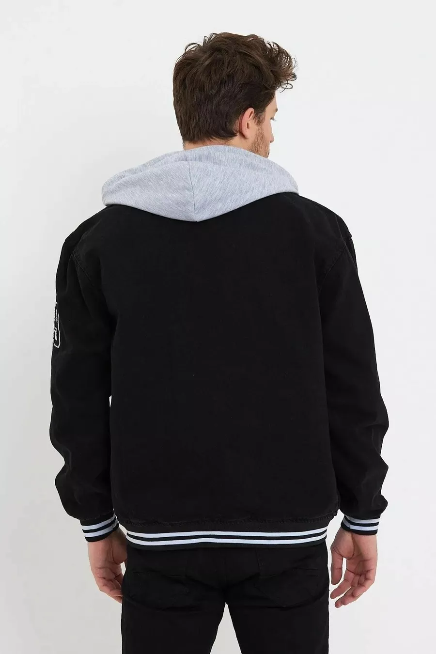 جاكيت كولج أسود بغطاء رأس مبطن بالفرو
