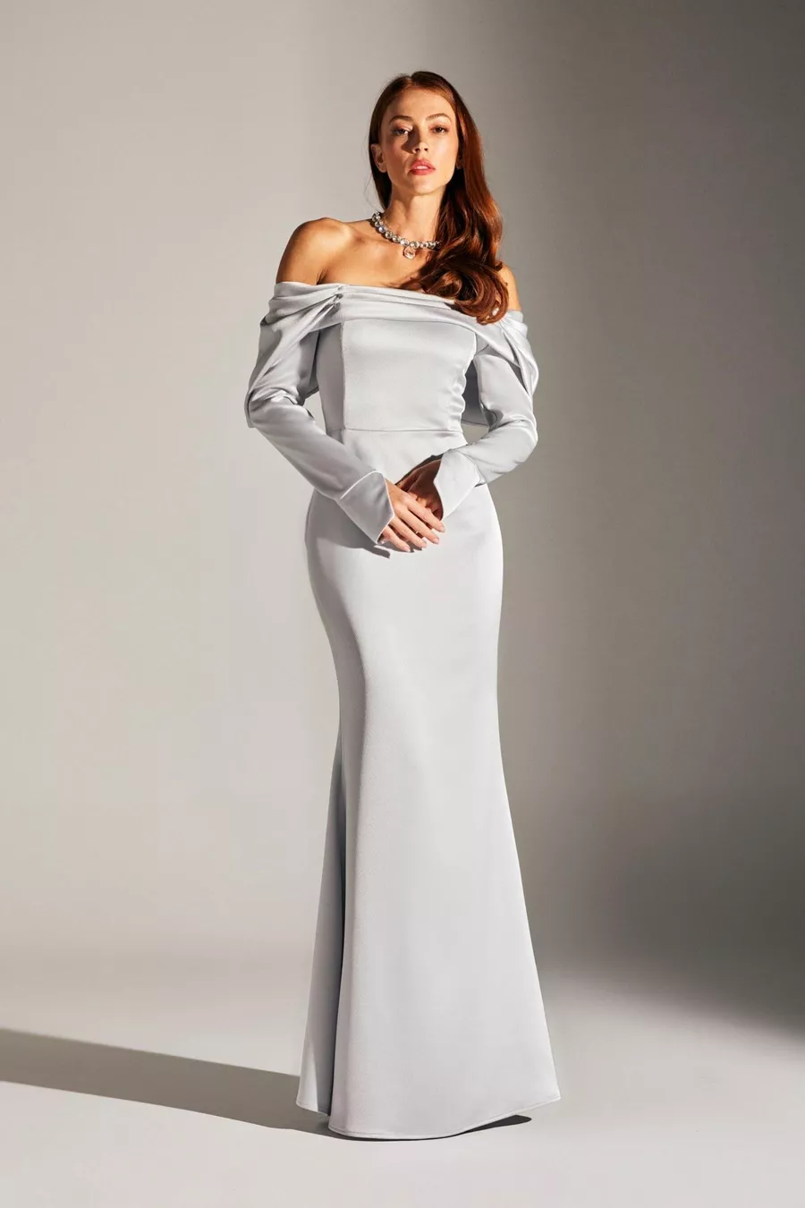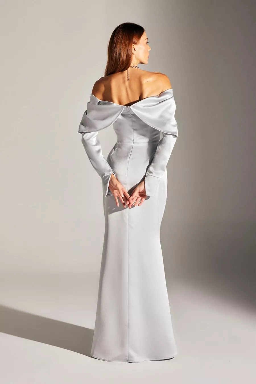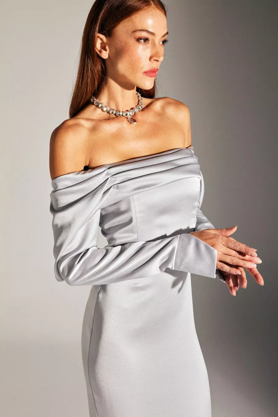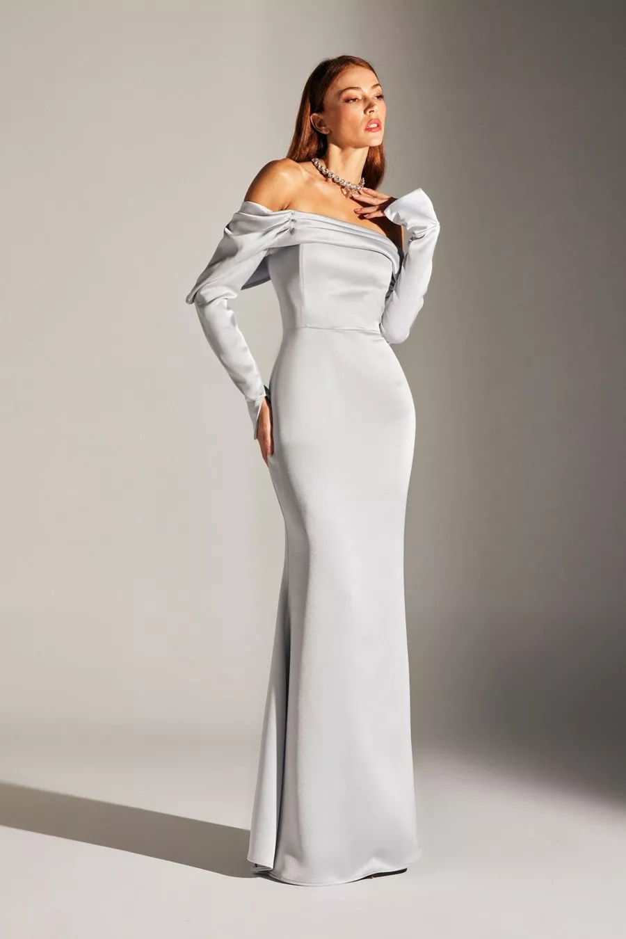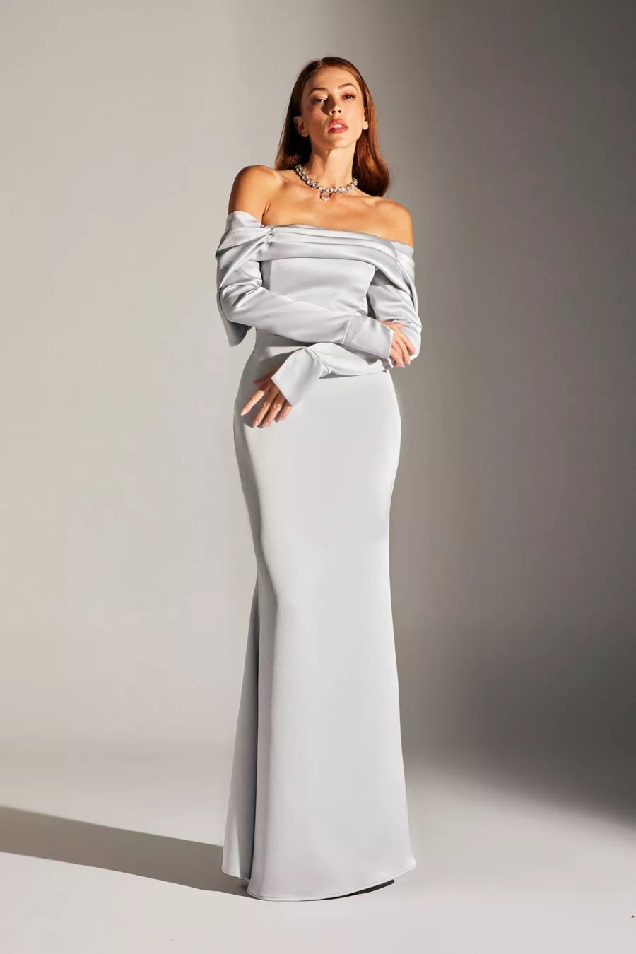 جديد كلارا قبالة الكتف حورية البحر تنورة رمادي مساء ثوب