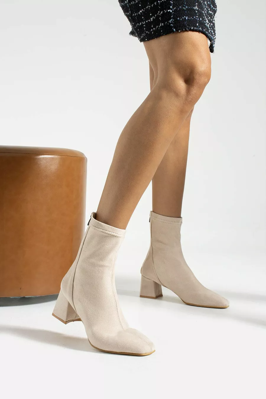 جزمة نسائية من جلد الغزال البيج (HEEL 6CM)