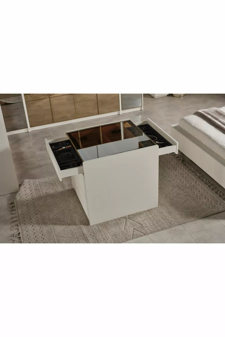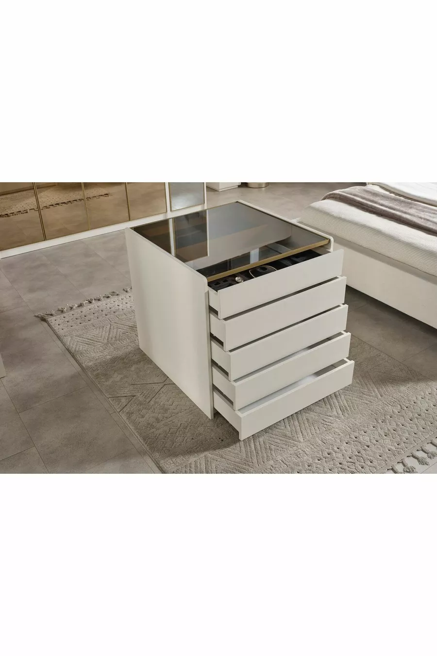 المادة: صنطلام اللون: بيج مدة الضمان: سنتان عدد الأدراج: 1 الارتفاع: 82 سم العرض: 80 سم العمق: 80 سم الطراز: حديث الموضوع / الطراز: حديث المنشأ: تركيا