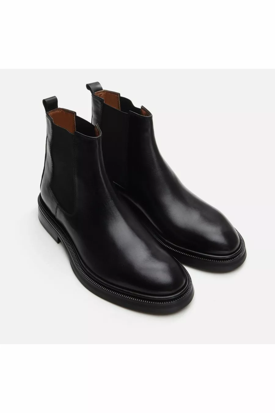 جلد طبيعي أسود أحذية كلاسيكية للرجال