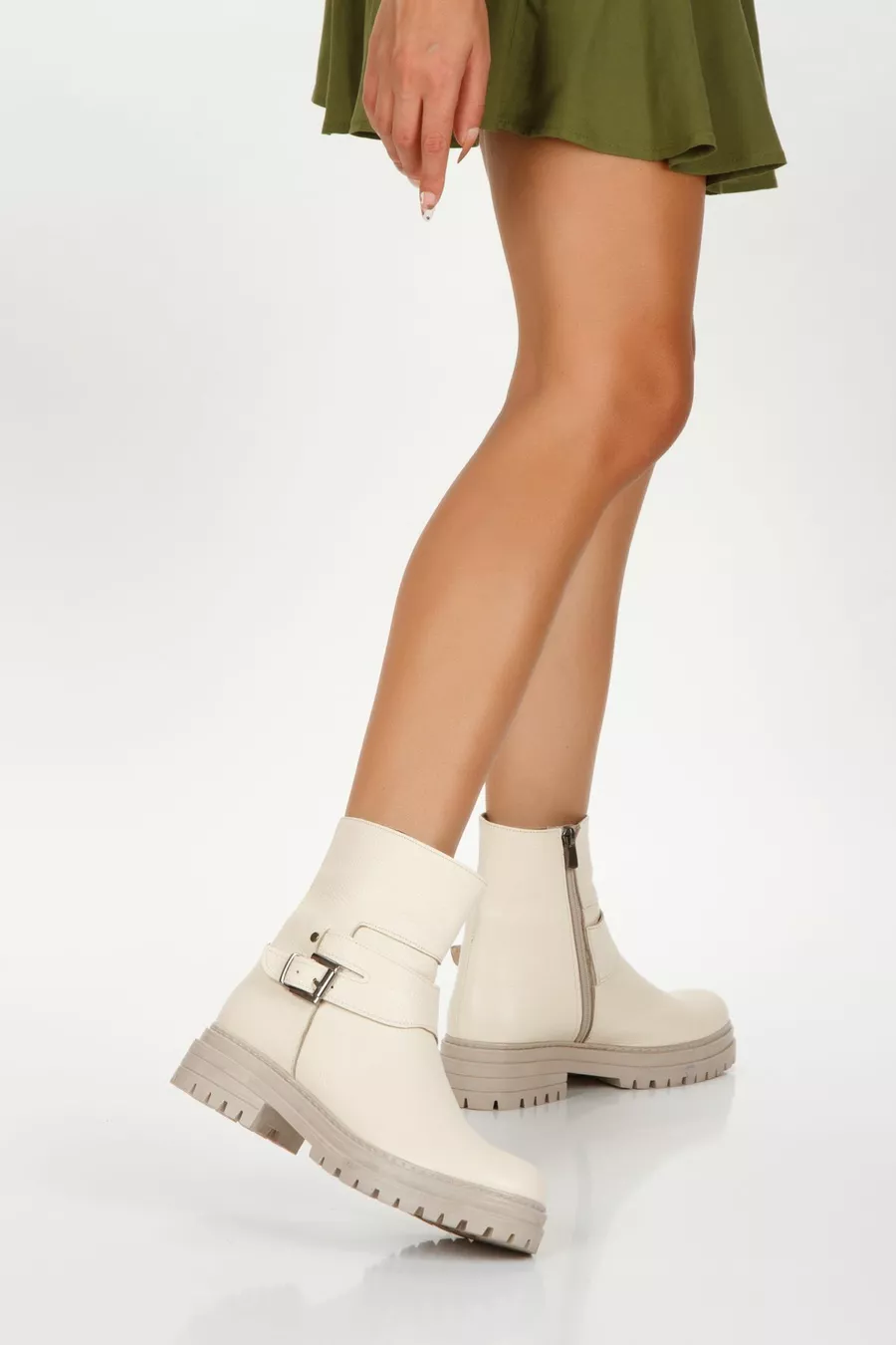 جلد طبيعي المرأة البيج سستة حزام أحذية التفاصيل