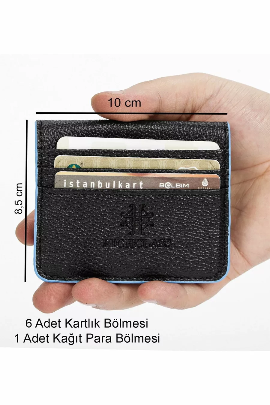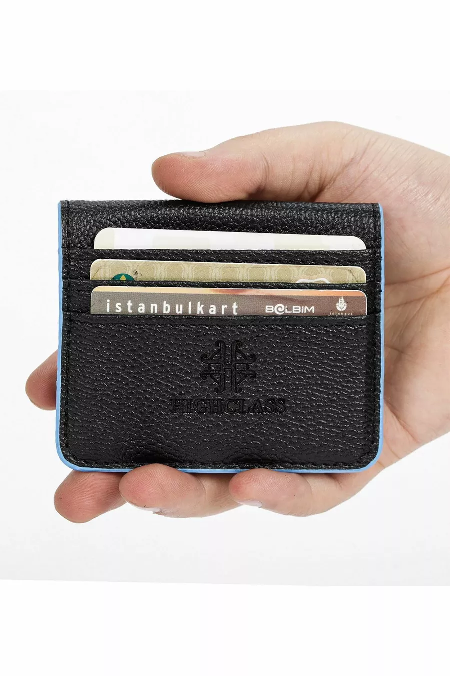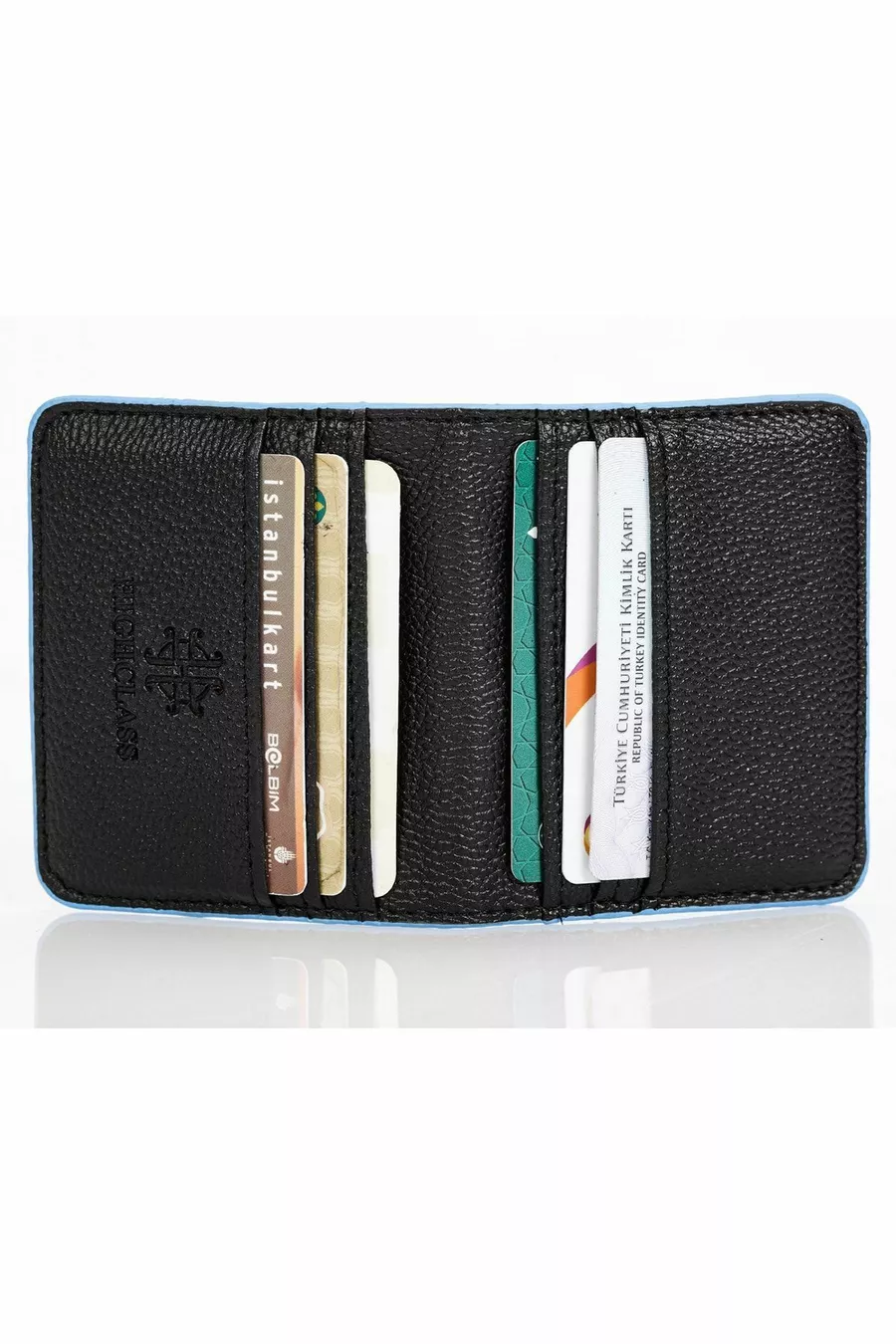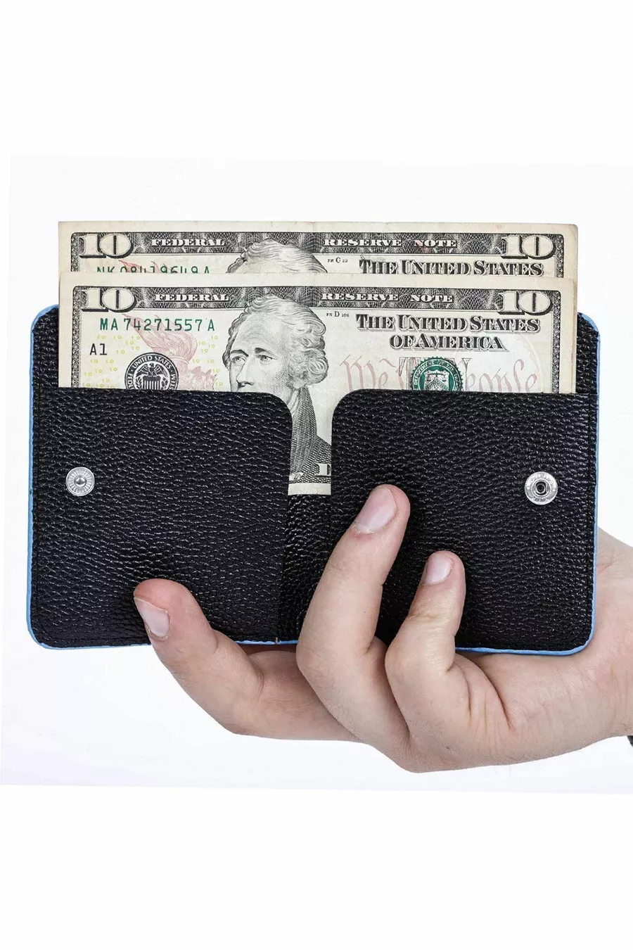 حامل بطاقة محفظة جلدية سوداء زرقاء مع مقصورة عملات معدنية