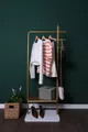 حامل ملابس معدني بقاعدة على شكل قدم بوسيدون، حامل ملابس للملابس الجاهزة، حامل فساتين ذهبي، حامل ملابس