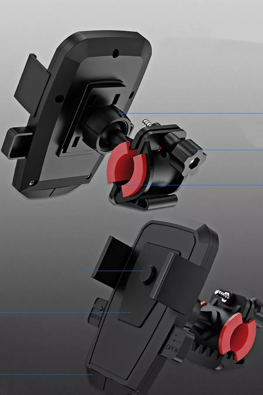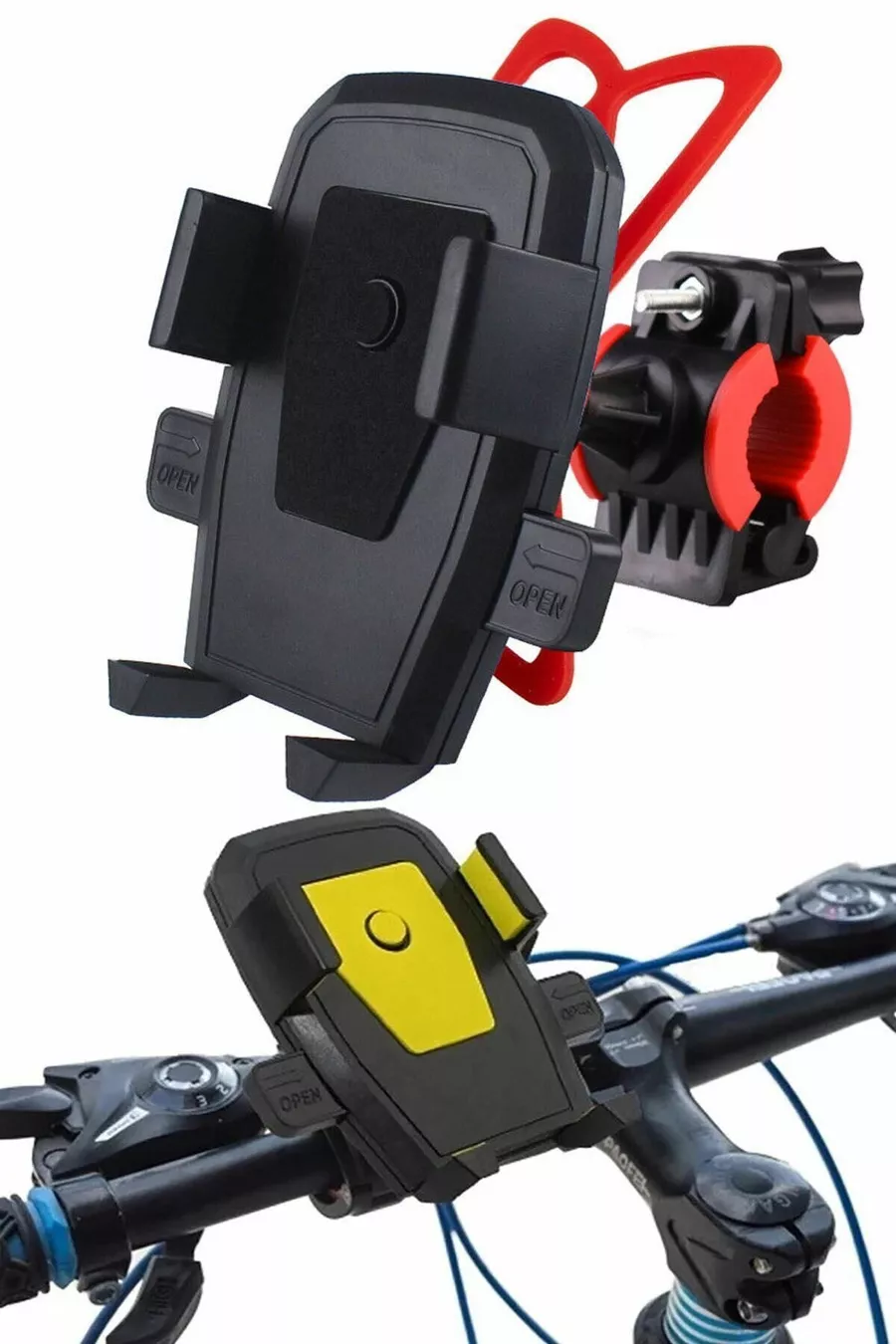 حامل هاتف مع قاعدة مثبتة ومتصلة بمقود الدراجة