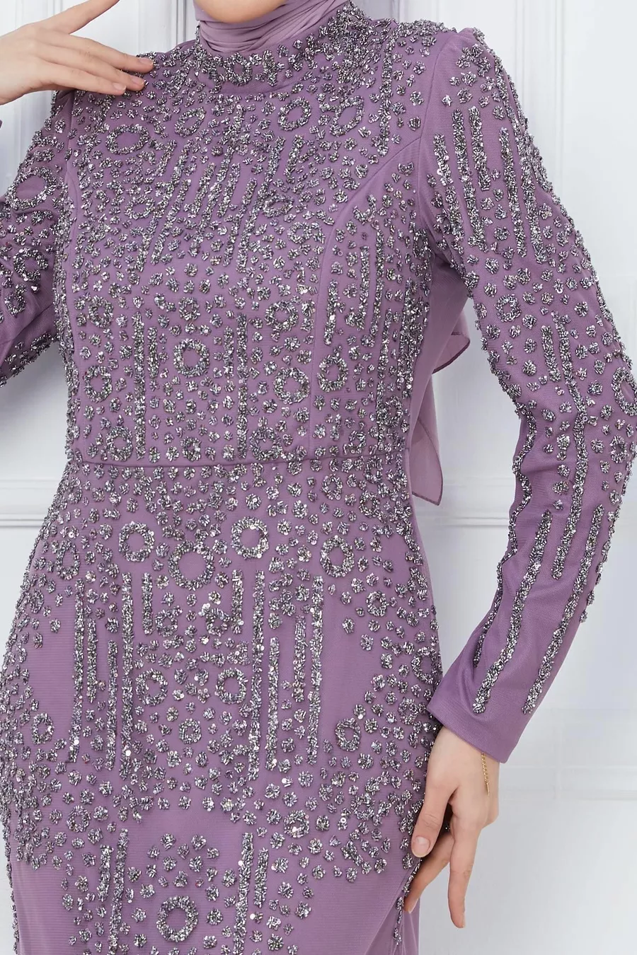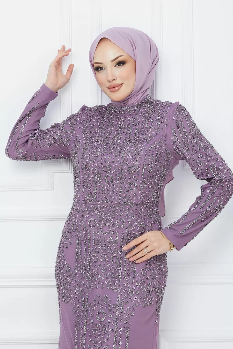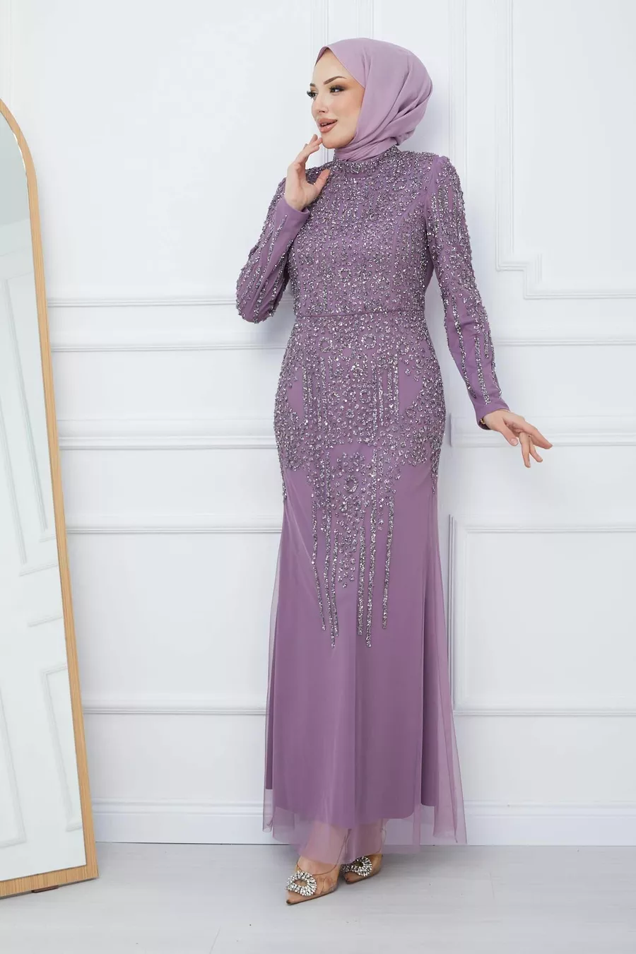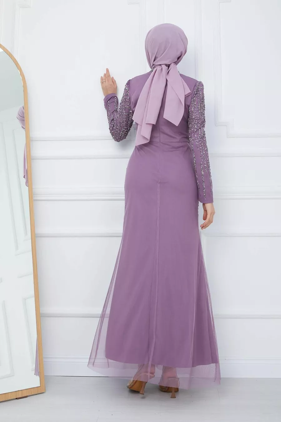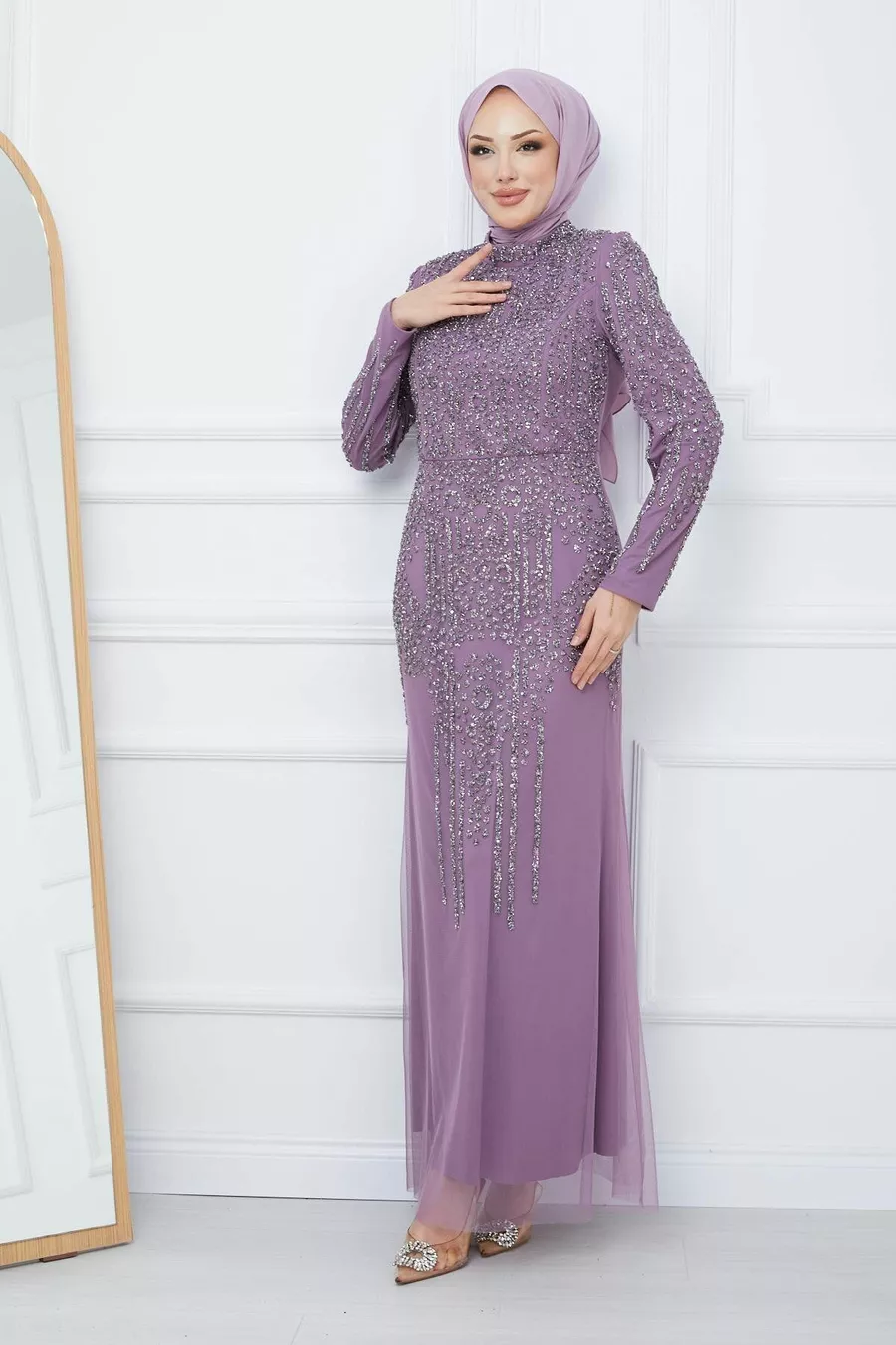 حبة وحجر مزينة تول الحجاب مساء اللباس LİLA