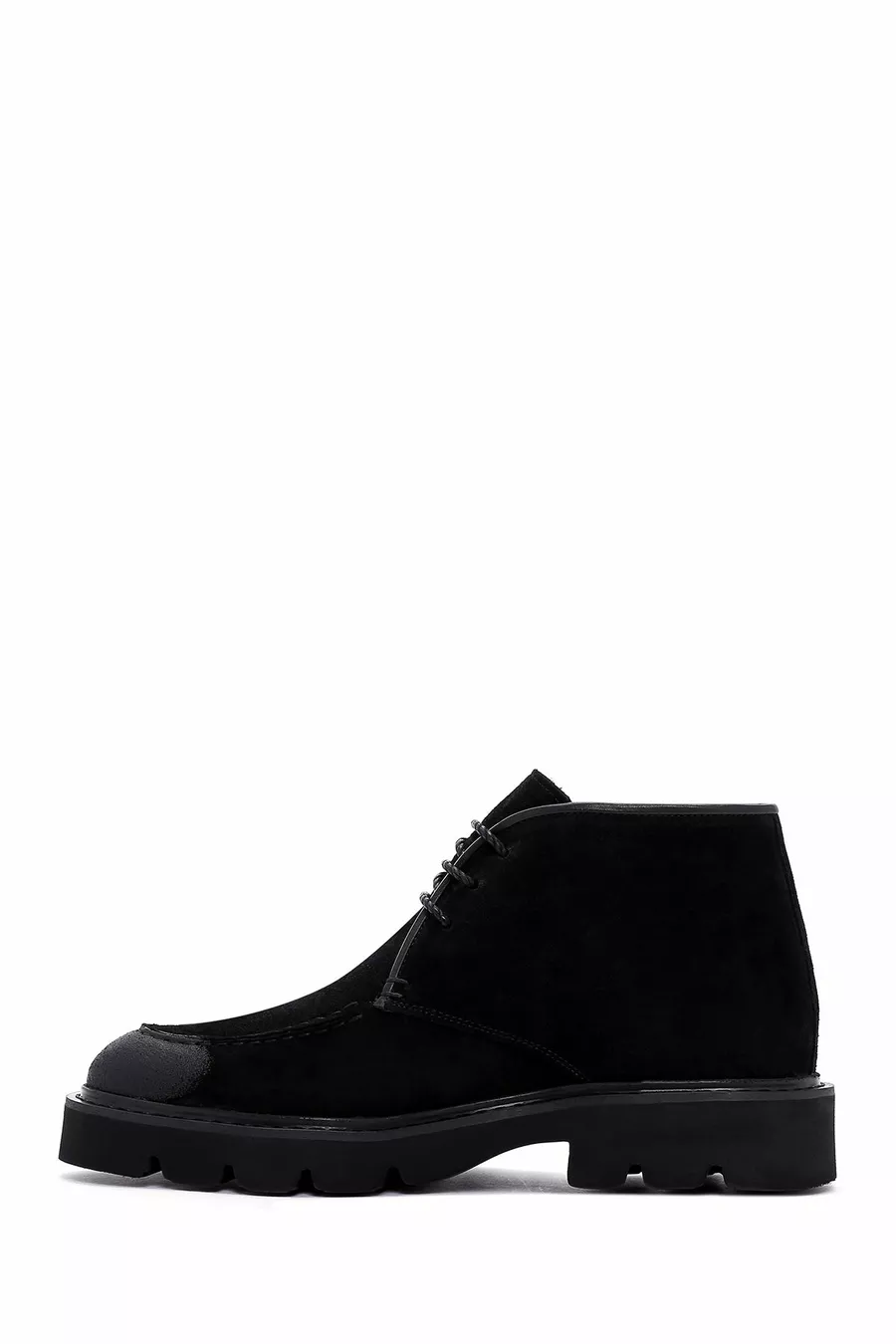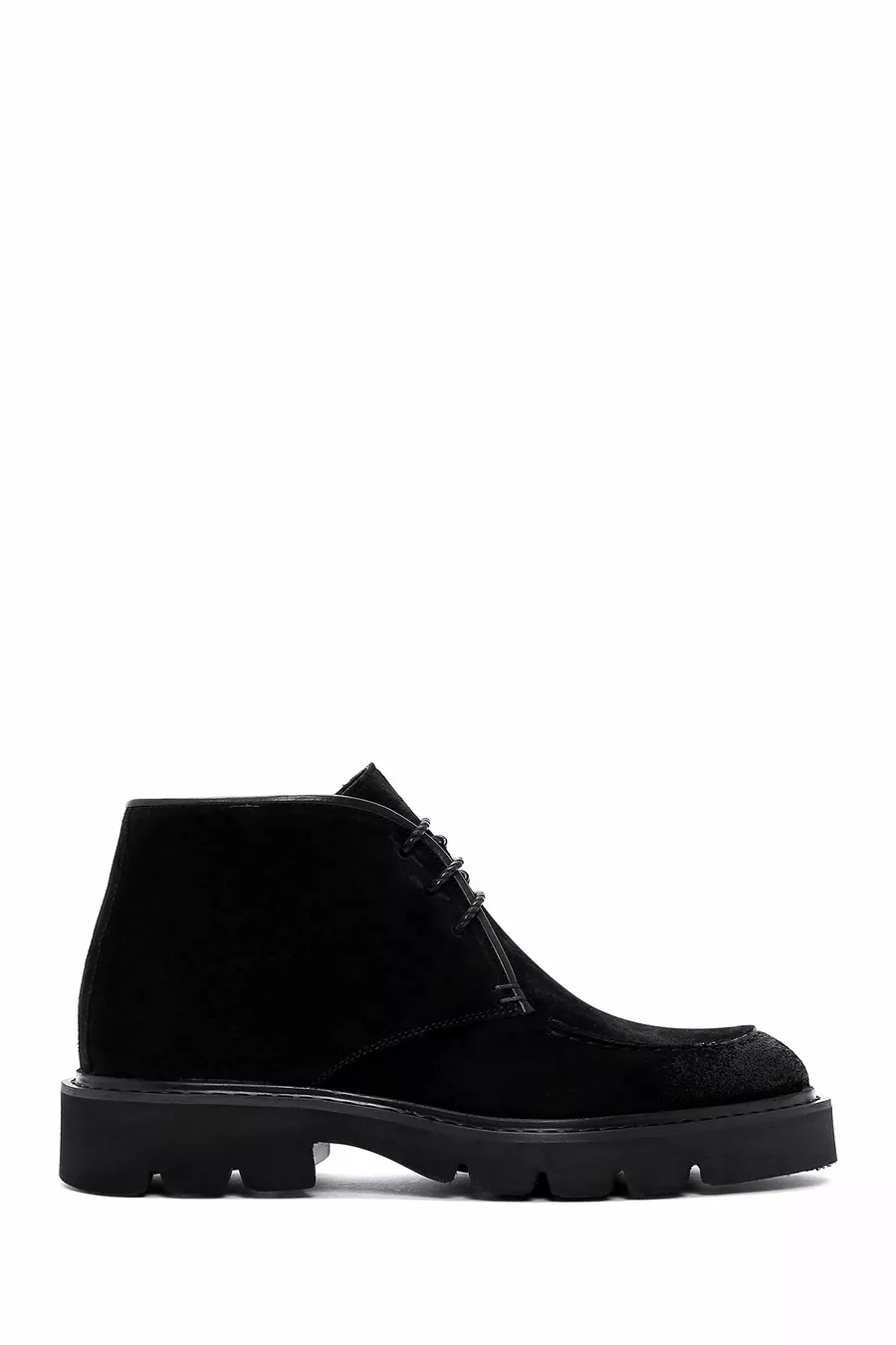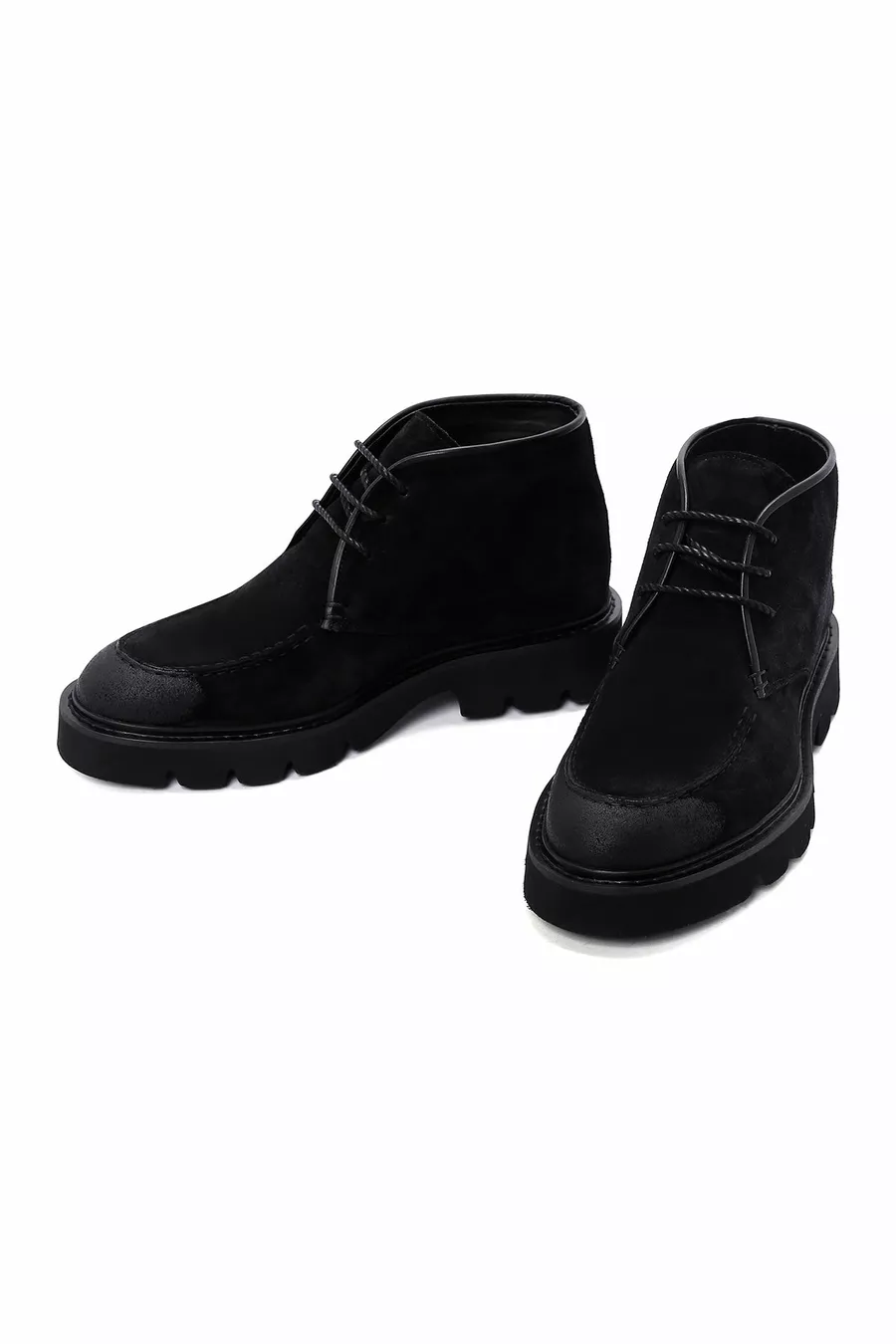 حذاء جلد جلد اسود من جلد الغزال للرجال