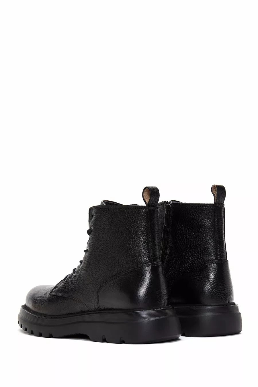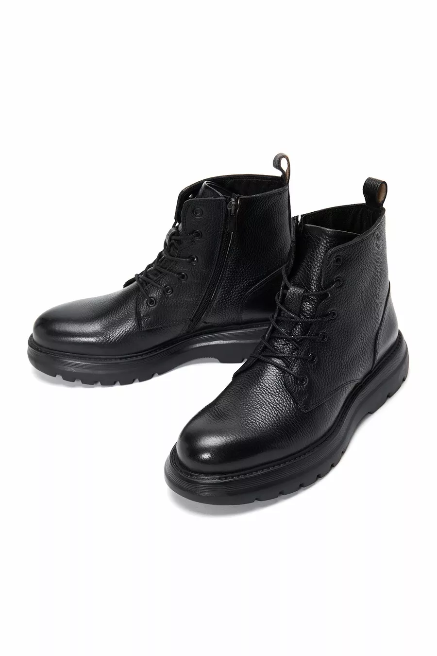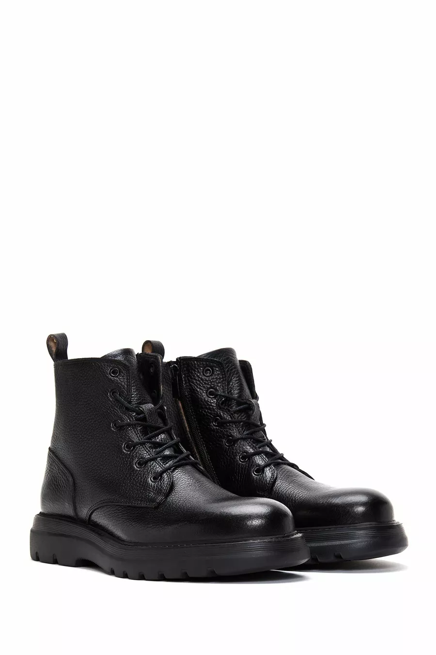 حذاء رجالي جلد أسود برباط كاجوال FT