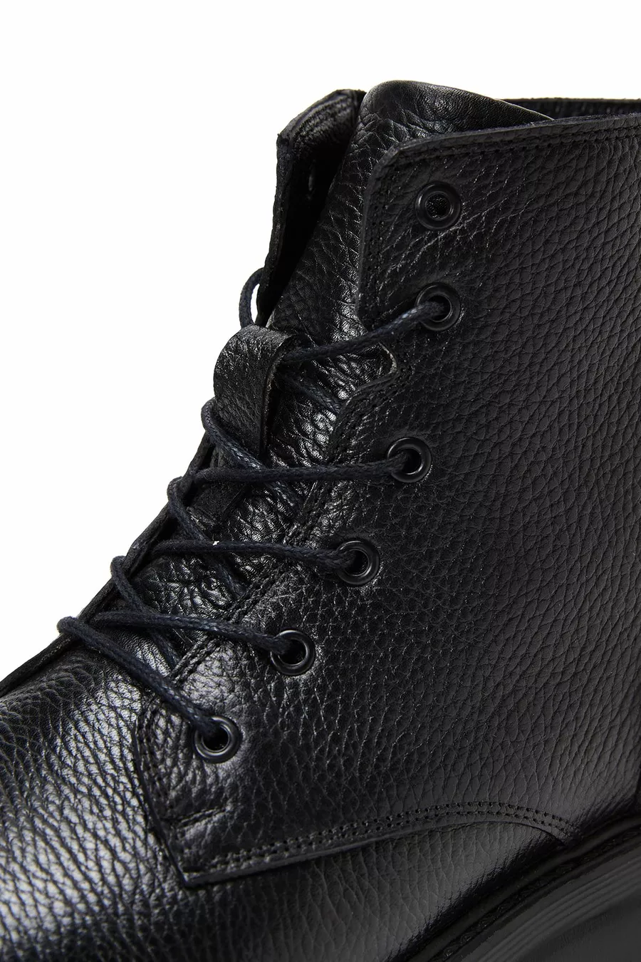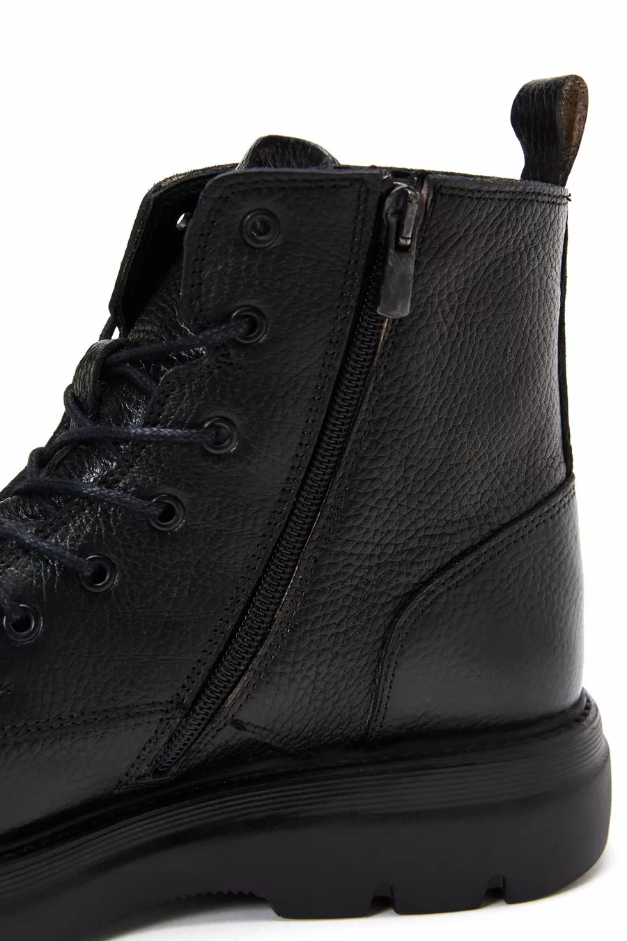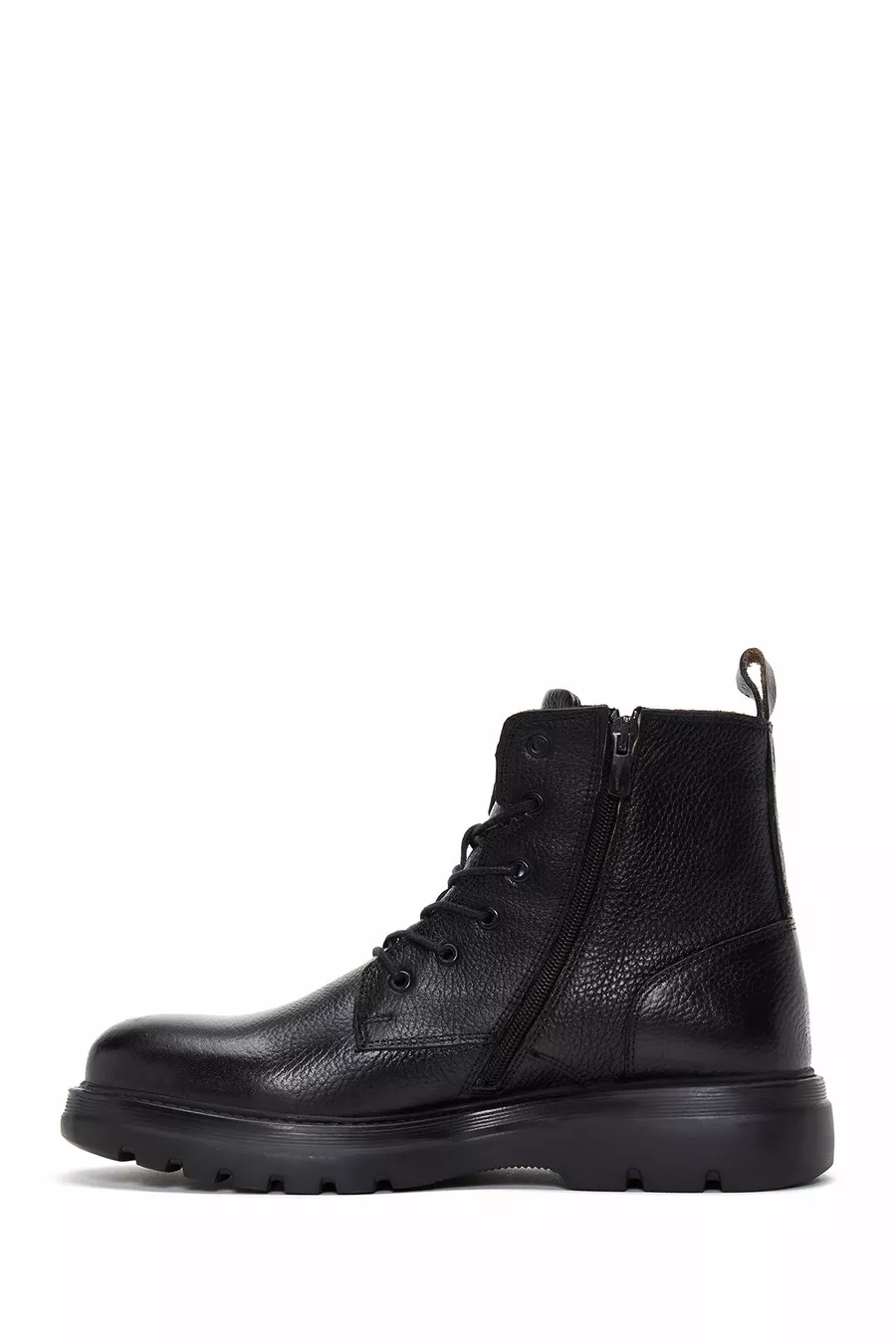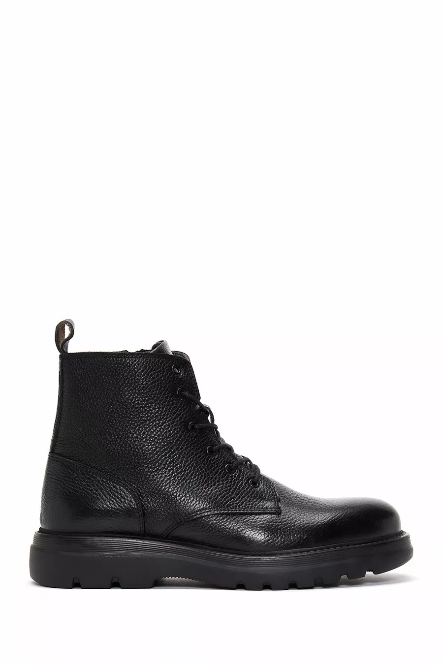 حذاء رجالي جلد أسود برباط كاجوال FT
