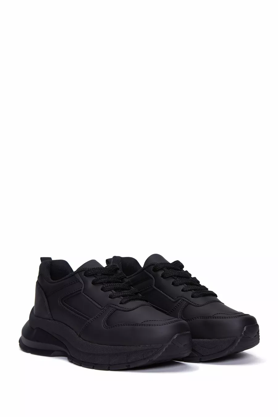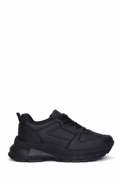 حذاء رياضي أسود سميك للسيدات برباط MT