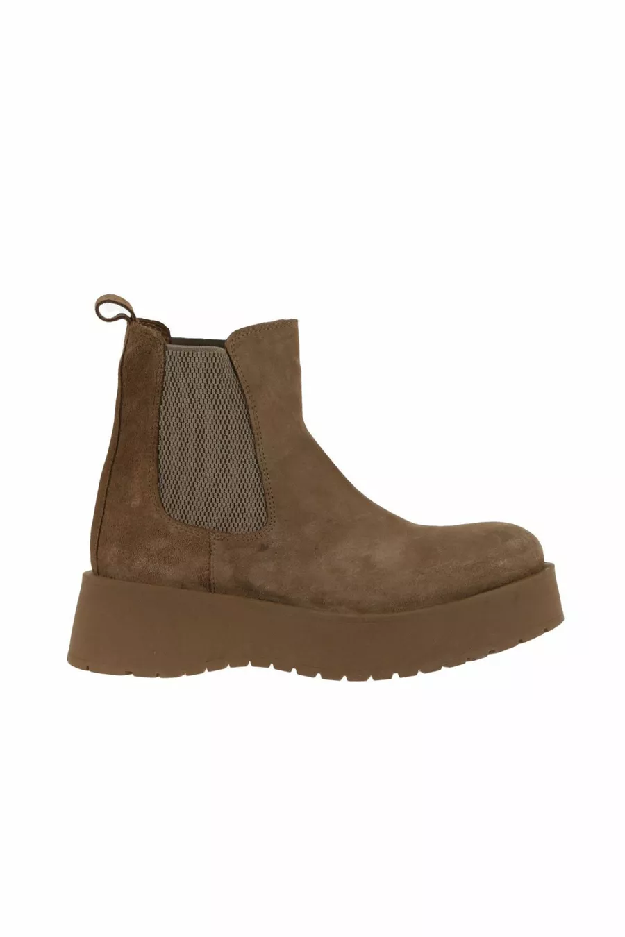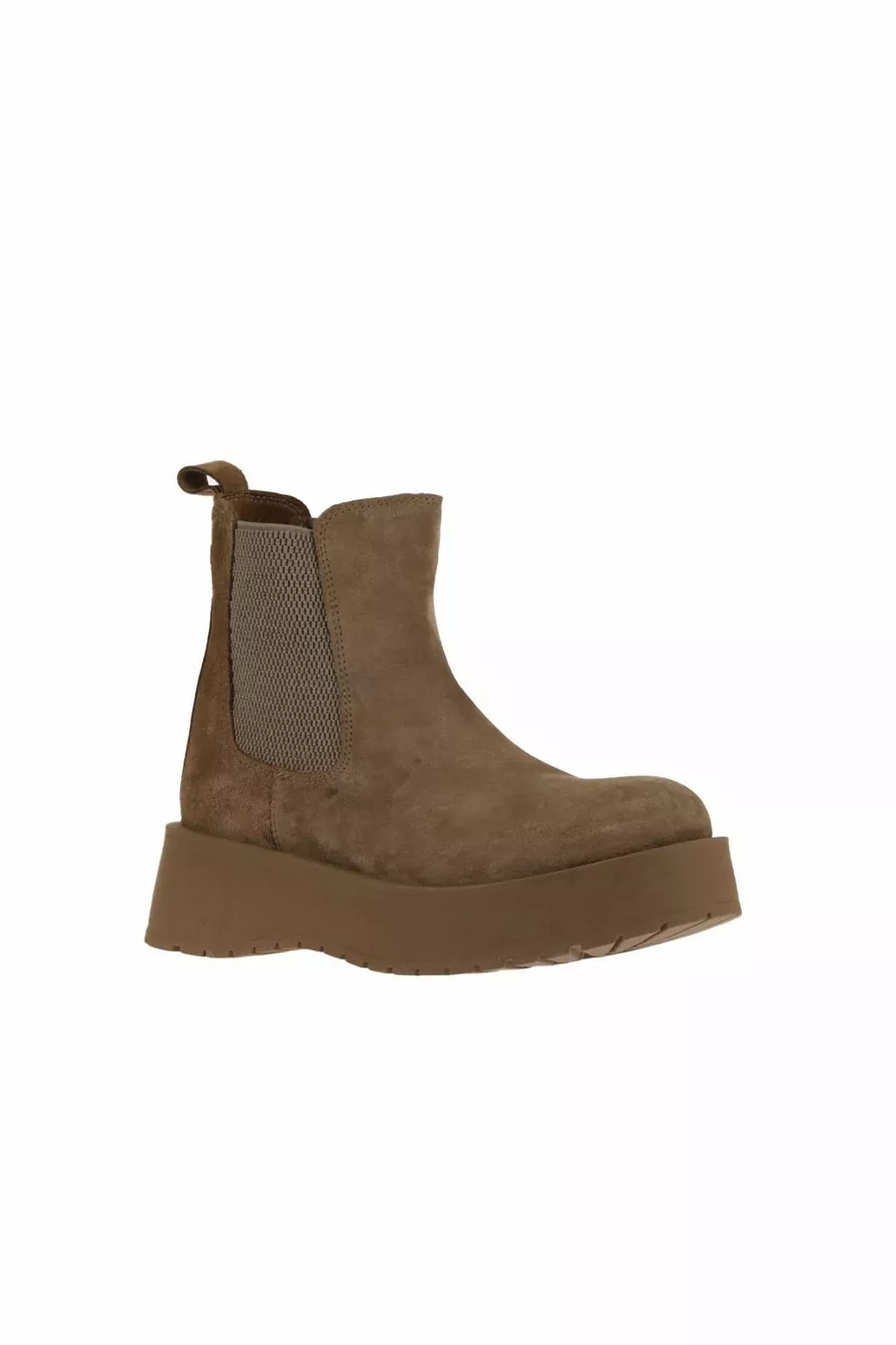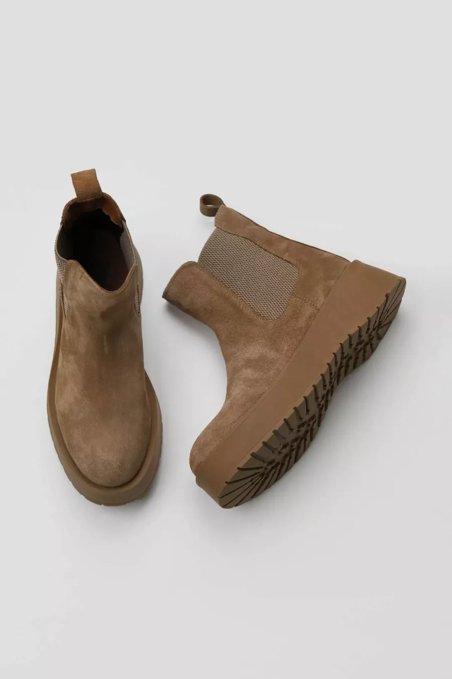 حذاء نسائي بكعب مبطن من جلد الغزال تان