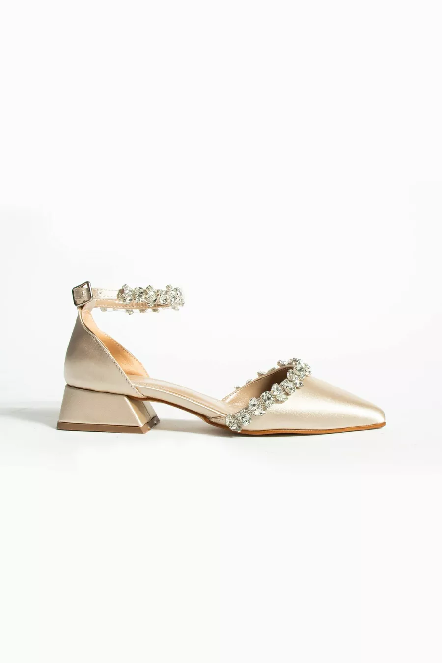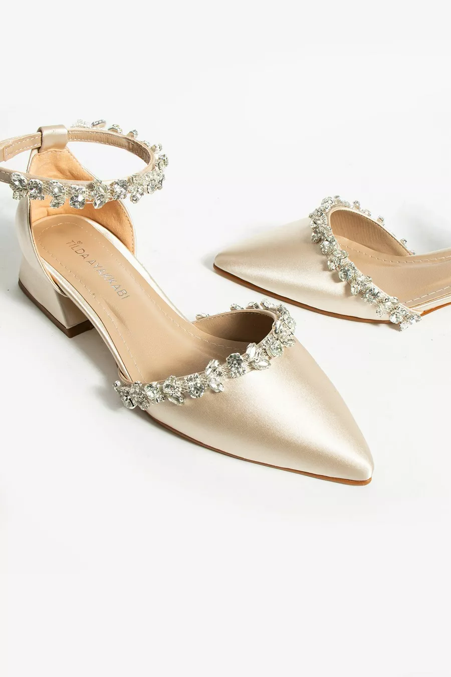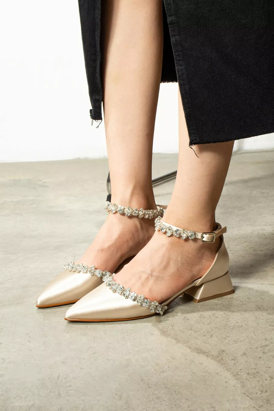 حذاء نيرفيا كلاسيك باليه مسطح نسائي بكعب 3 سم مع وشاح بحجر عند الكاحل