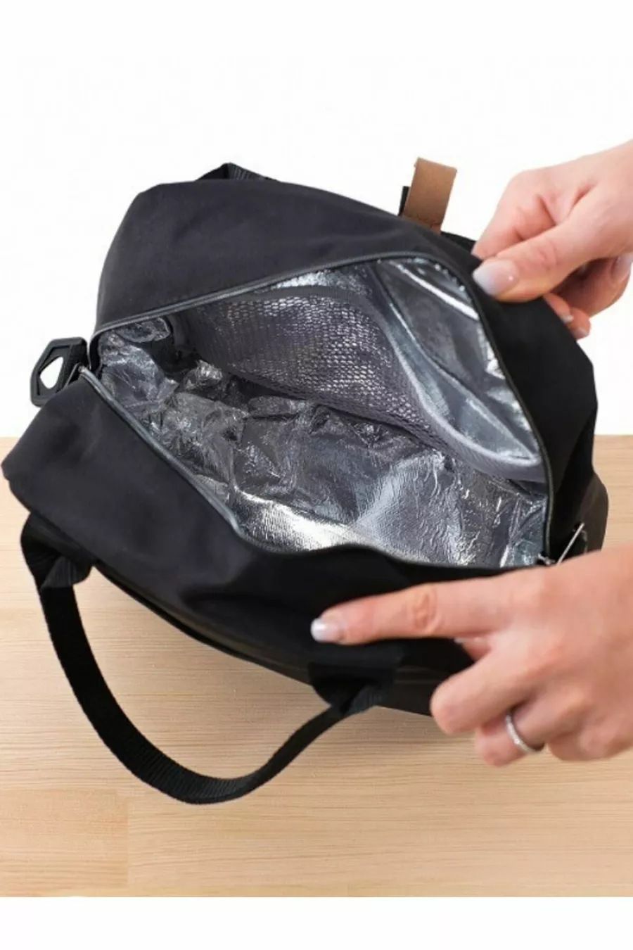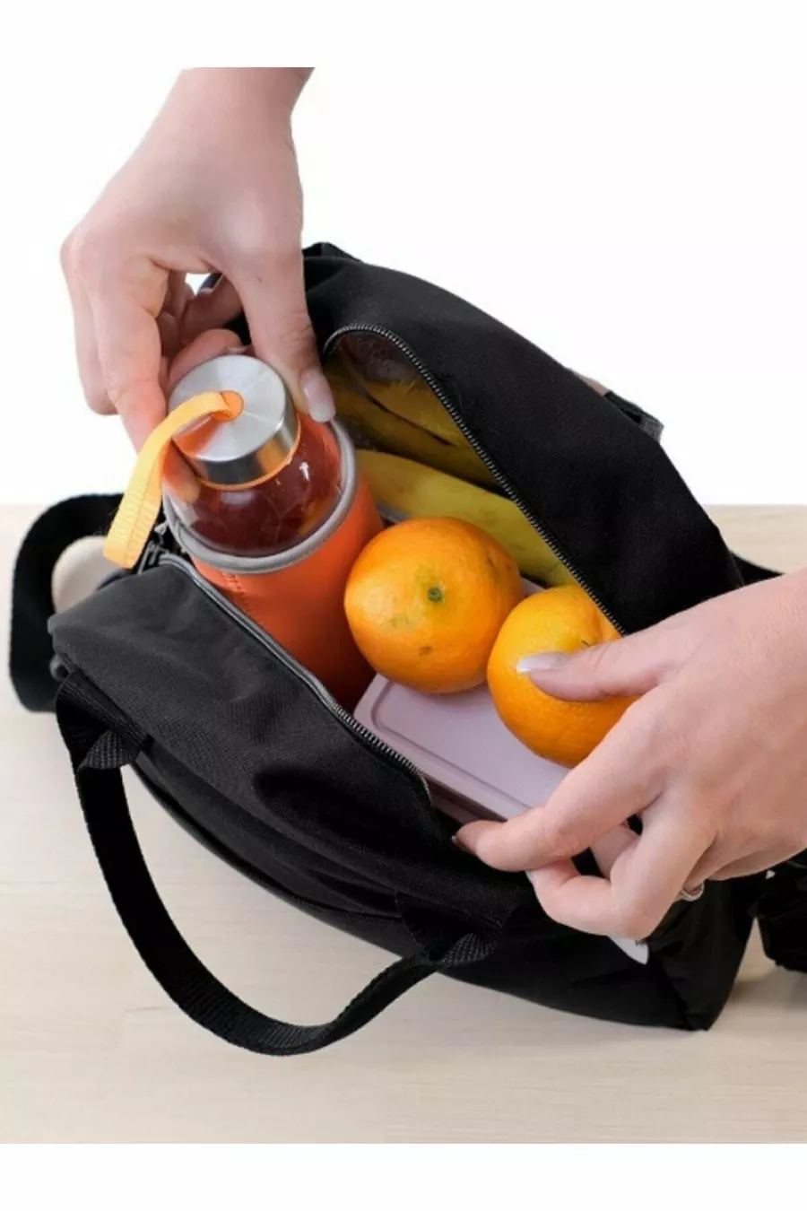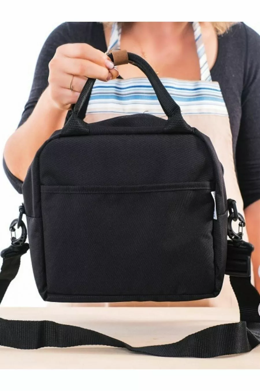 حقيبة حرارية عازلة للماء لحمل الطعام مع حمالة باللون الأسود